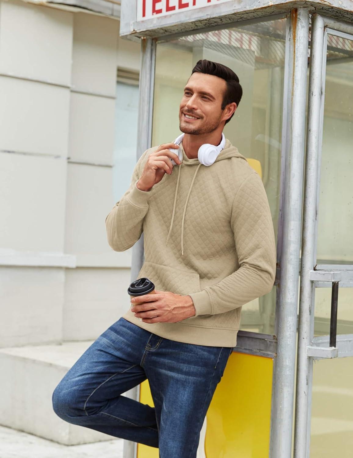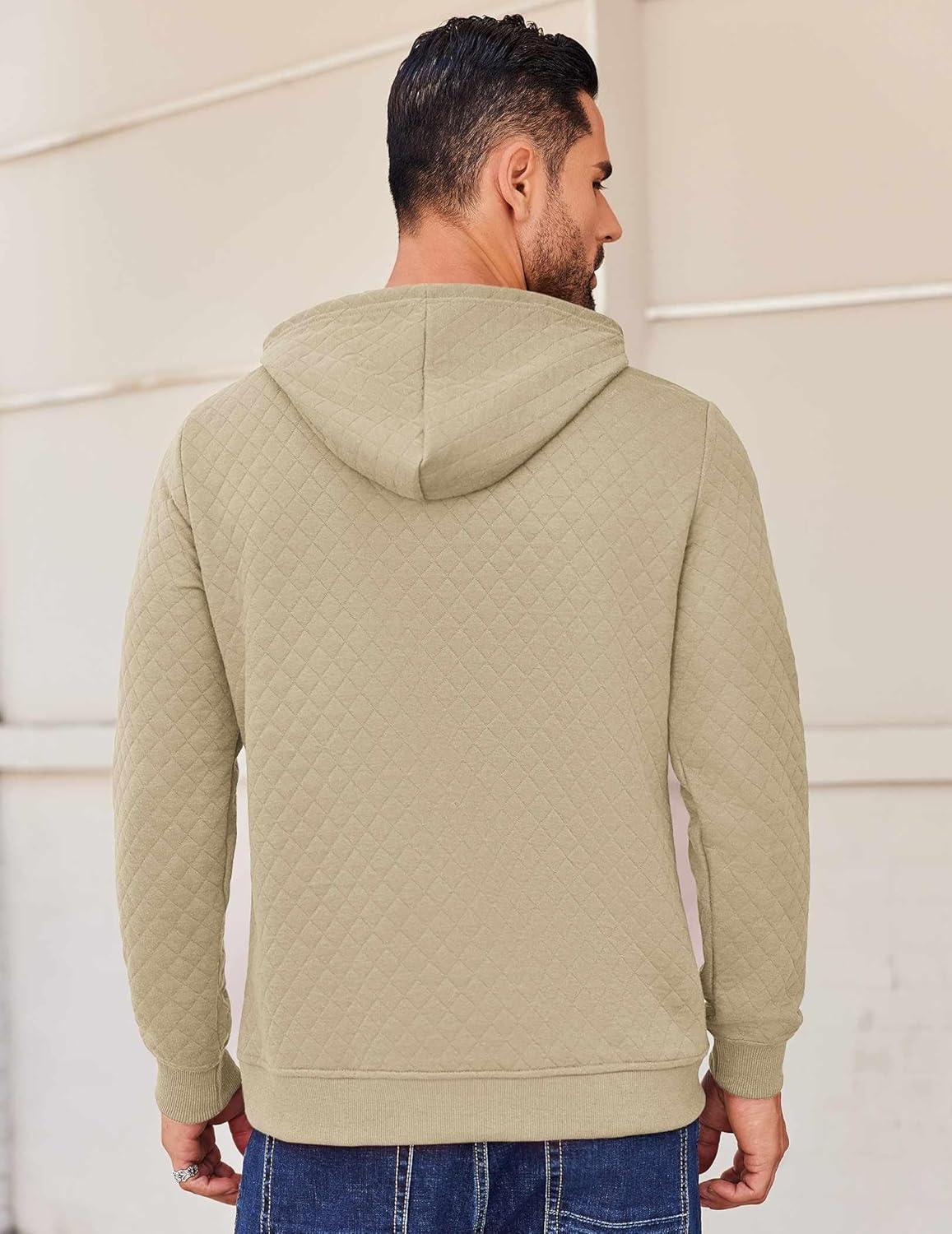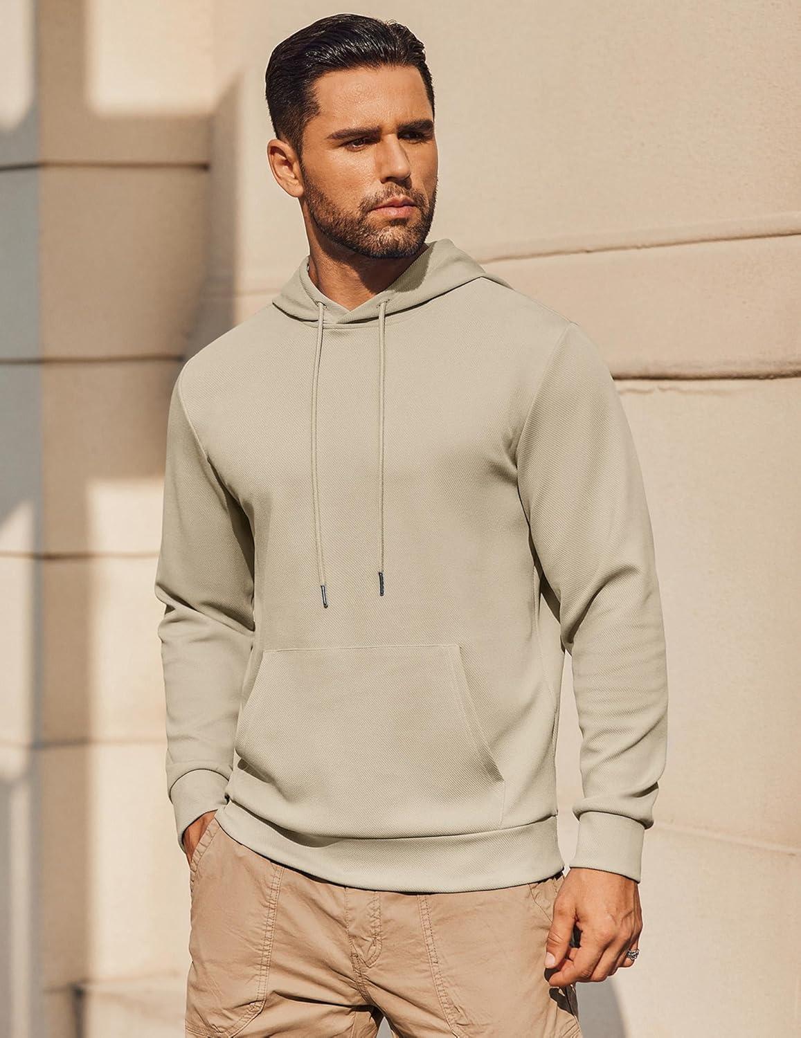 COOFANDY Mens Hoodies Sweatshirts Long Sleeve Fashion Waffle Knit Pullover Hoodie with Pocket(Khaki)