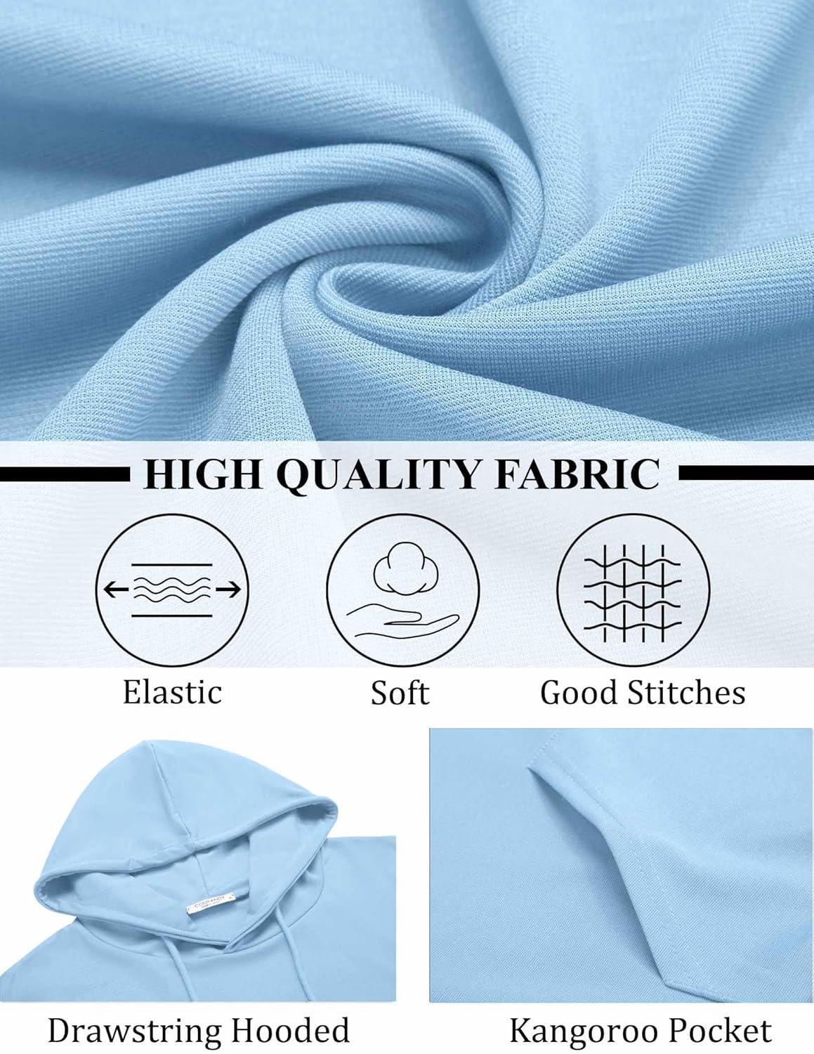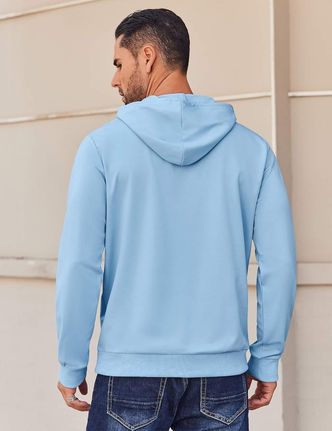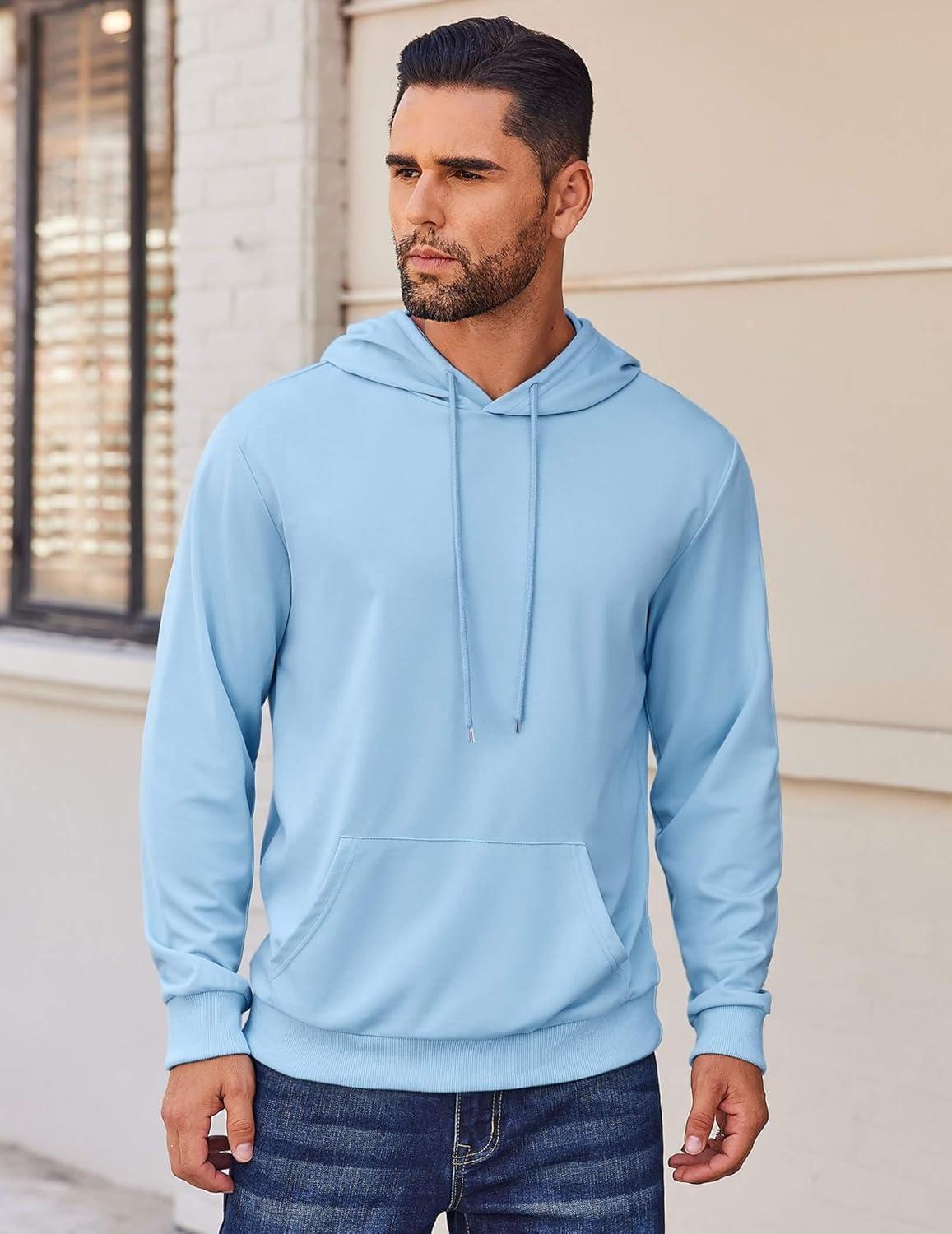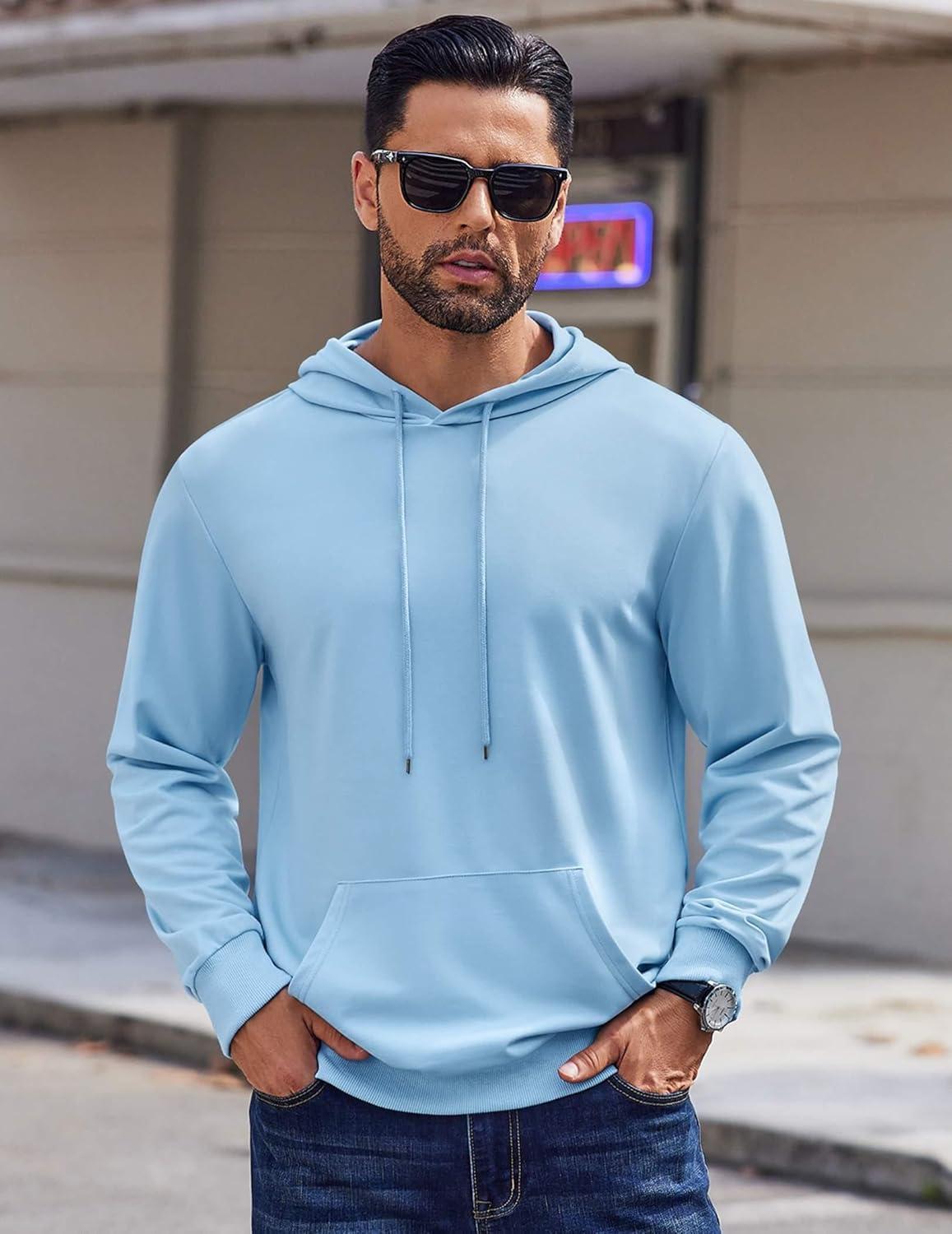 COOFANDY Mens Hoodies Pullover Long Sleeve Casual Fashion Sweatshirts Drawstring Gym Hooded Shirt with Kanga Pocket(Light Blue)