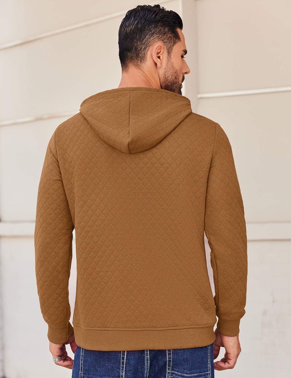 COOFANDY Mens Hoodies Sweatshirts Long Sleeve Fashion Waffle Knit Pullover Hoodie with Pocket(Light Coffee)