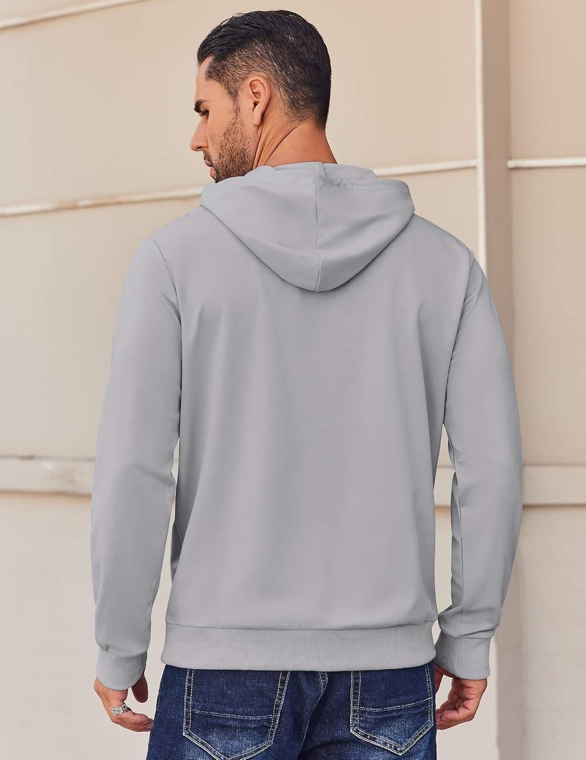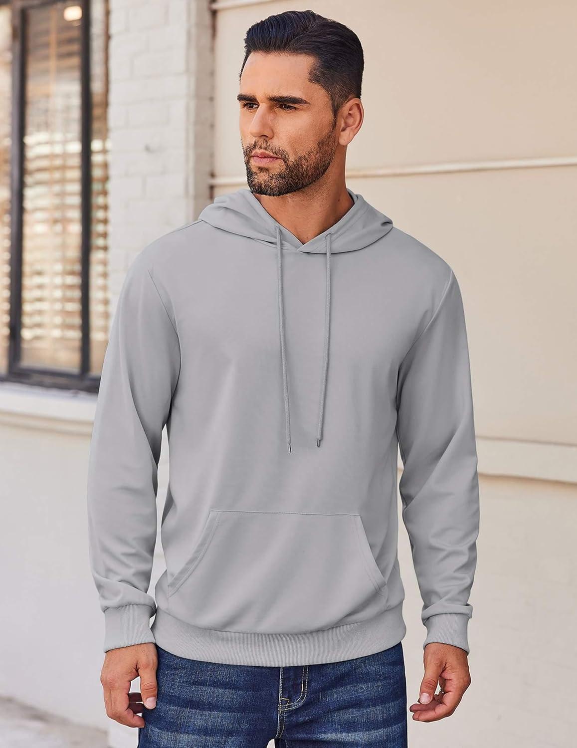 COOFANDY Mens Hoodies Pullover Long Sleeve Casual Fashion Sweatshirts Drawstring Gym Hooded Shirt with Kanga Pocket(Light Grey)