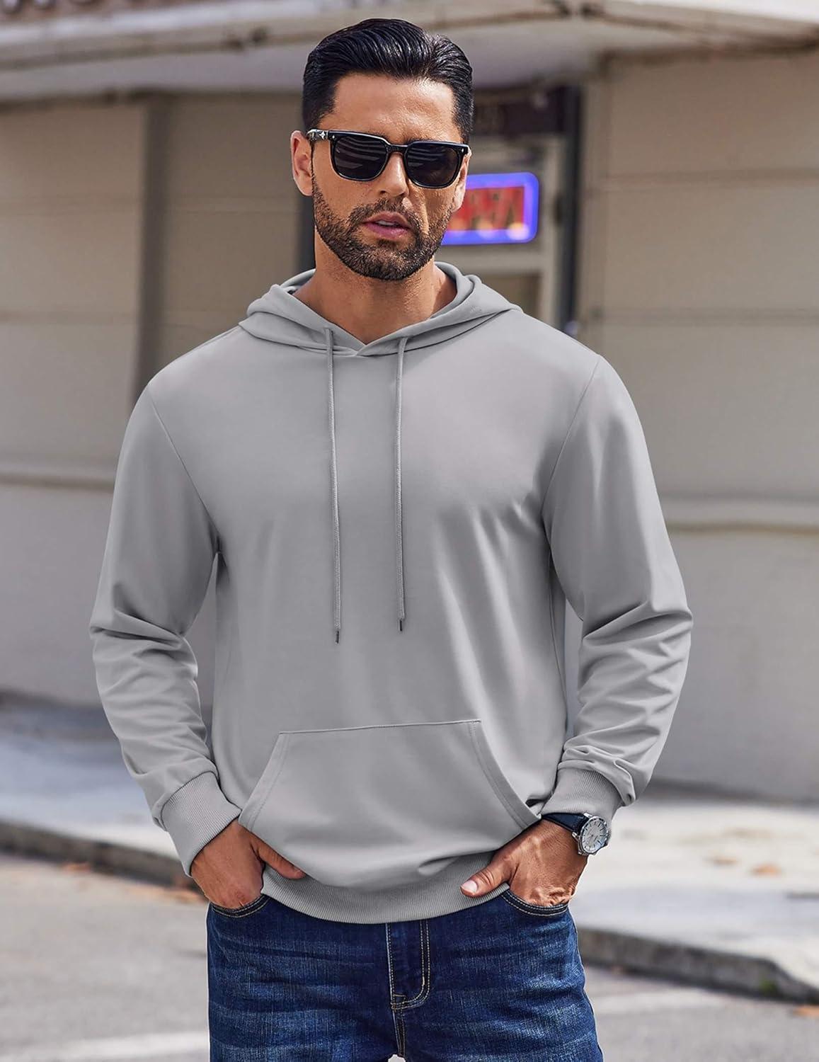 COOFANDY Mens Hoodies Pullover Long Sleeve Casual Fashion Sweatshirts Drawstring Gym Hooded Shirt with Kanga Pocket(Moon Gray)