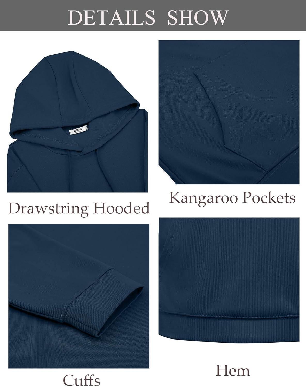 COOFANDY Mens Hoodies Pullover Long Sleeve Casual Fashion Sweatshirts Drawstring Gym Hooded Shirt with Kanga Pocket(Dark Blue)