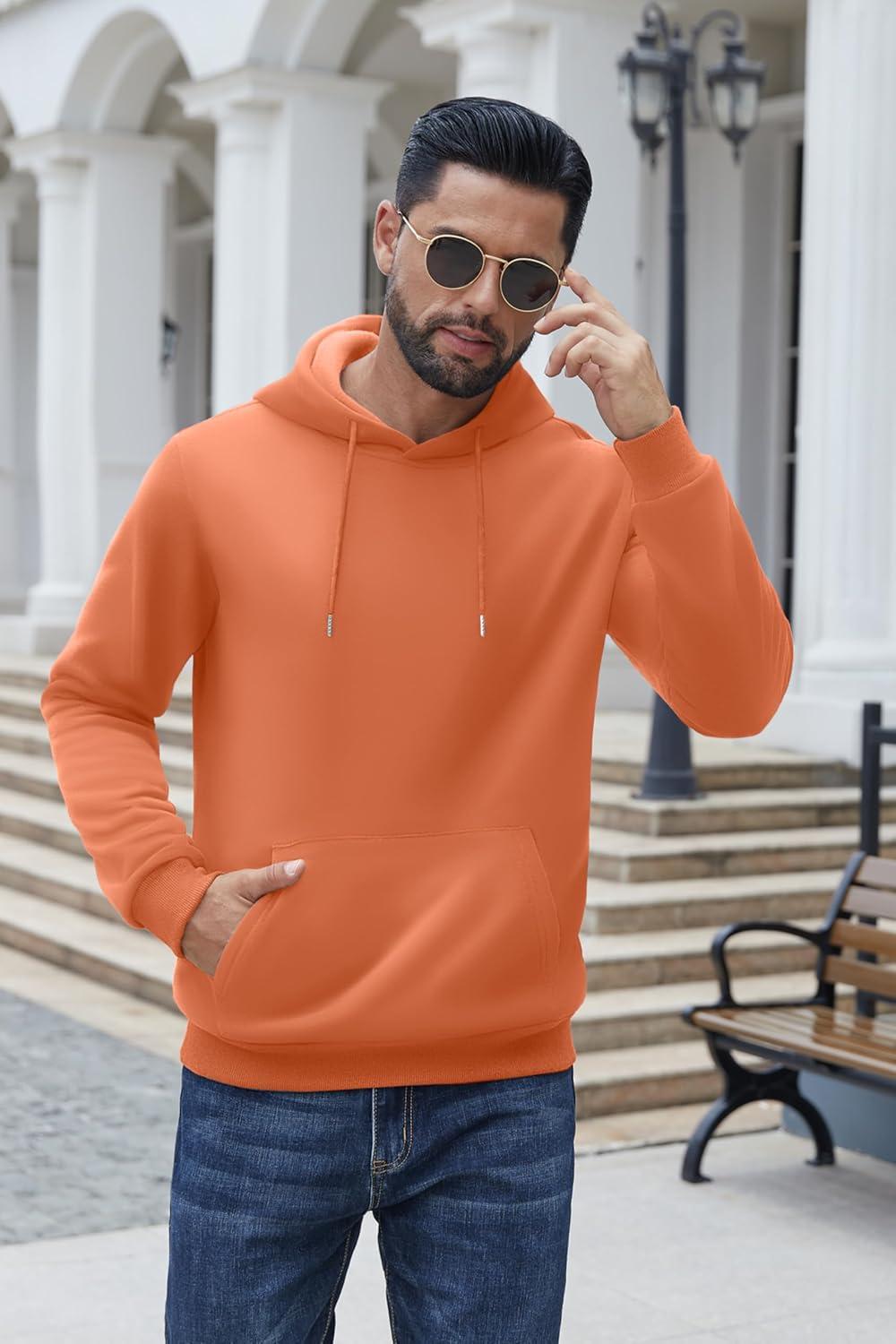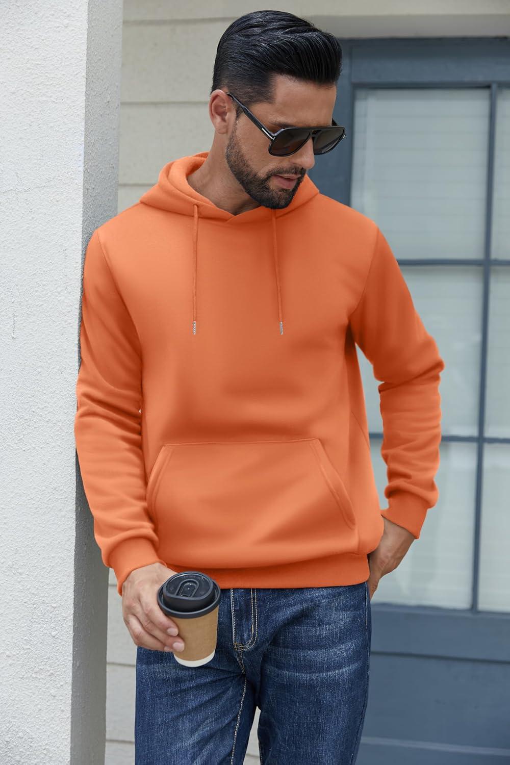 COOFANDY Mens Hoodies Pullover Long Sleeve Casual Fashion Sweatshirts Drawstring Gym Hooded Shirt with Kanga Pocket(Orange)