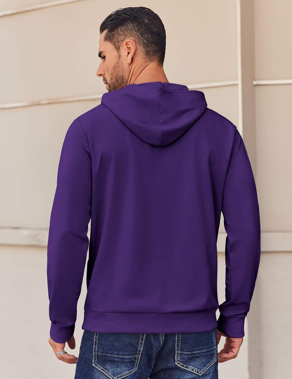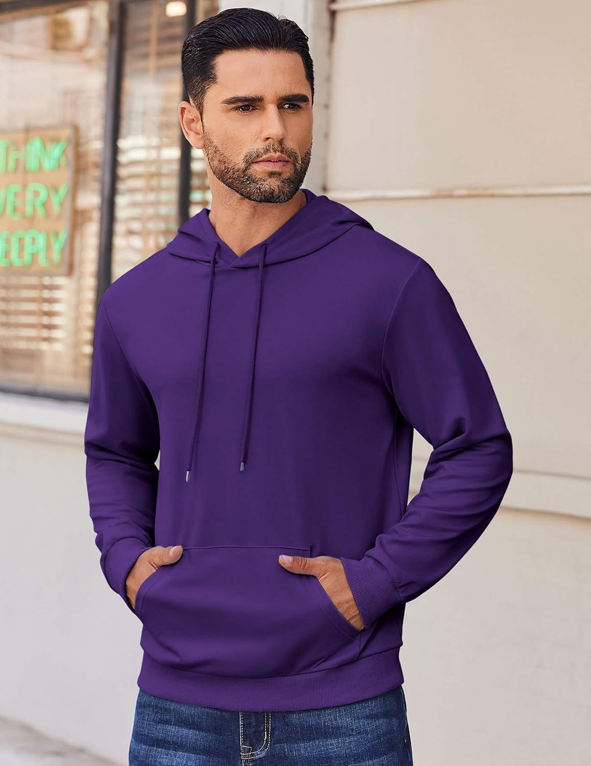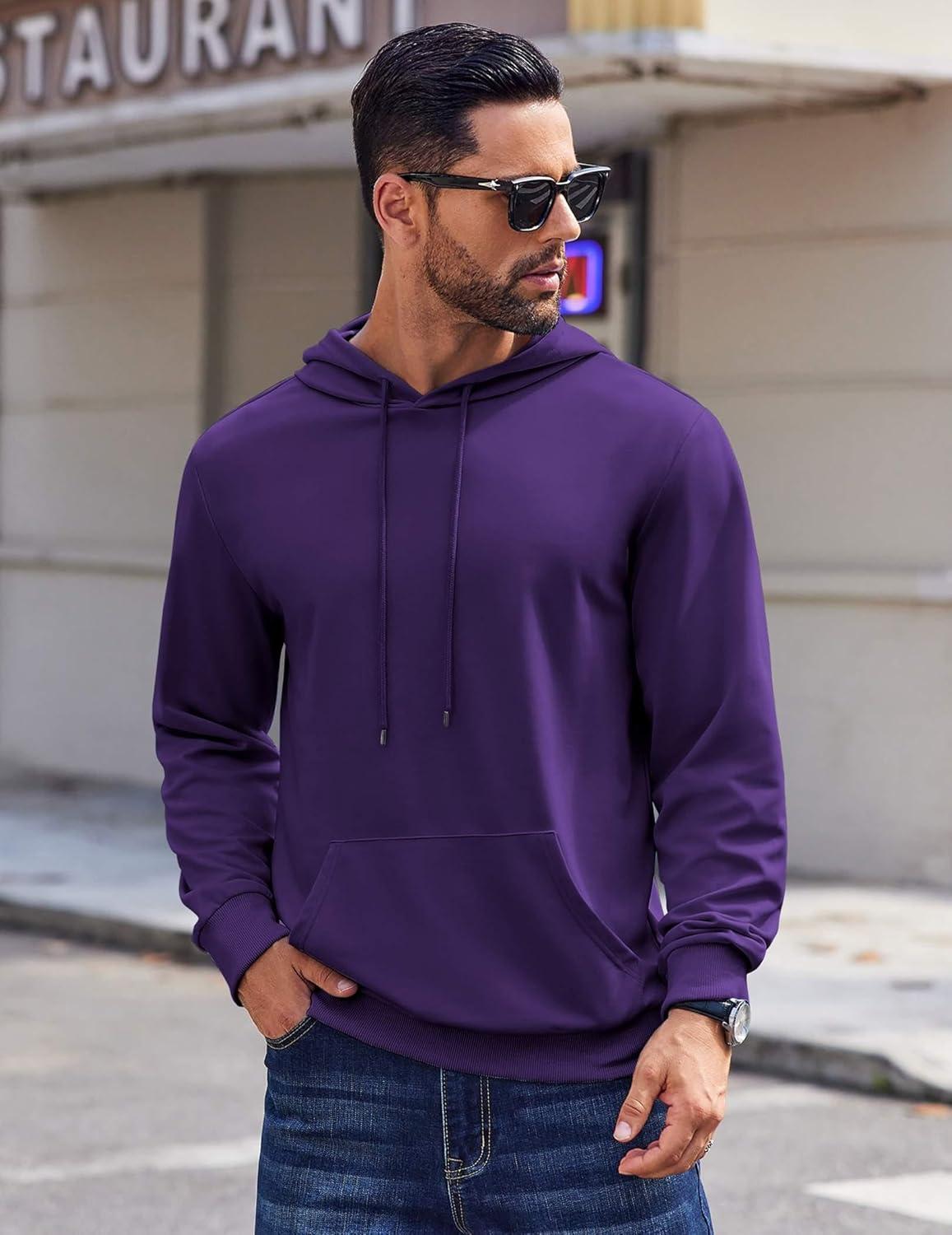 COOFANDY Mens Hoodies Pullover Long Sleeve Casual Fashion Sweatshirts Drawstring Gym Hooded Shirt with Kanga Pocket(Purple)
