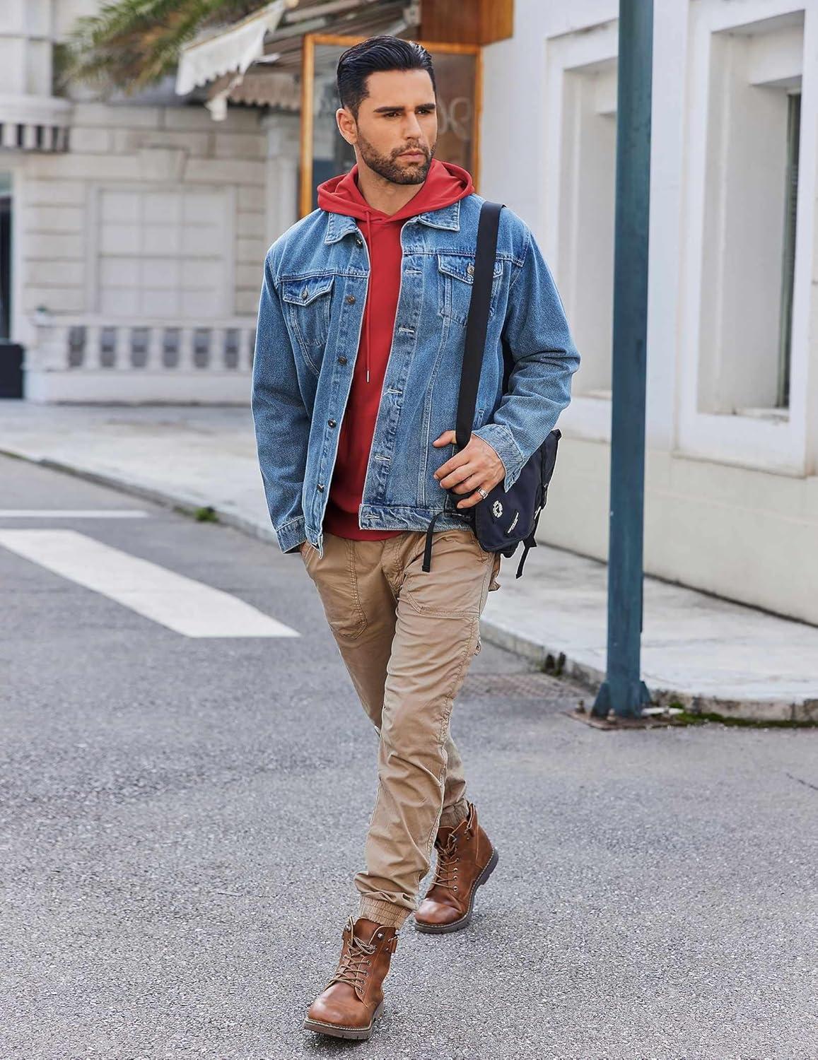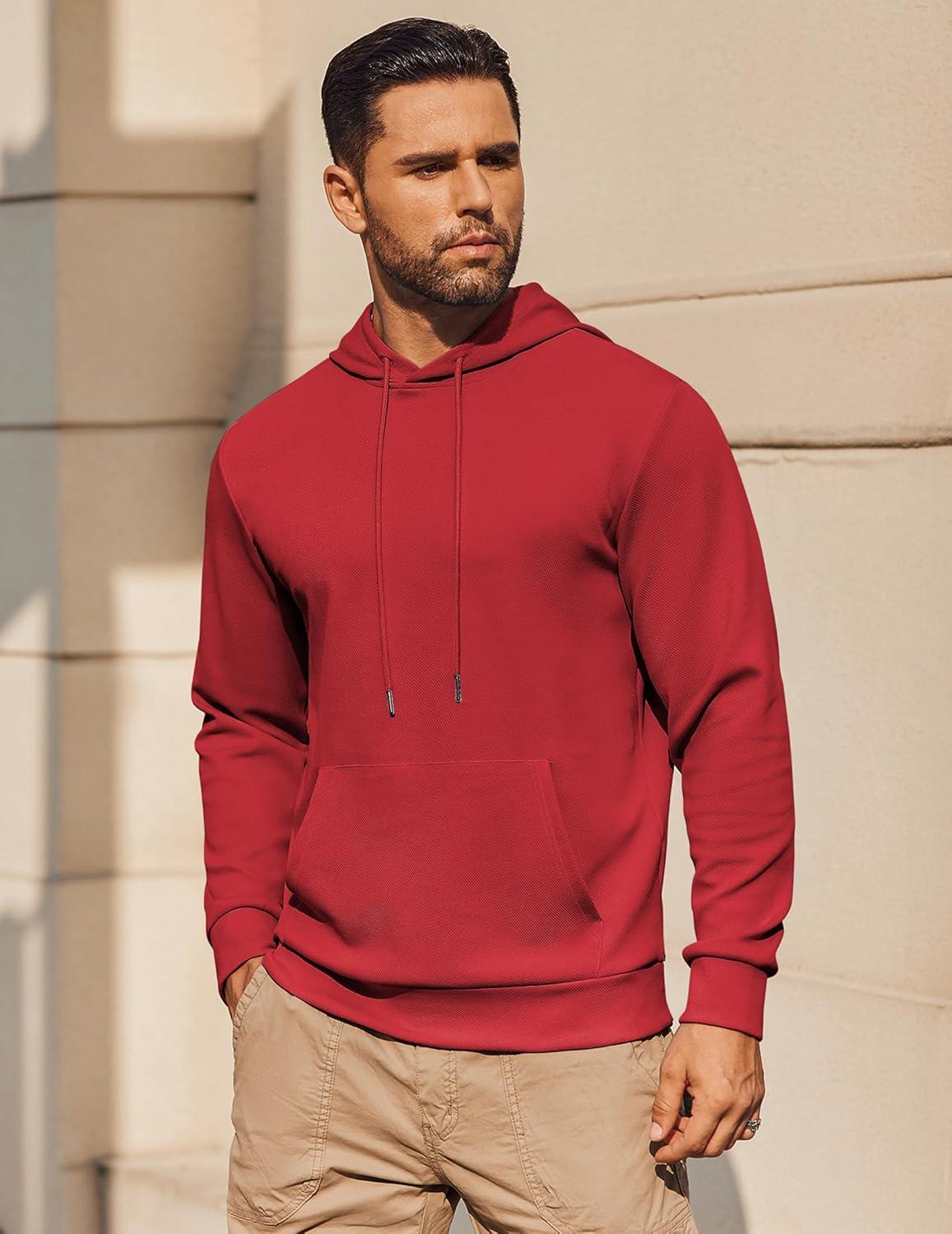 COOFANDY Mens Hoodies Pullover Long Sleeve Casual Fashion Sweatshirts Drawstring Gym Hooded Shirt with Kanga Pocket(Red)