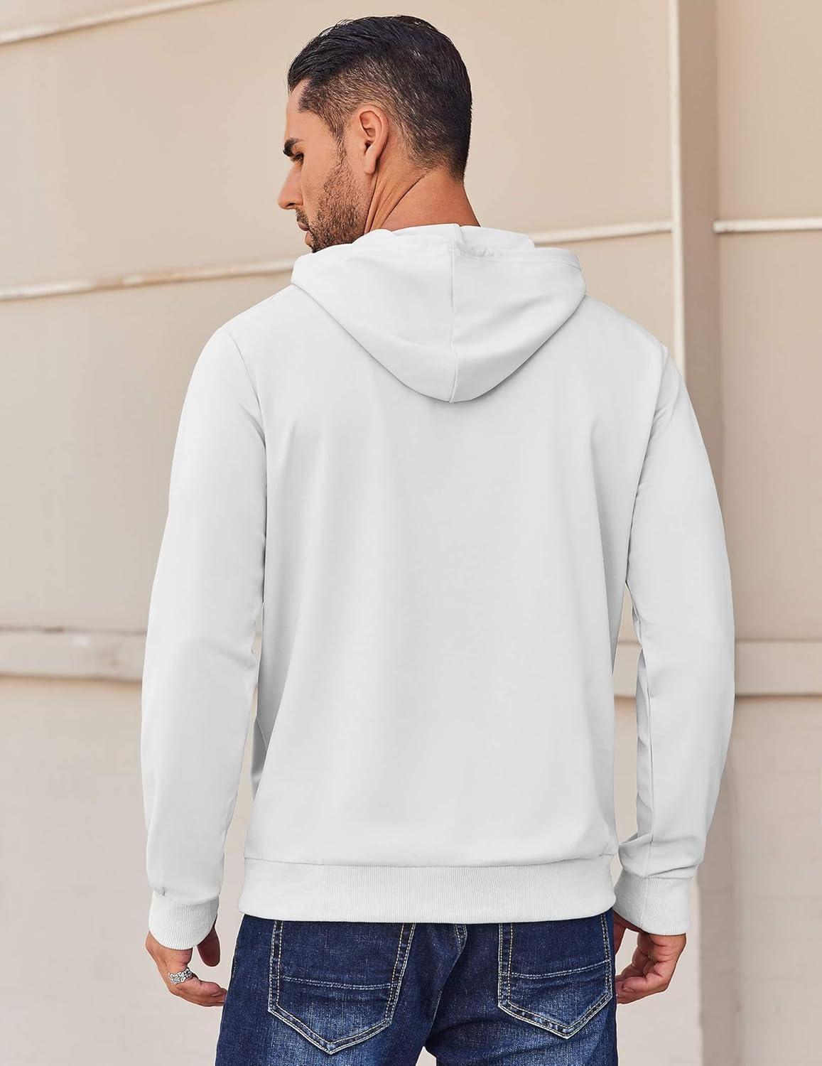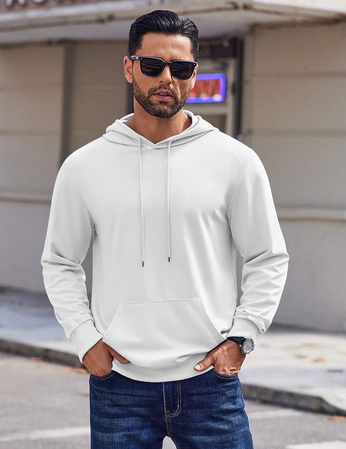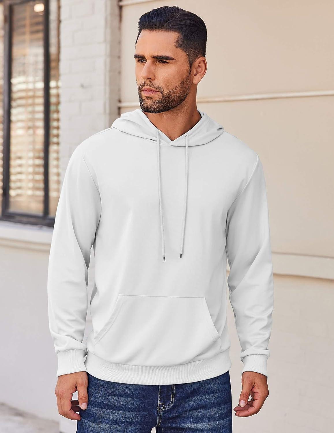 COOFANDY Mens Hoodies Pullover Long Sleeve Casual Fashion Sweatshirts Drawstring Gym Hooded Shirt with Kanga Pocket(White)