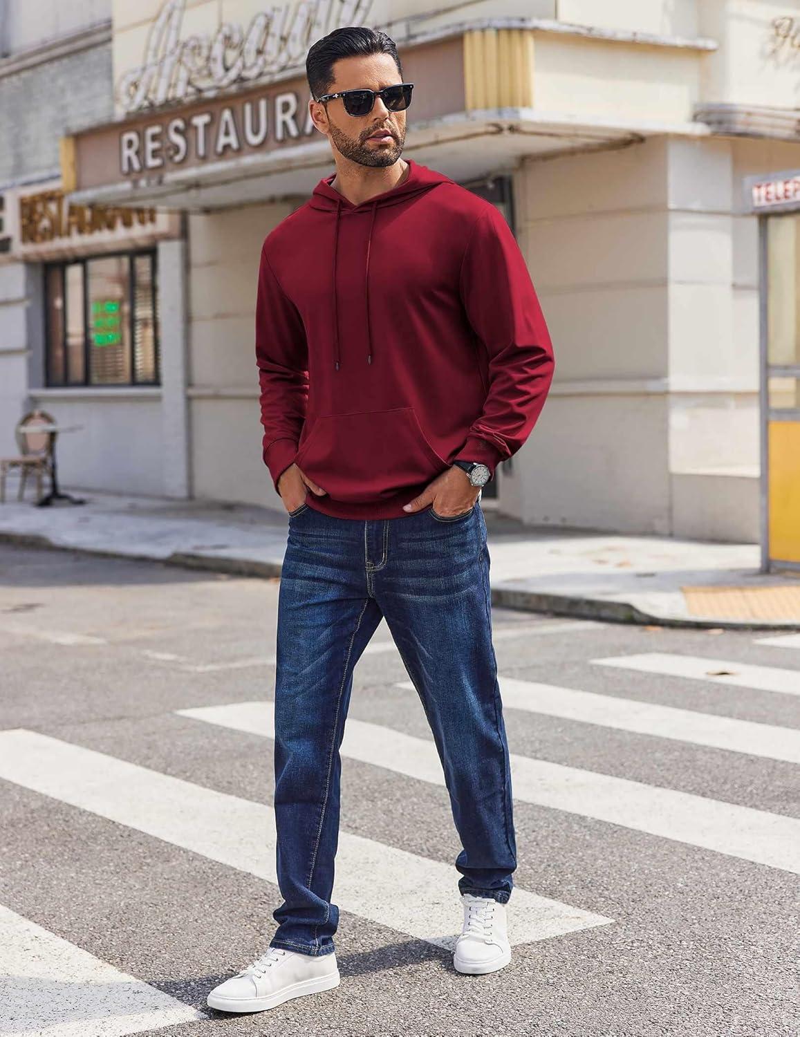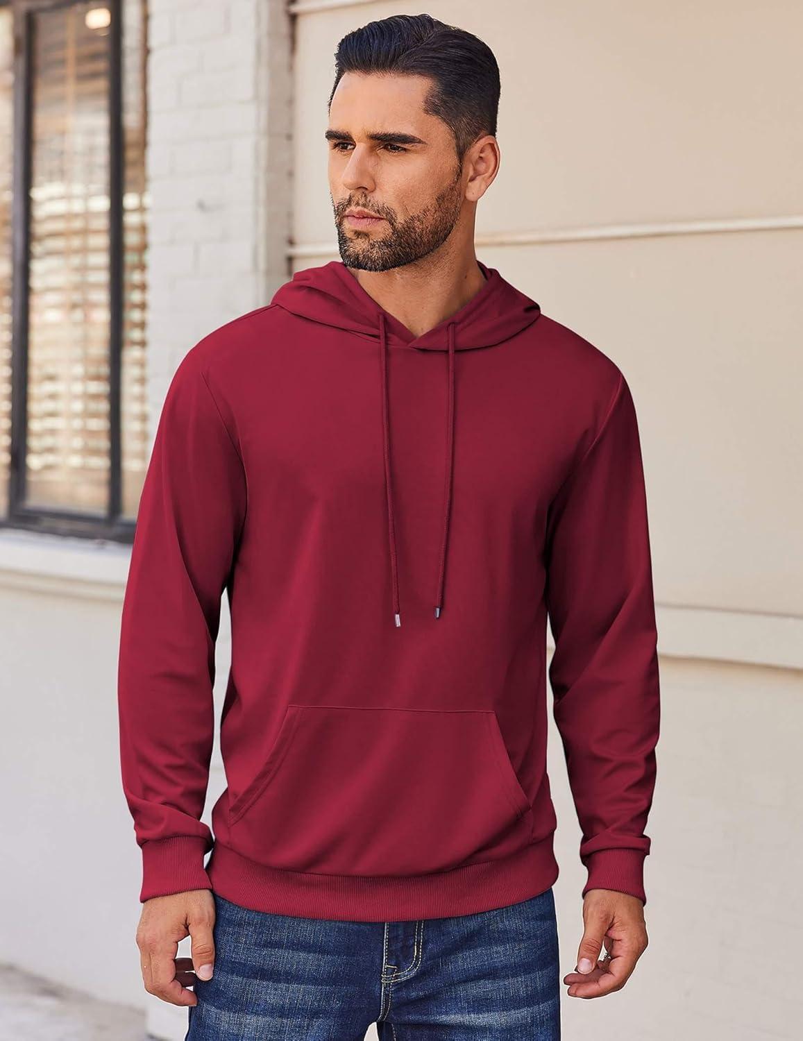 COOFANDY Mens Hoodies Pullover Long Sleeve Casual Fashion Sweatshirts Drawstring Gym Hooded Shirt with Kanga Pocket(Wine Red)
