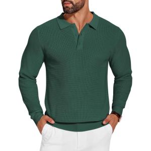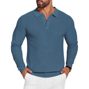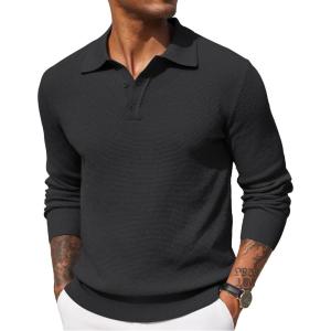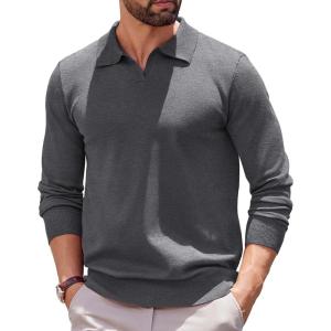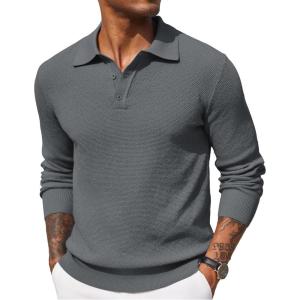 • COOFANDY Mens Knit Polo Shirts Casual Long Sleeve Classic Polo Shirts Button Down Golf Shirts(Medium Grey)