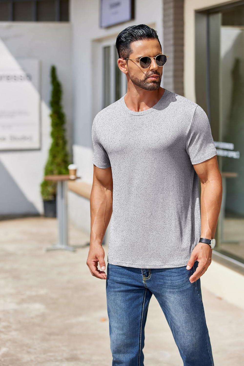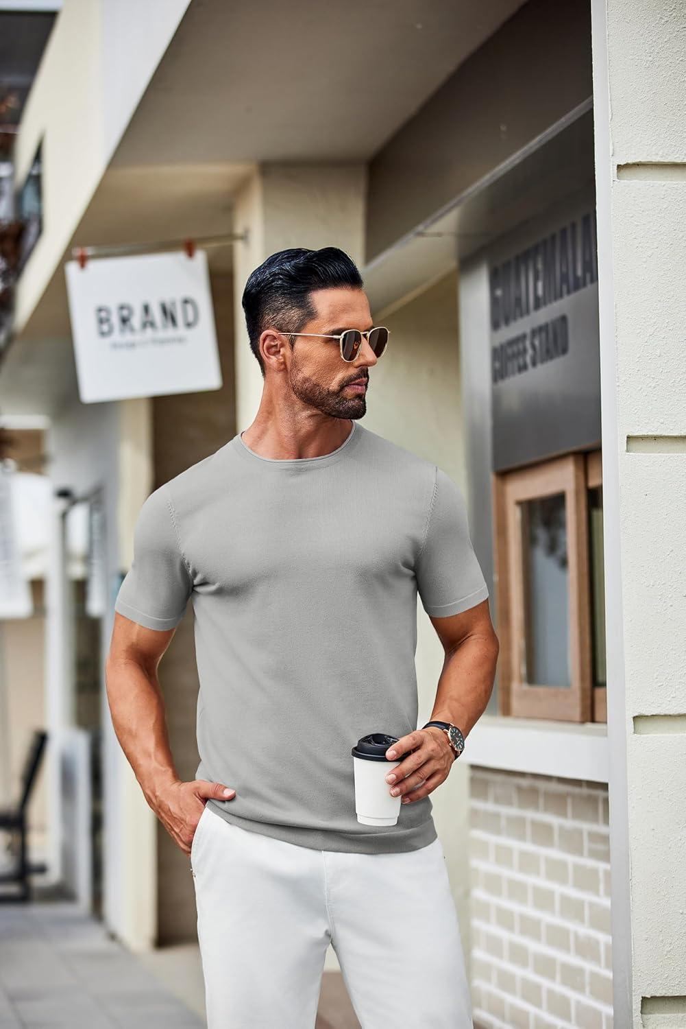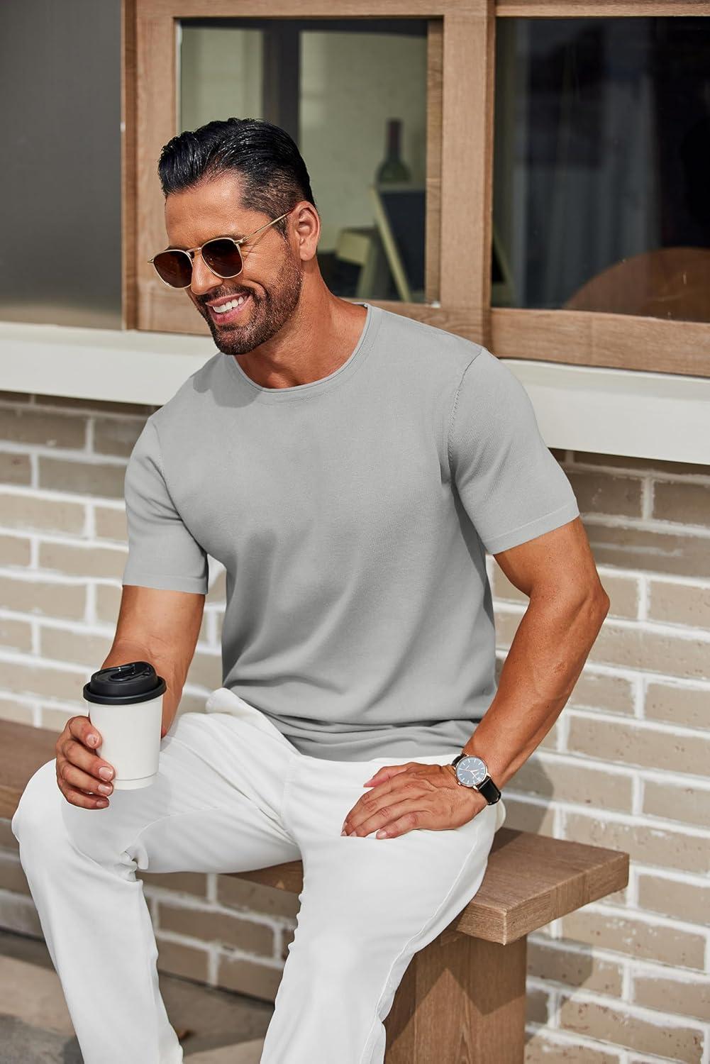 COOFANDY Mens Knit T-Shirts Casual Crewneck Short Sleeve Shirts Summer Tops Basic Pullover Tees(Grey)