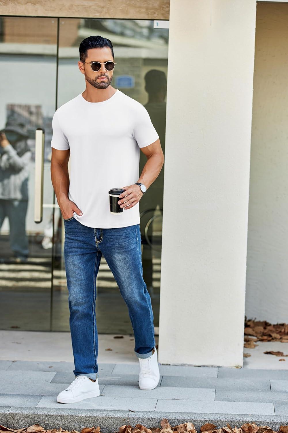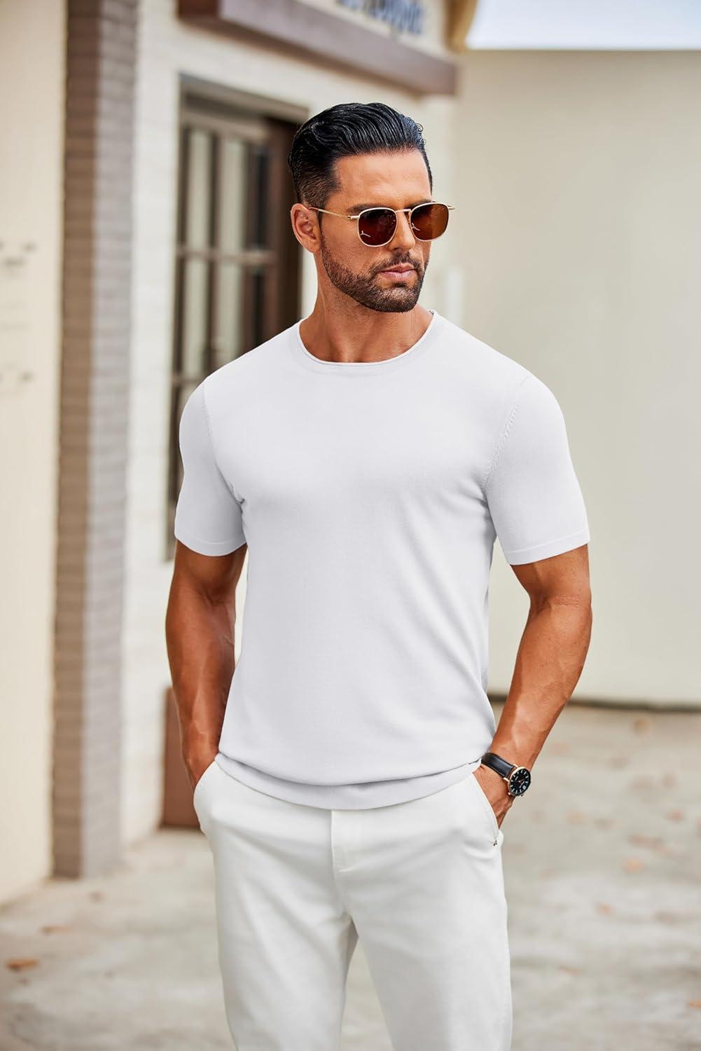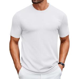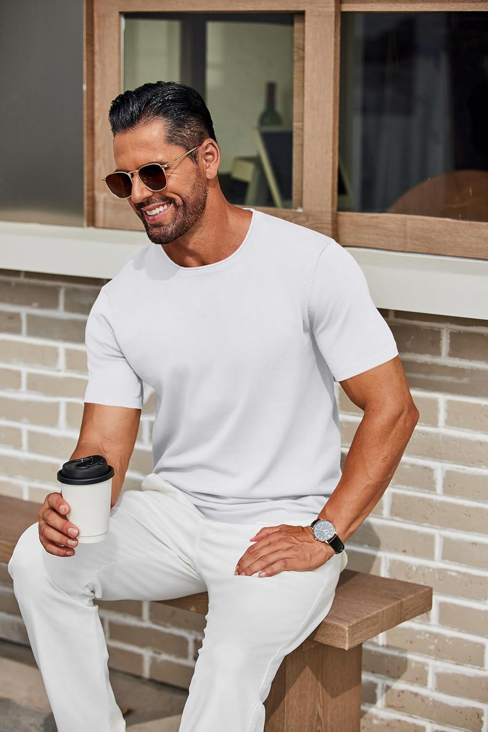 COOFANDY Mens Knit T-Shirts Casual Crewneck Short Sleeve Shirts Summer Tops Basic Pullover Tees(All White)