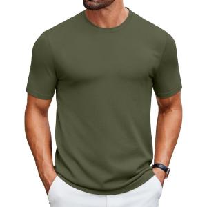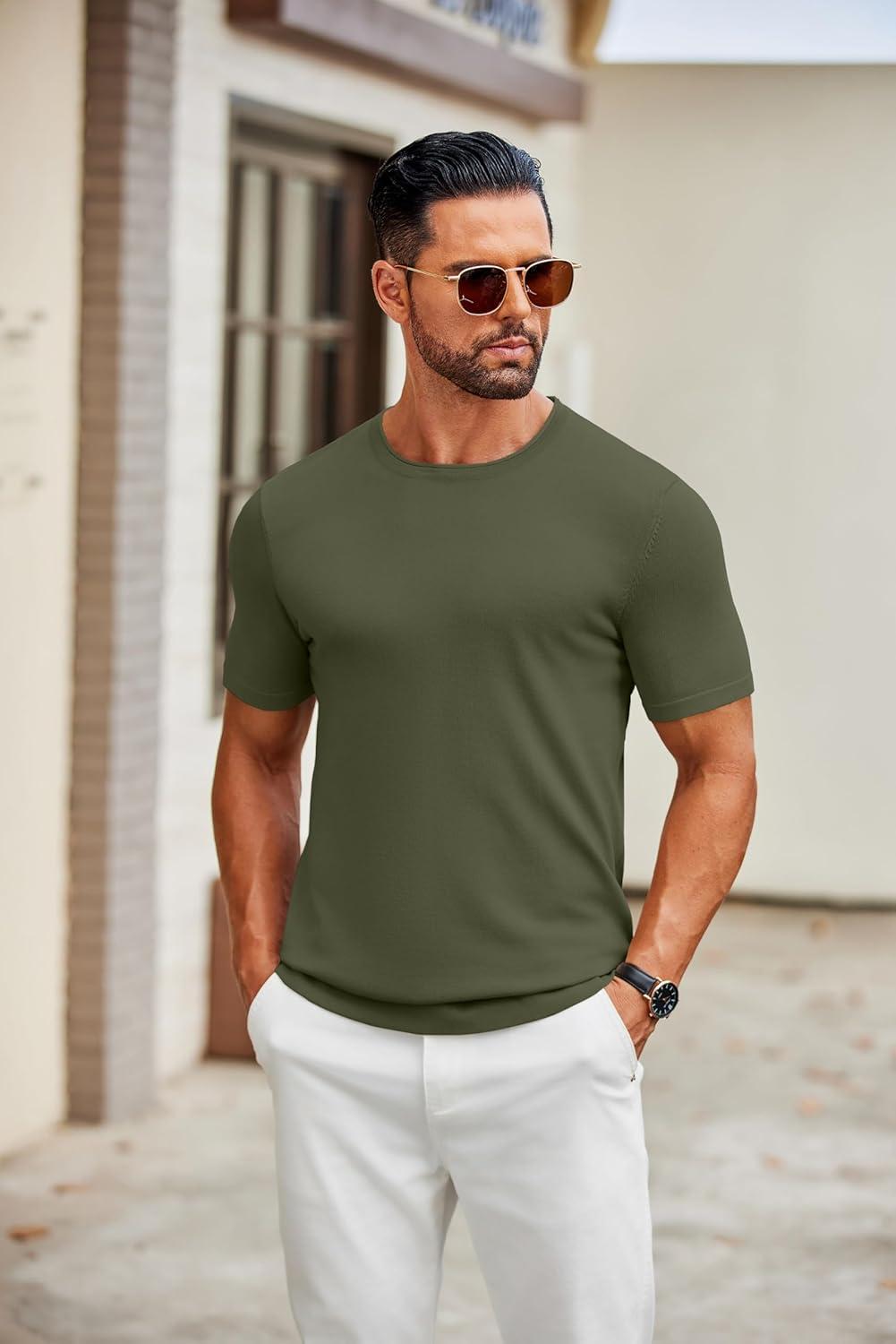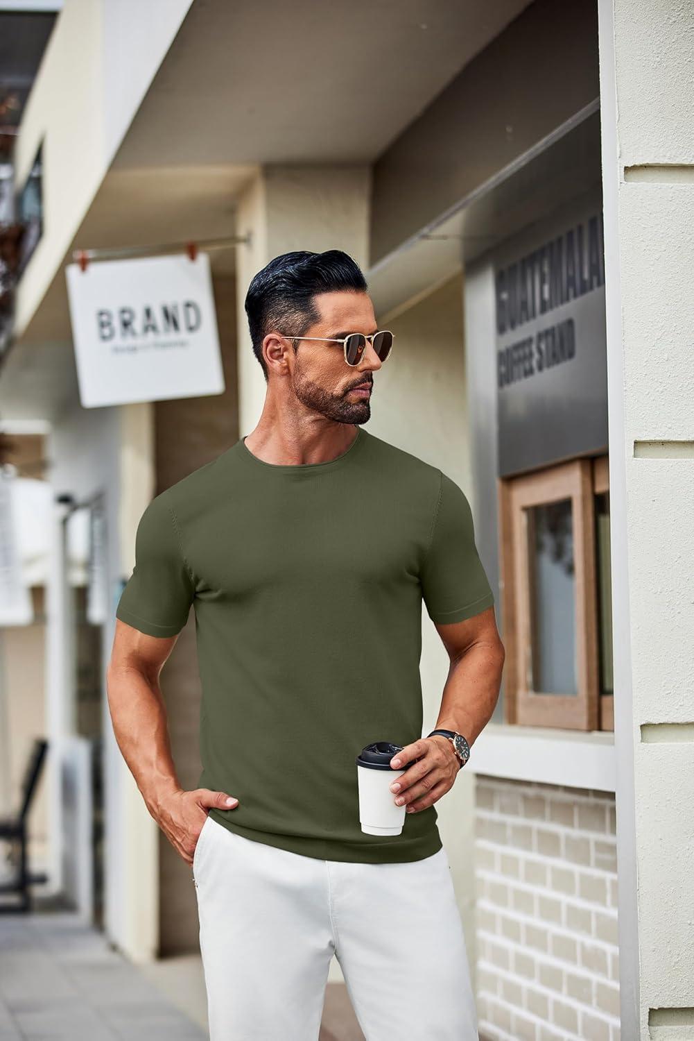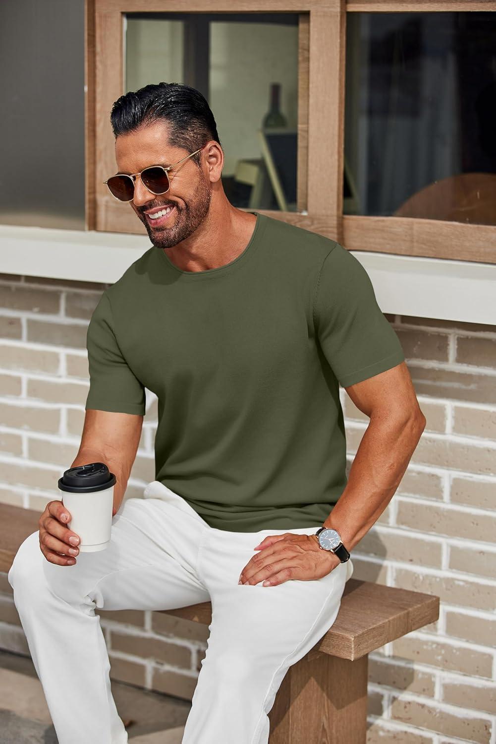 COOFANDY Mens Knit T-Shirts Casual Crewneck Short Sleeve Shirts Summer Tops Basic Pullover Tees(Army Green)