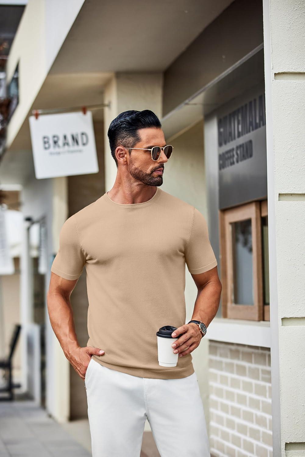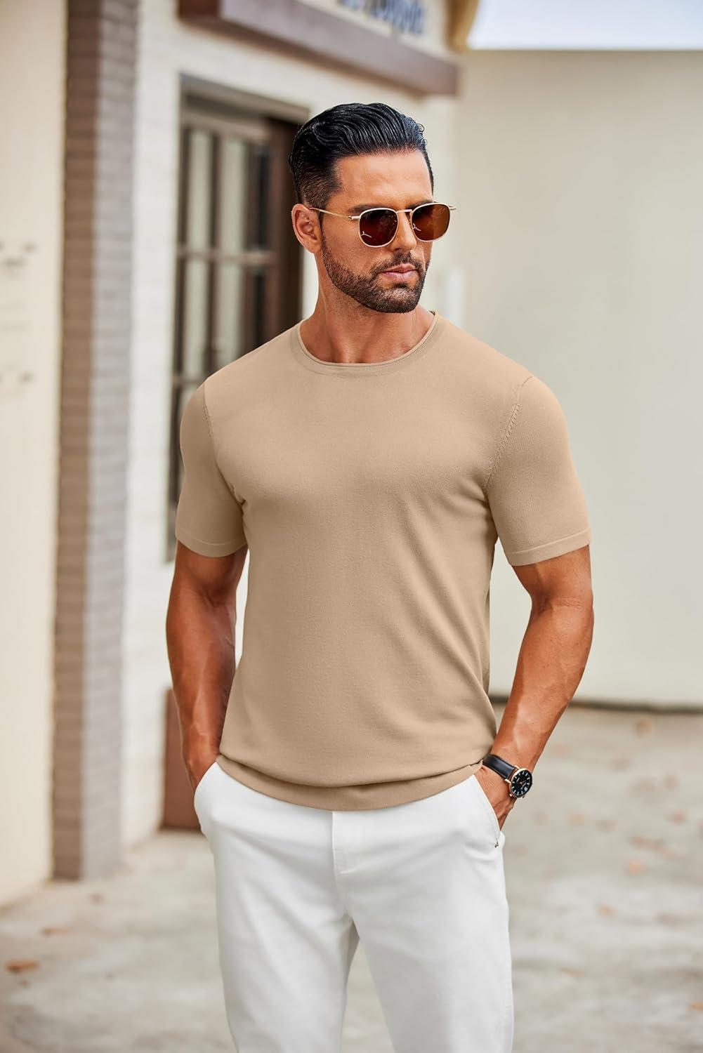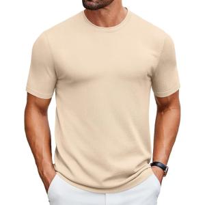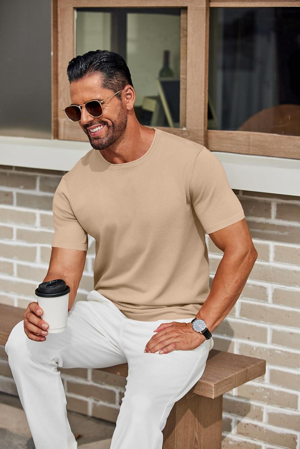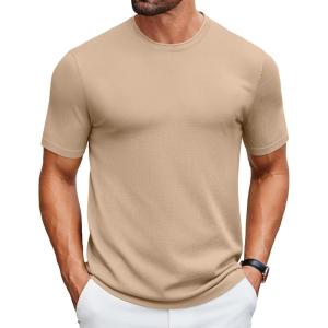 COOFANDY Mens Knit T-Shirts Casual Crewneck Short Sleeve Shirts Summer Tops Basic Pullover Tees(Khaki)