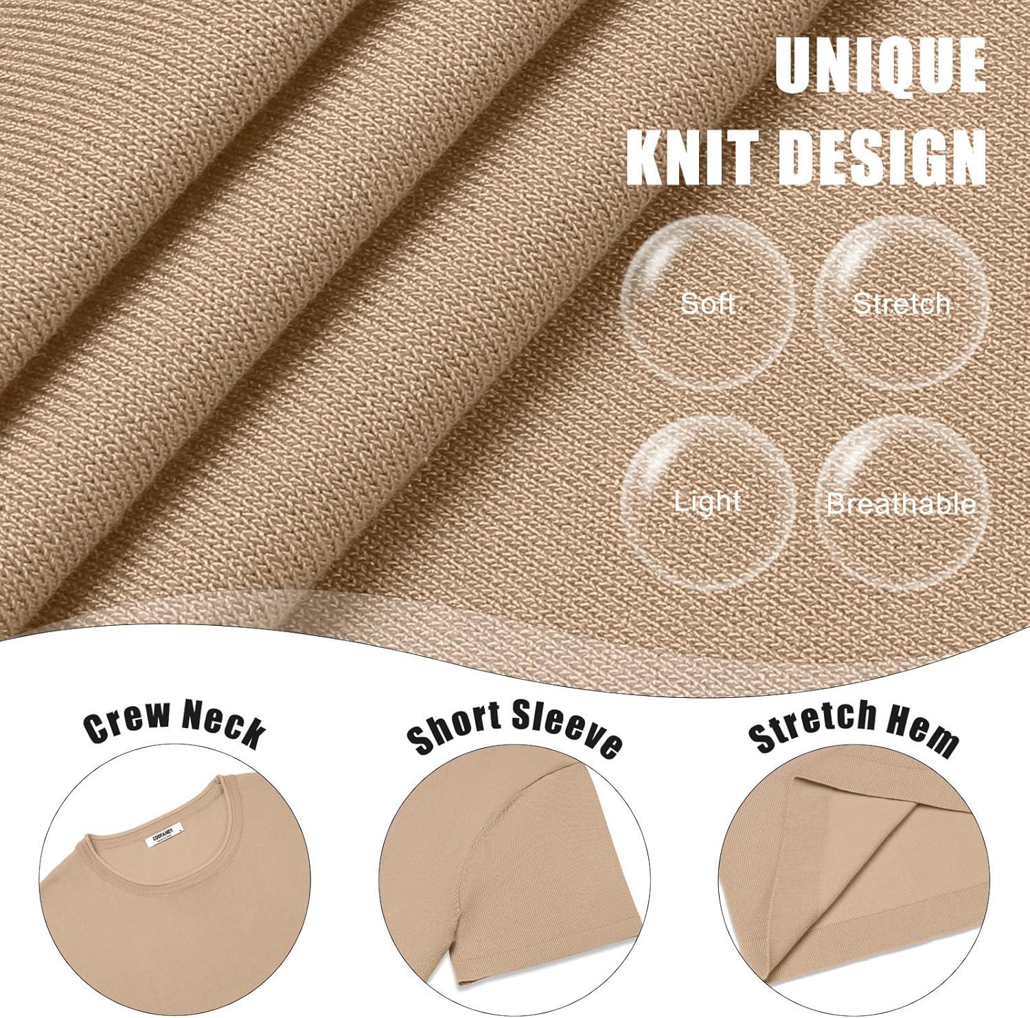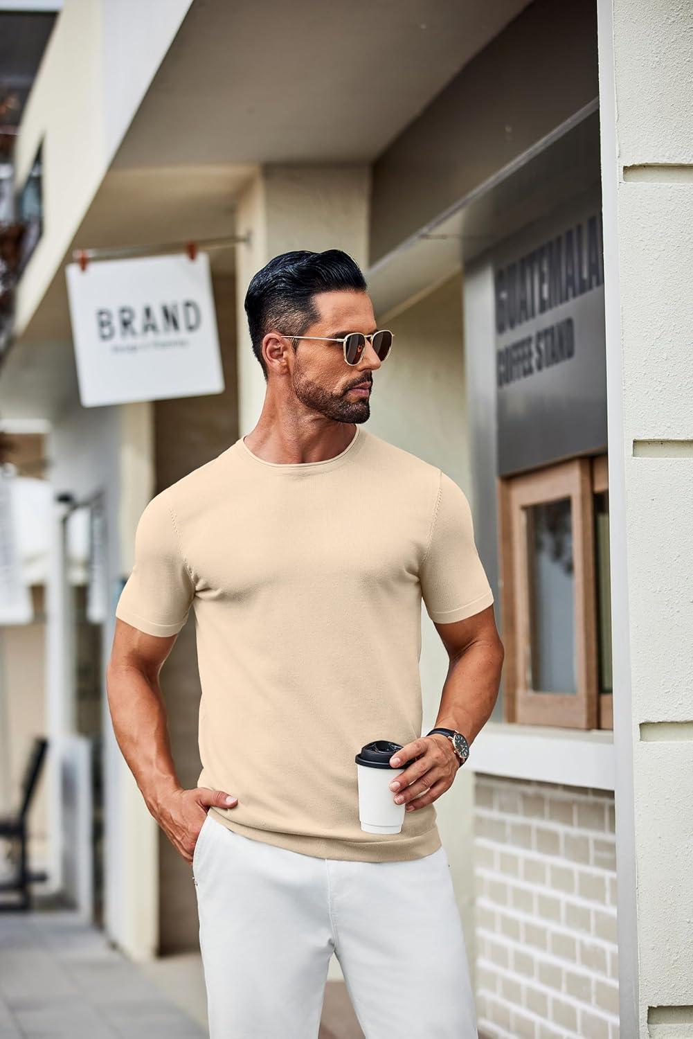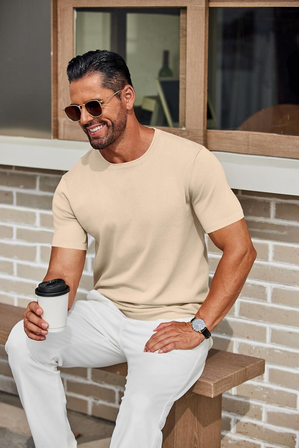 COOFANDY Mens Knit T-Shirts Casual Crewneck Short Sleeve Shirts Summer Tops Basic Pullover Tees(Khaki)