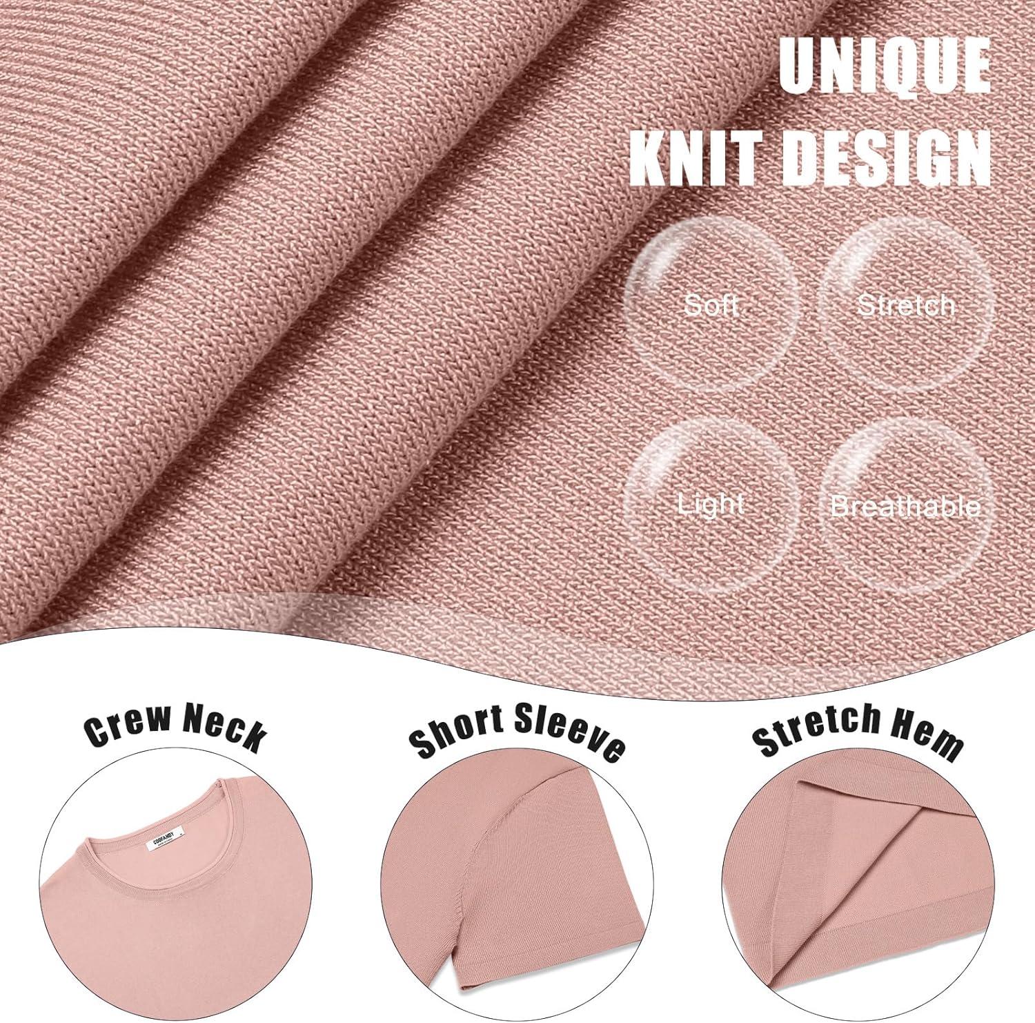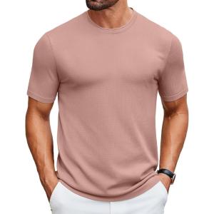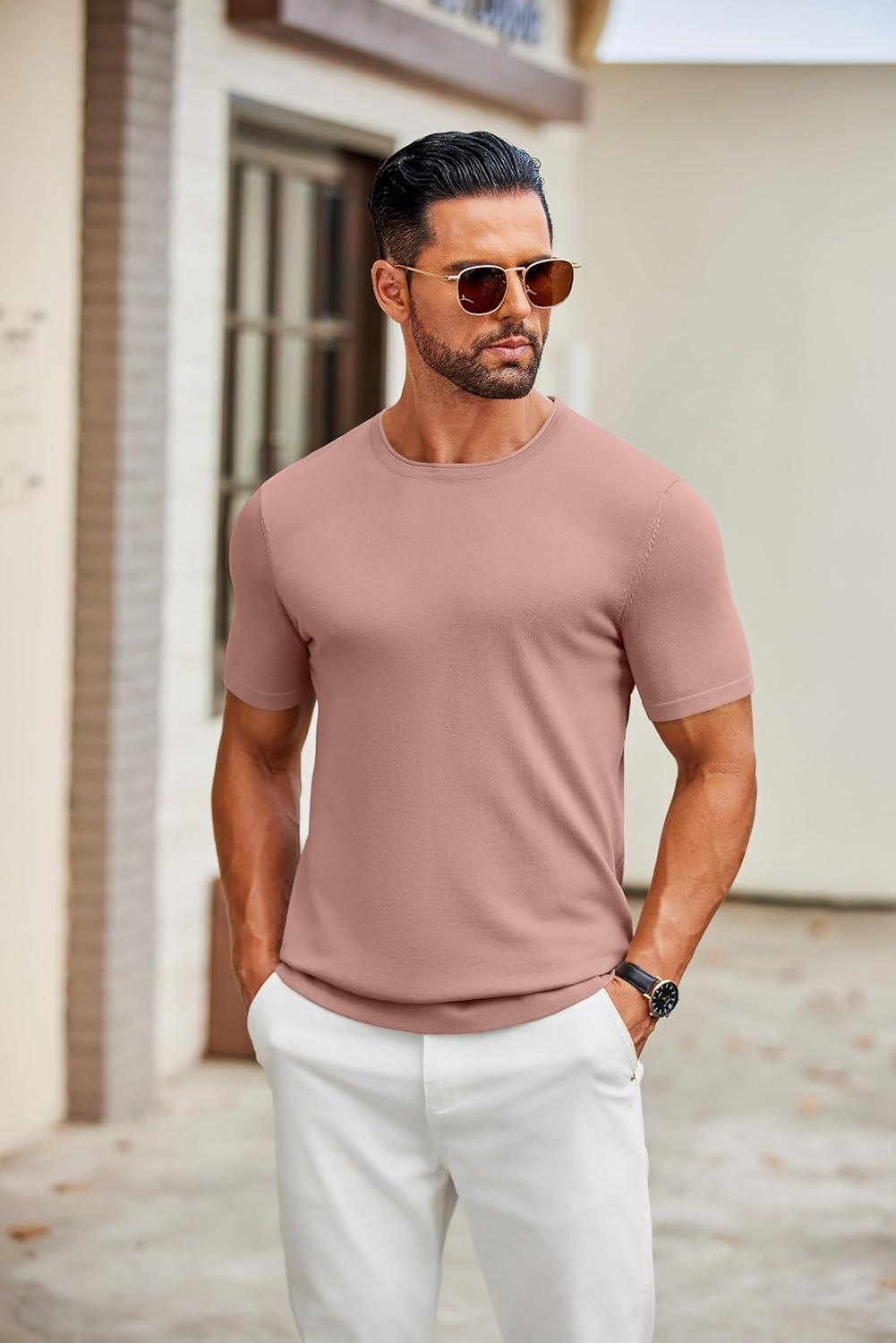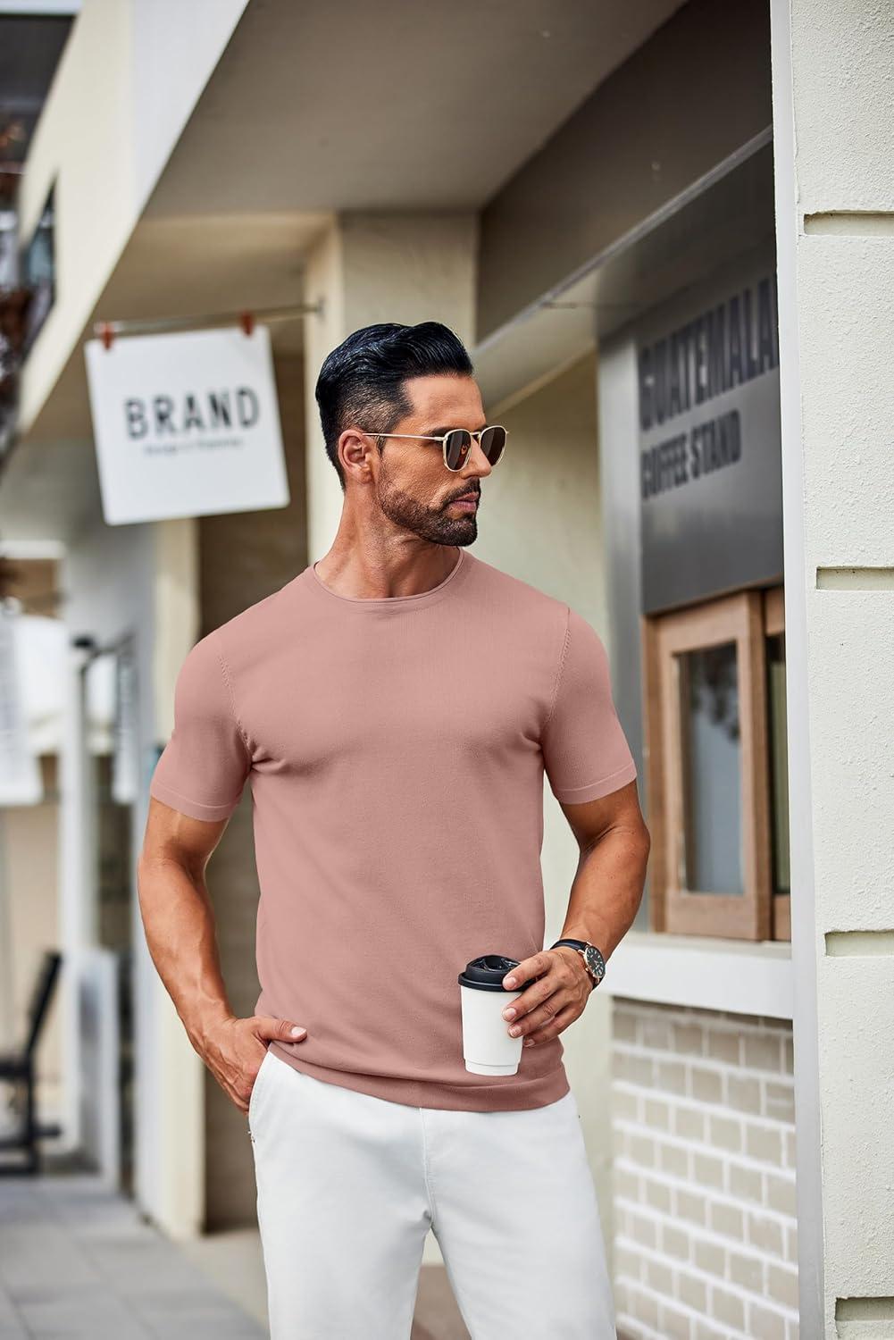 COOFANDY Mens Knit T-Shirts Casual Crewneck Short Sleeve Shirts Summer Tops Basic Pullover Tees(Light Pink)