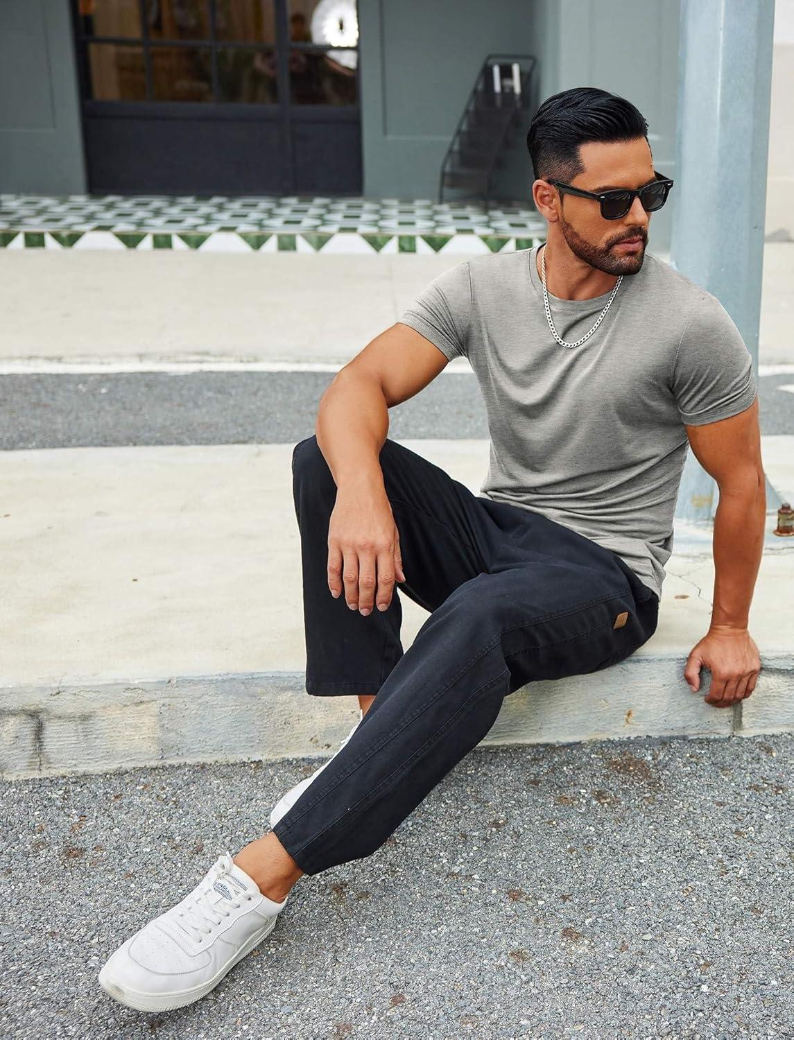 COOFANDY Mens Knit T-Shirts Casual Crewneck Short Sleeve Shirts Summer Tops Basic Pullover Tees(A-dark Grey 1pack)