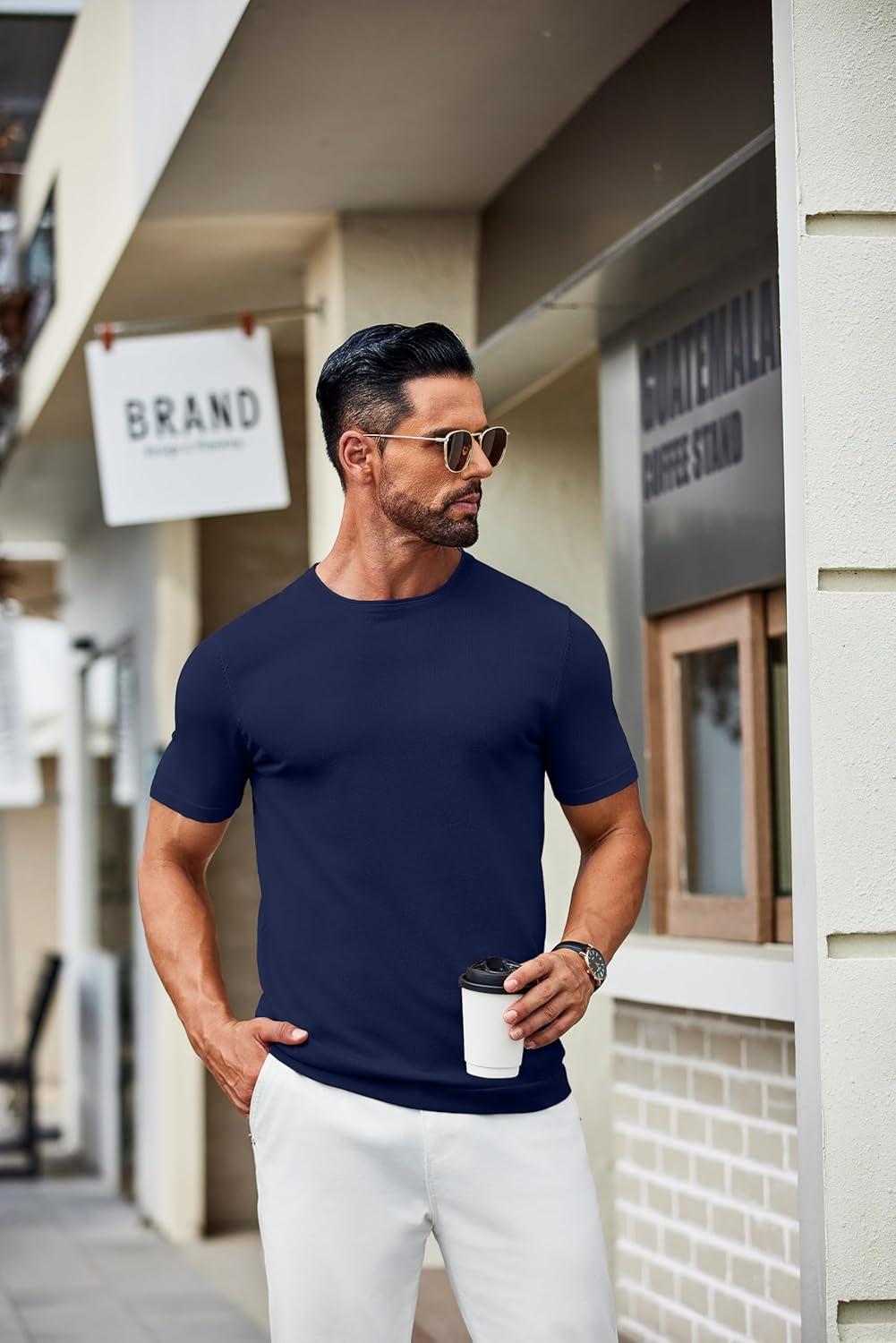 COOFANDY Mens Knit T-Shirts Casual Crewneck Short Sleeve Shirts Summer Tops Basic Pullover Tees(Light Steel)