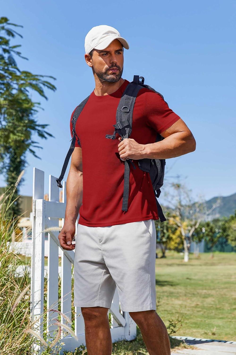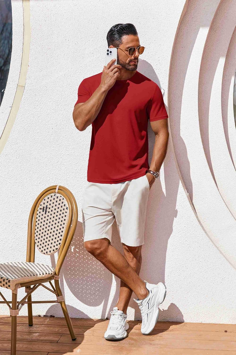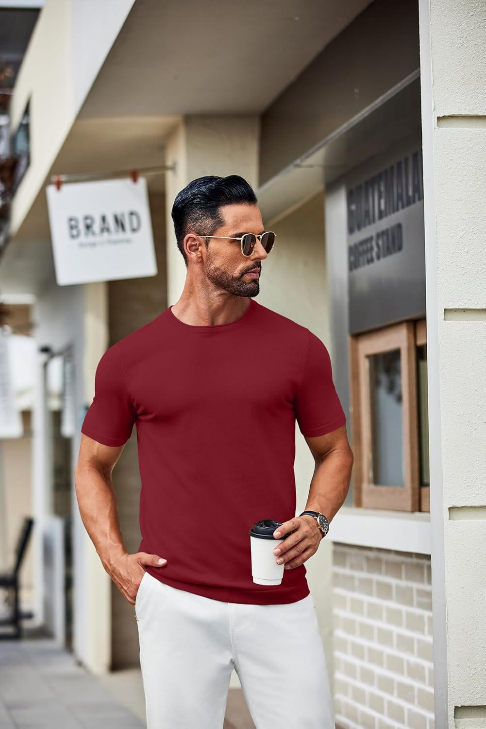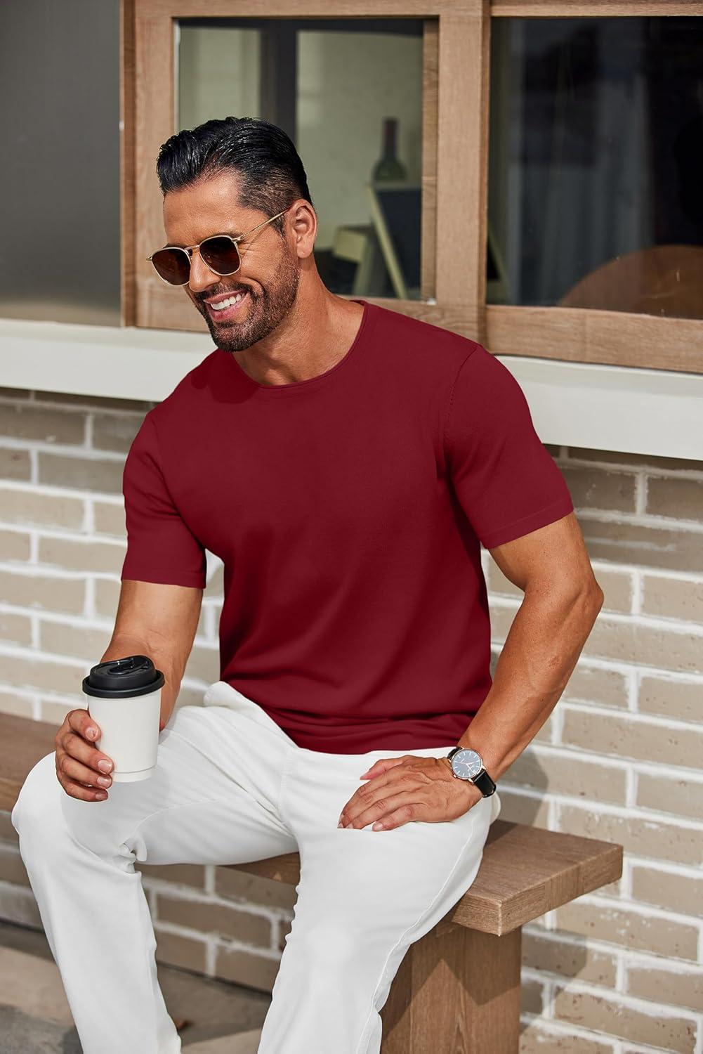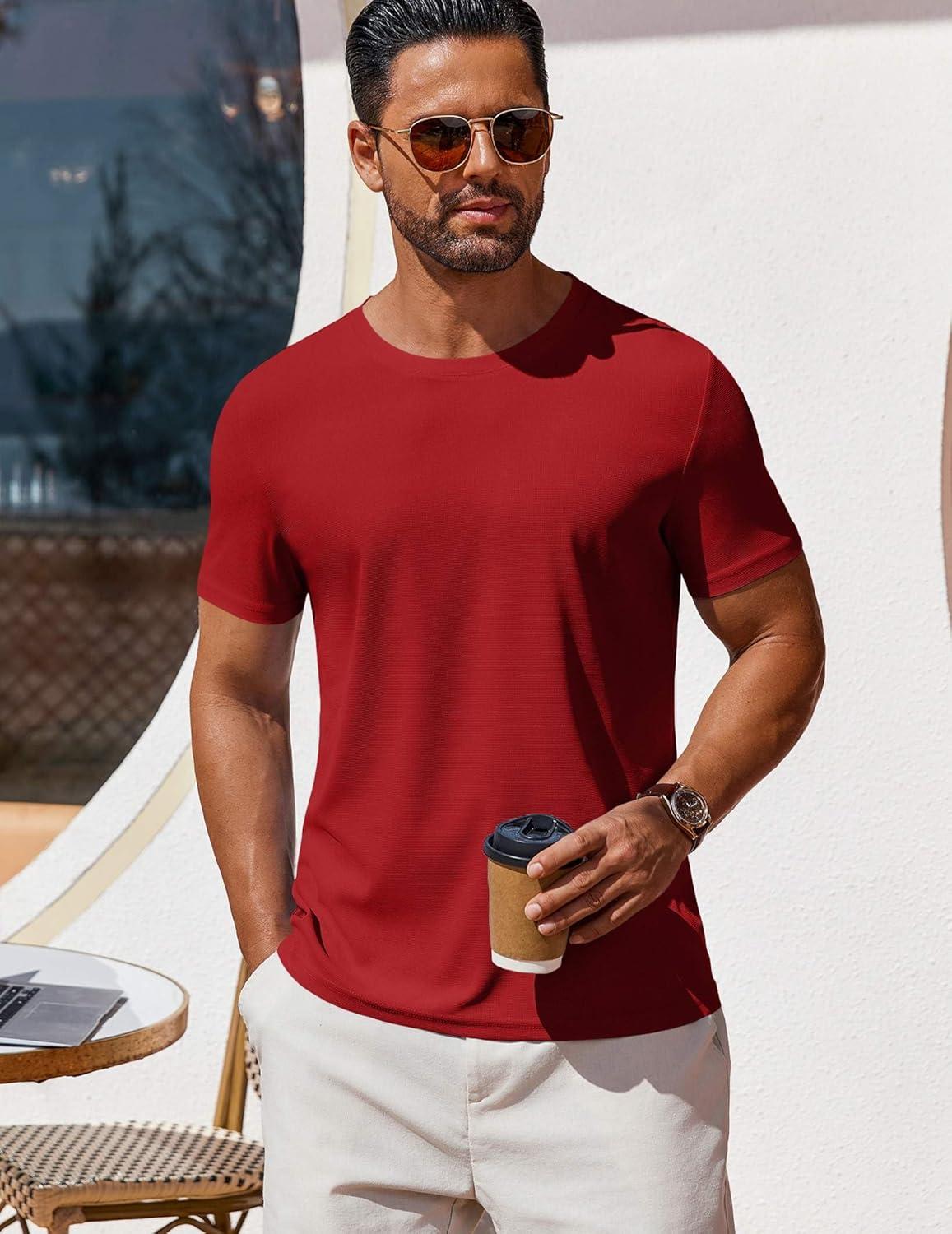 COOFANDY Mens Knit T-Shirts Casual Crewneck Short Sleeve Shirts Summer Tops Basic Pullover Tees(Red)