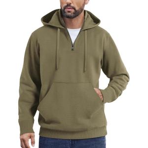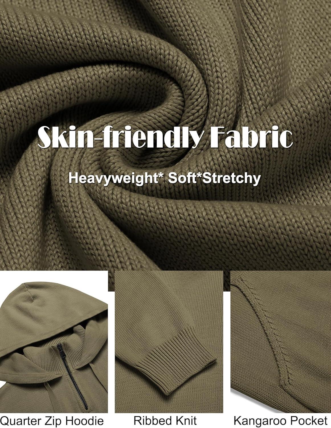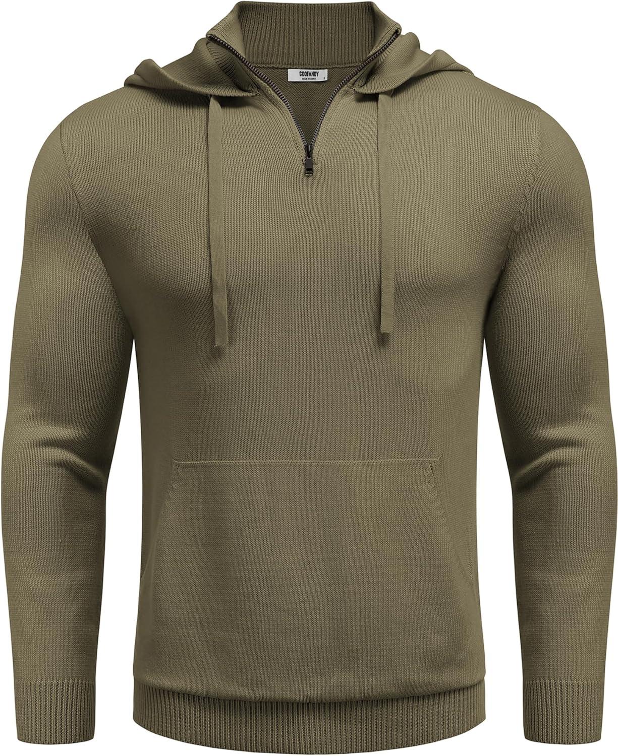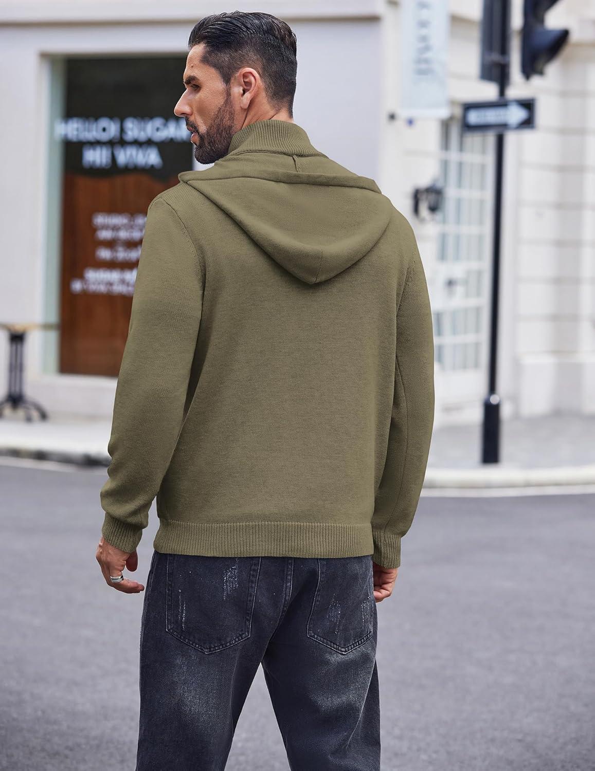 COOFANDY Mens Knitted Hoodie Sweater Long Sleeve Turtleneck Quarter Zip Pullover Sweaters with Pocket(Army Green)