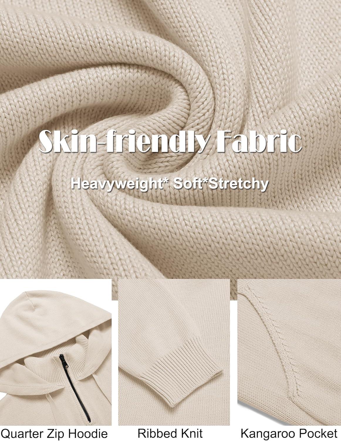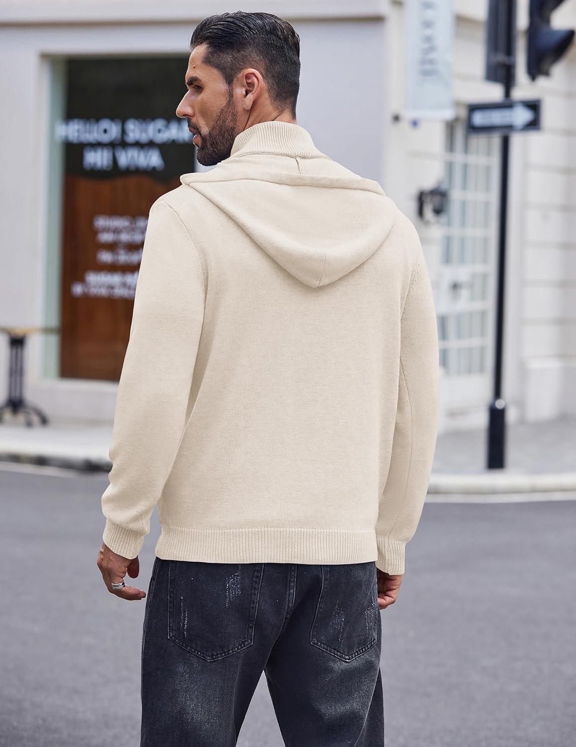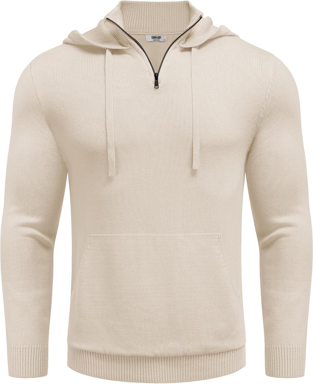 COOFANDY Mens Knitted Hoodie Sweater Long Sleeve Turtleneck Quarter Zip Pullover Sweaters with Pocket(Beige)