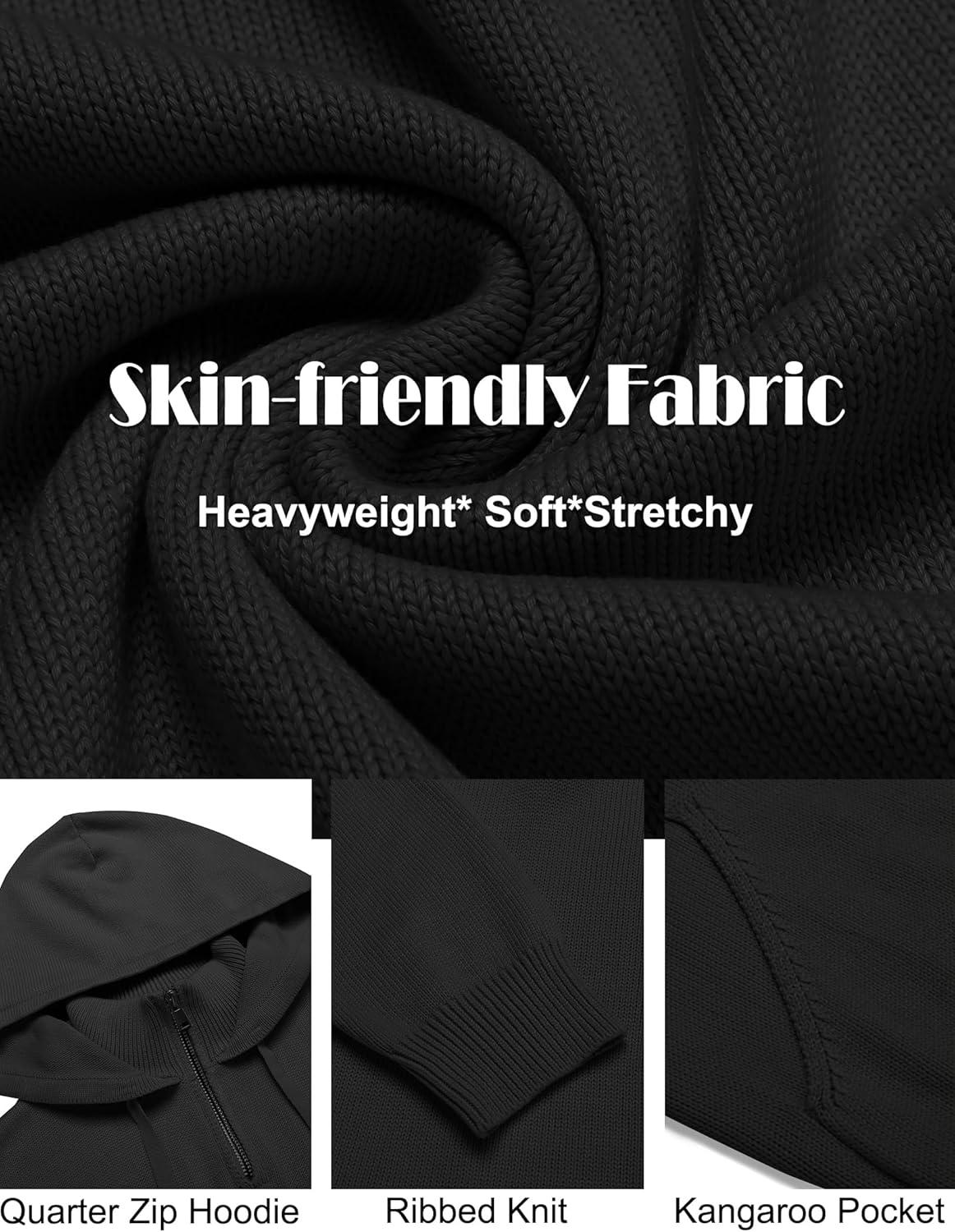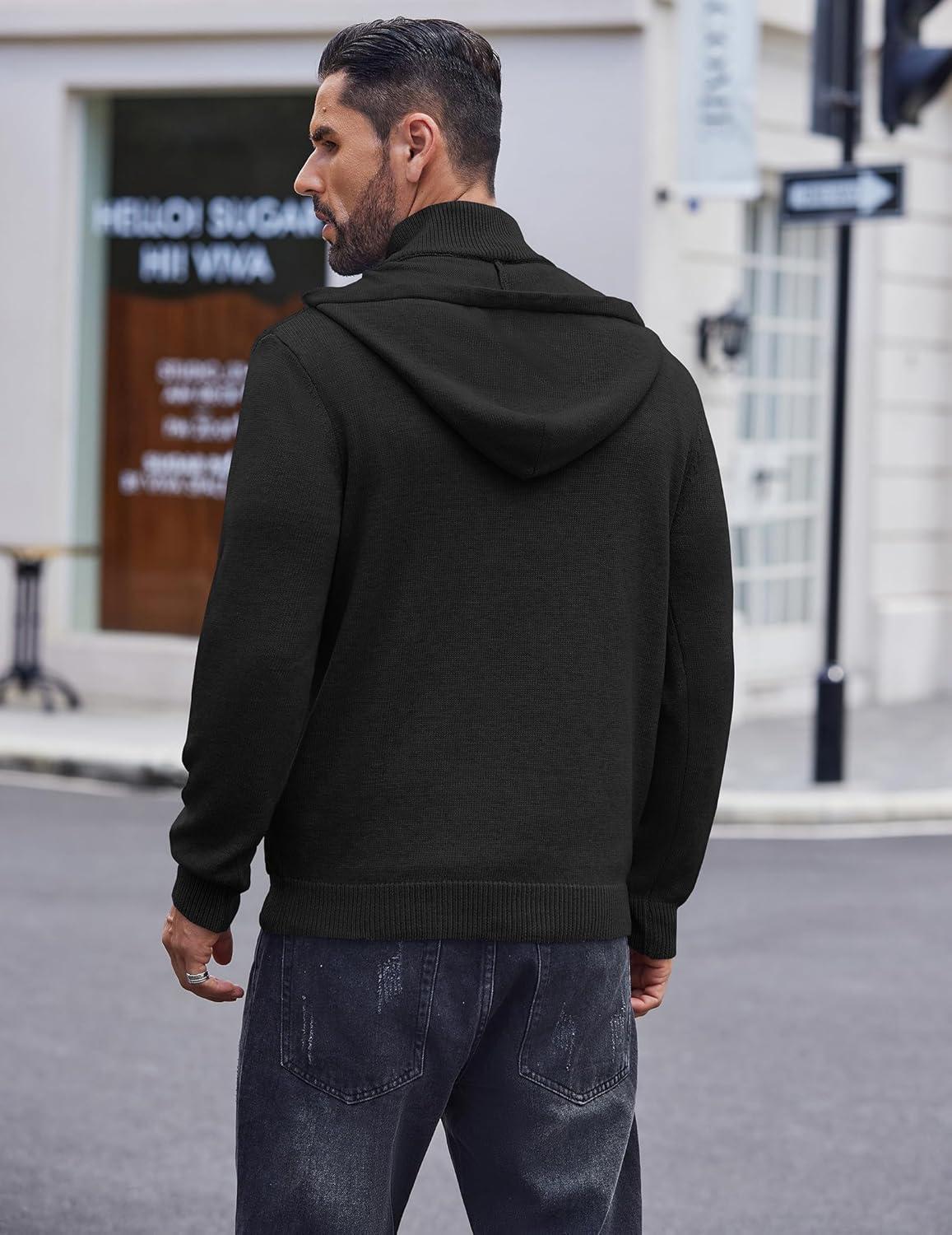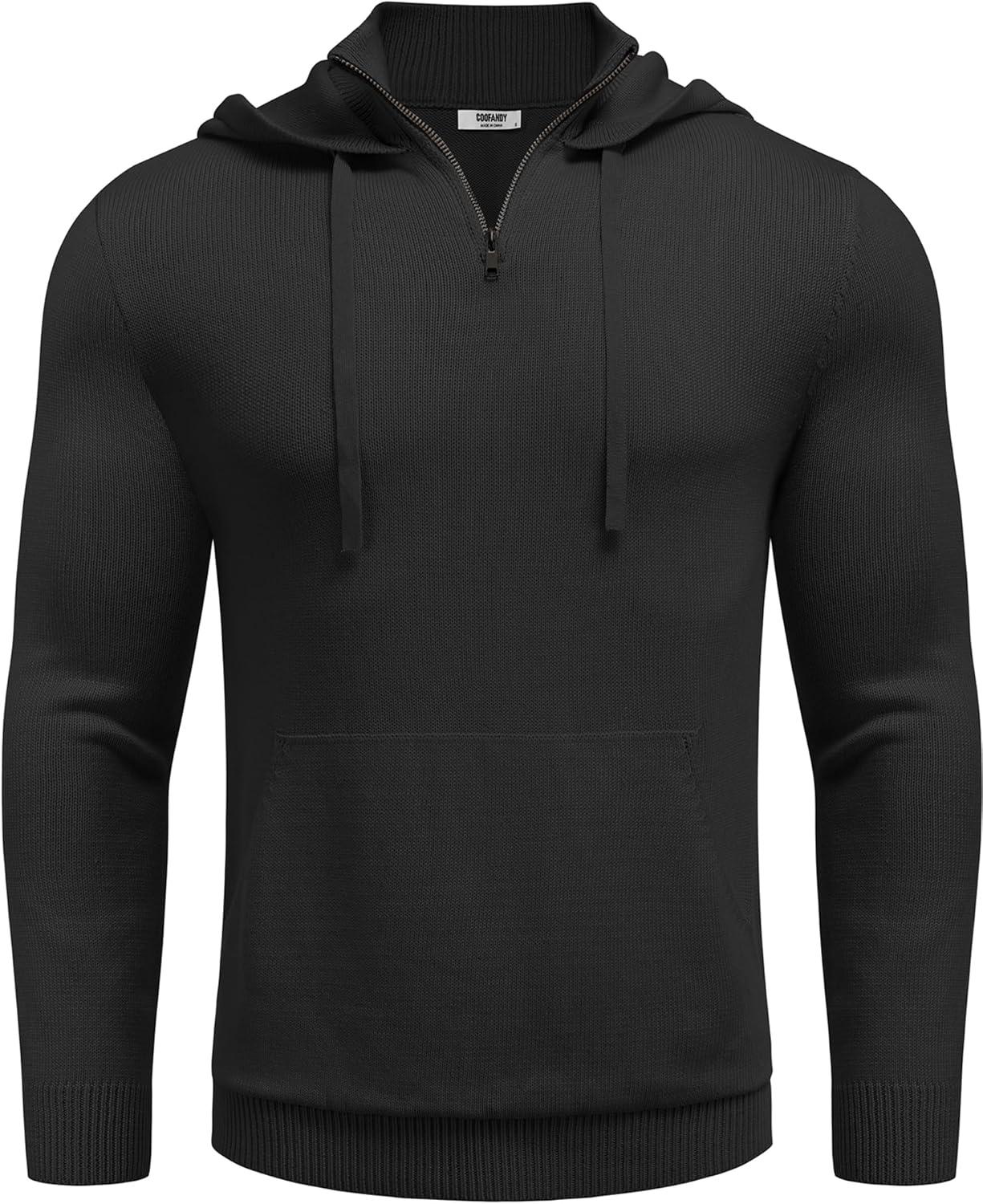 COOFANDY Mens Knitted Hoodie Sweater Long Sleeve Turtleneck Quarter Zip Pullover Sweaters with Pocket(Black)