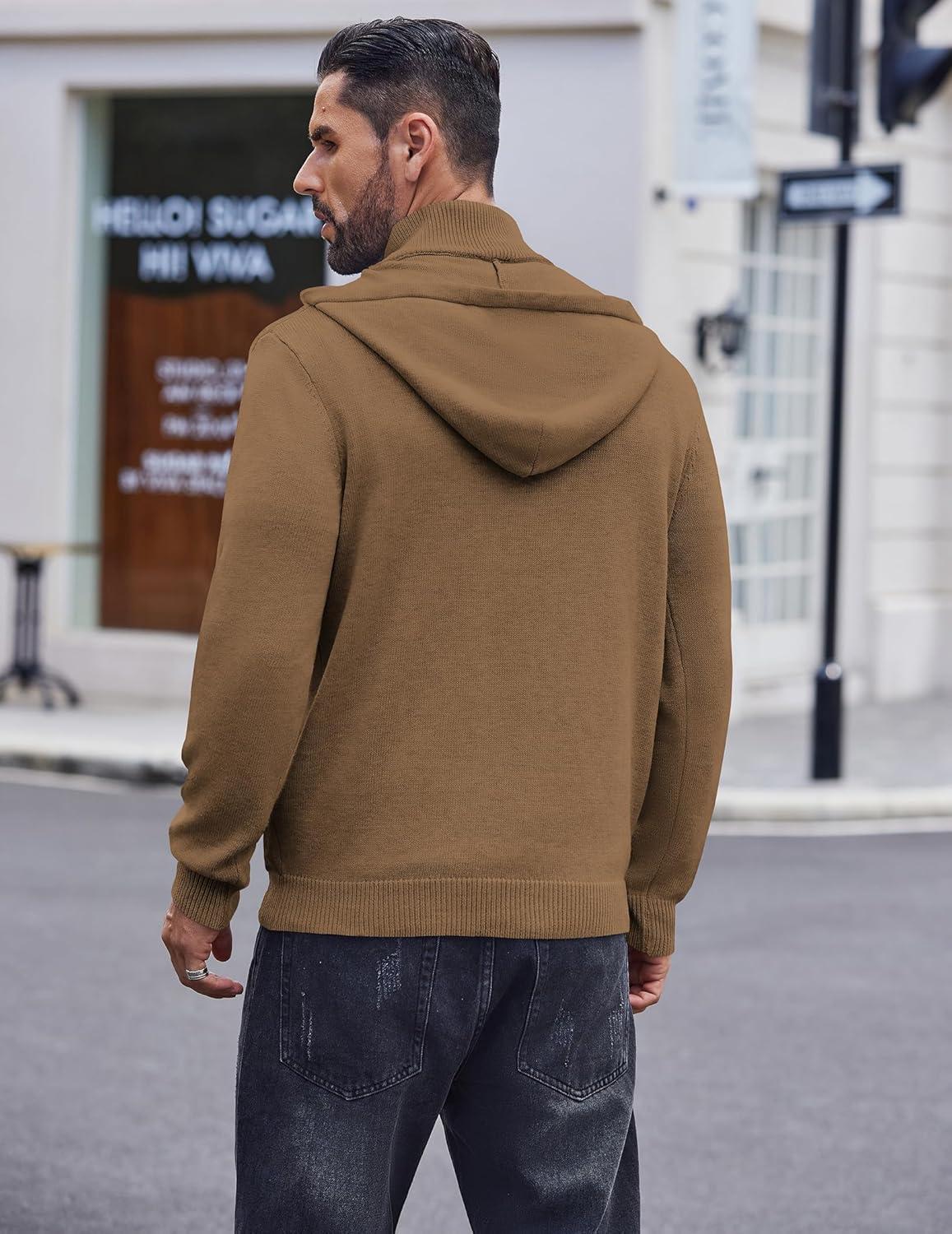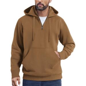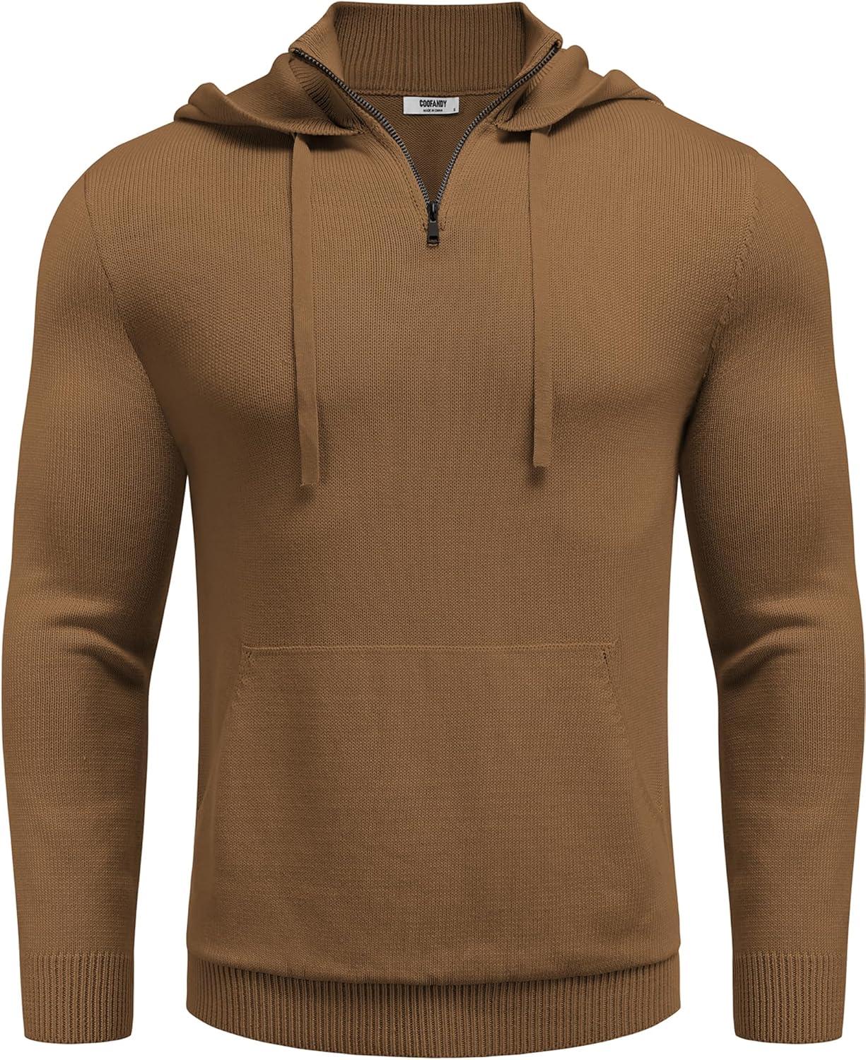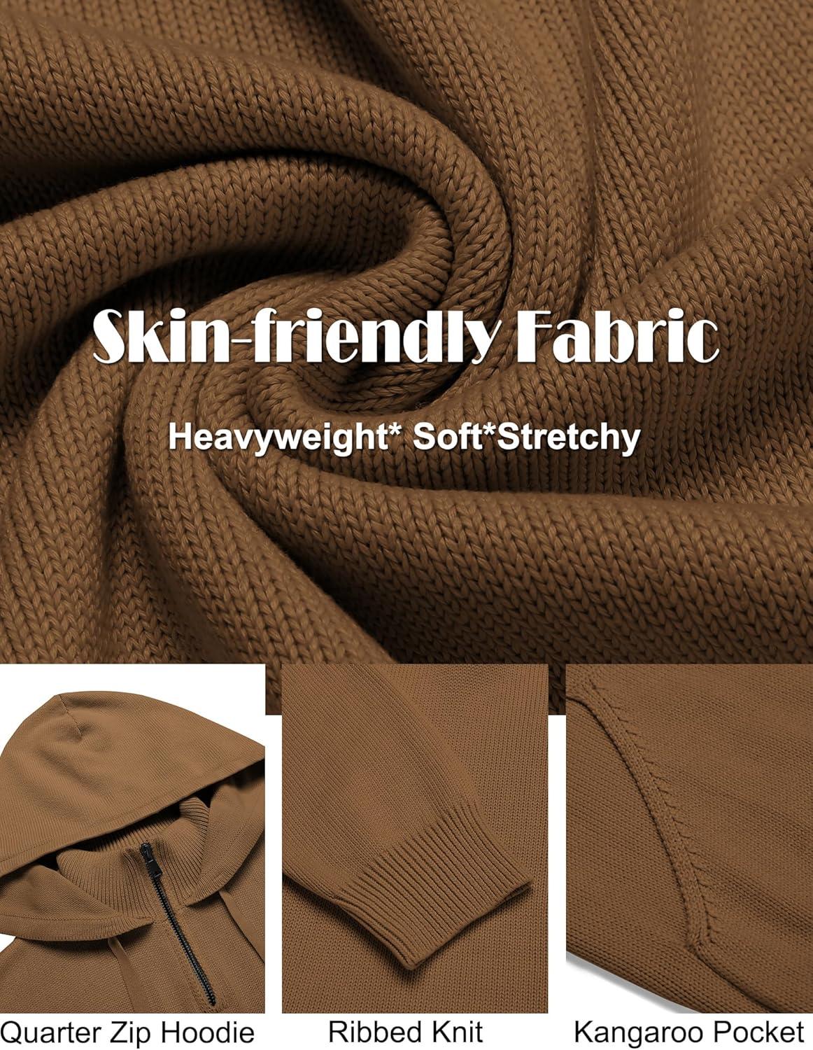 COOFANDY Mens Knitted Hoodie Sweater Long Sleeve Turtleneck Quarter Zip Pullover Sweaters with Pocket(Brown)