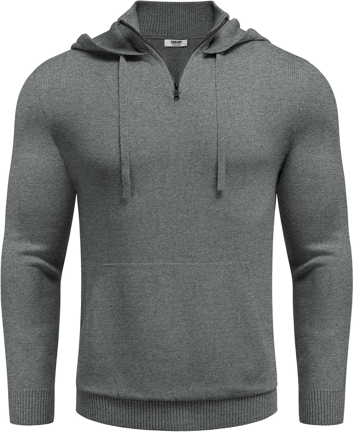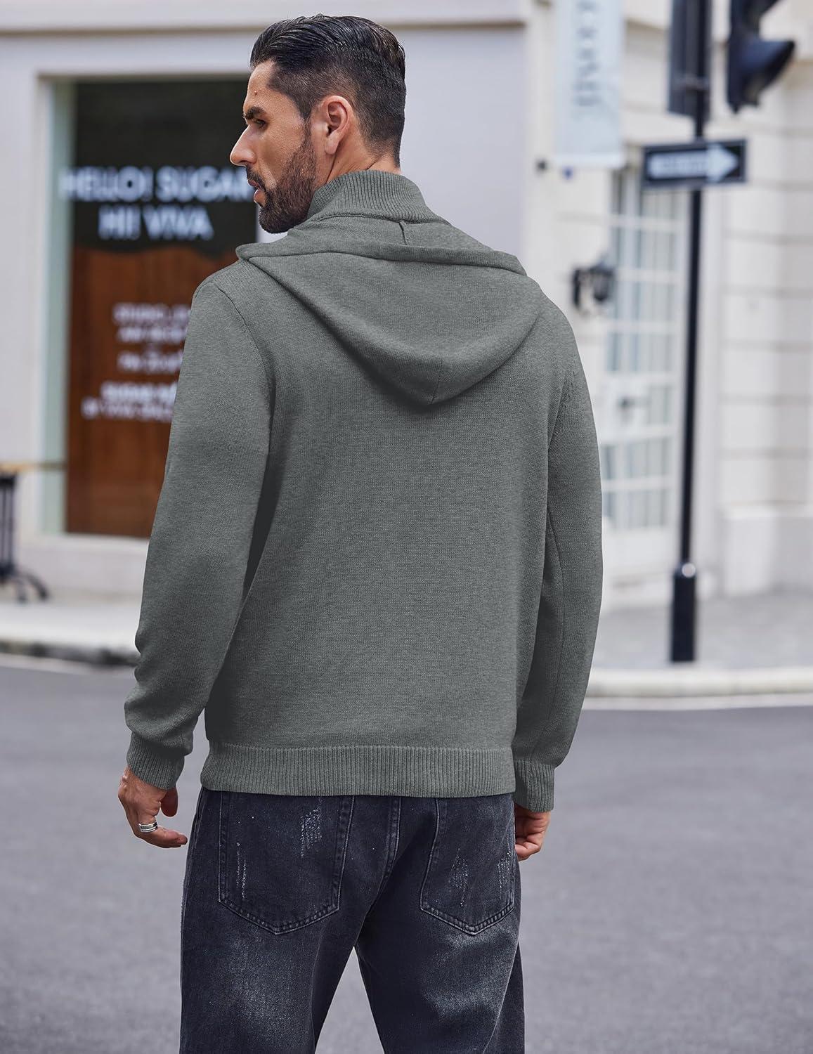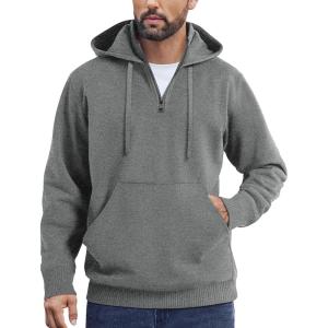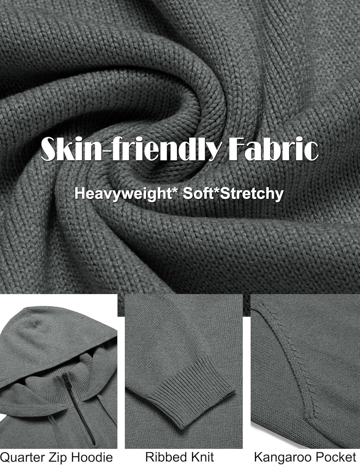 COOFANDY Mens Knitted Hoodie Sweater Long Sleeve Turtleneck Quarter Zip Pullover Sweaters with Pocket(Dark Gray)