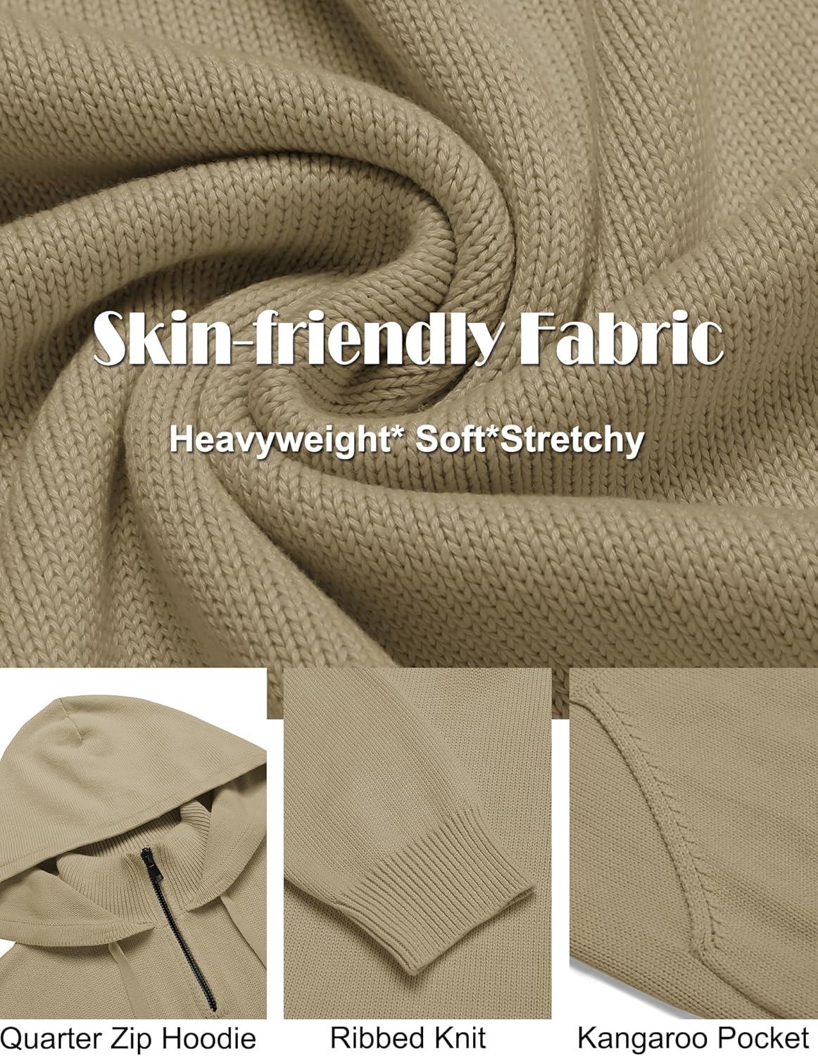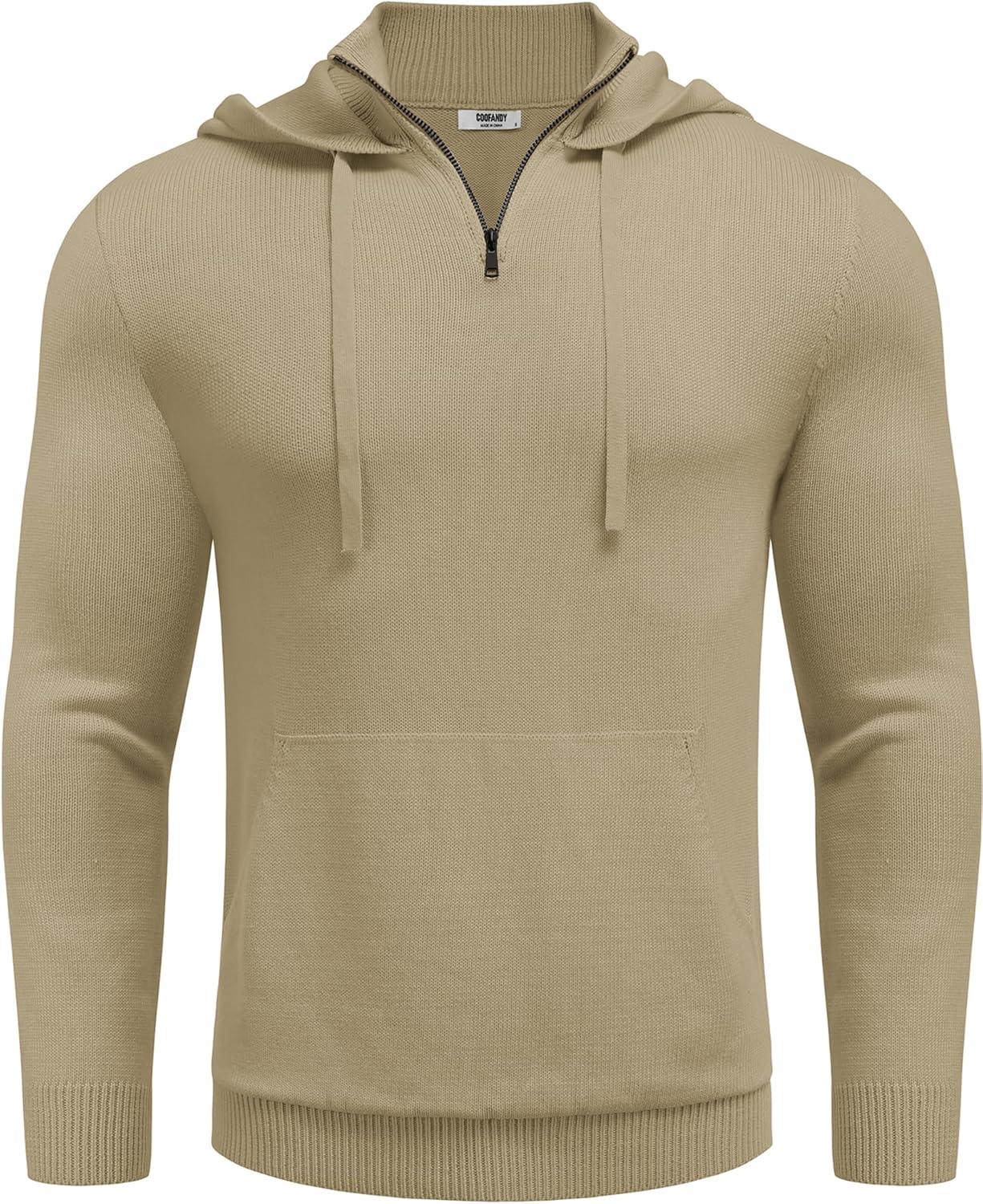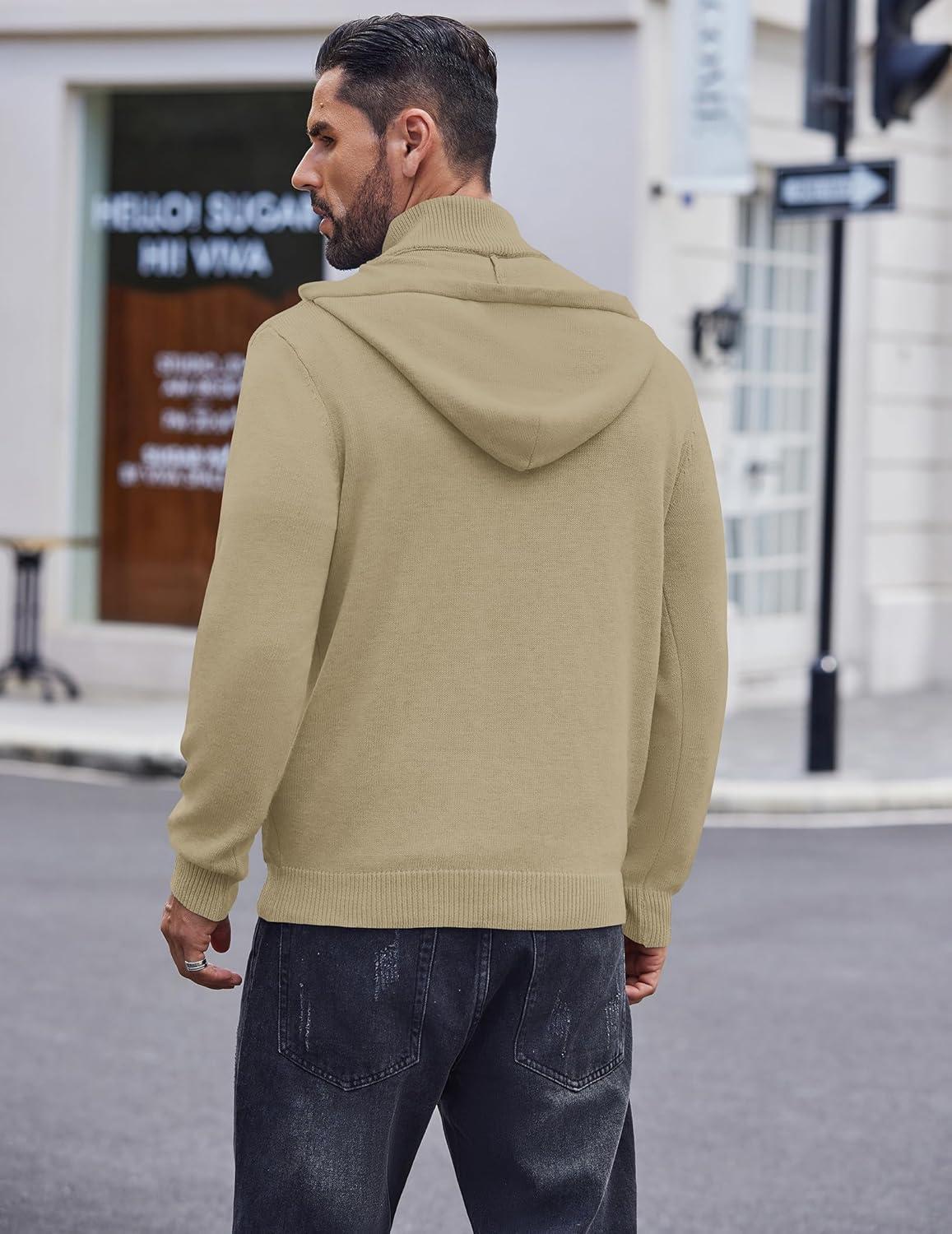 COOFANDY Mens Knitted Hoodie Sweater Long Sleeve Turtleneck Quarter Zip Pullover Sweaters with Pocket(Khaki)