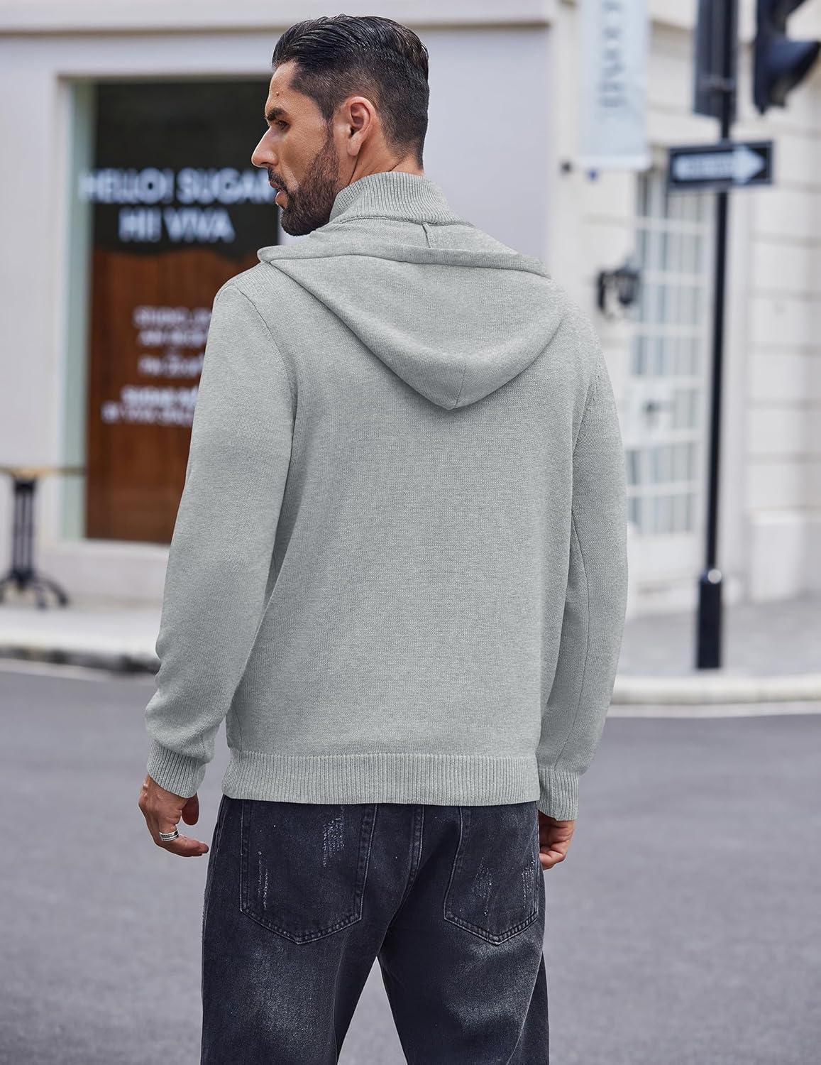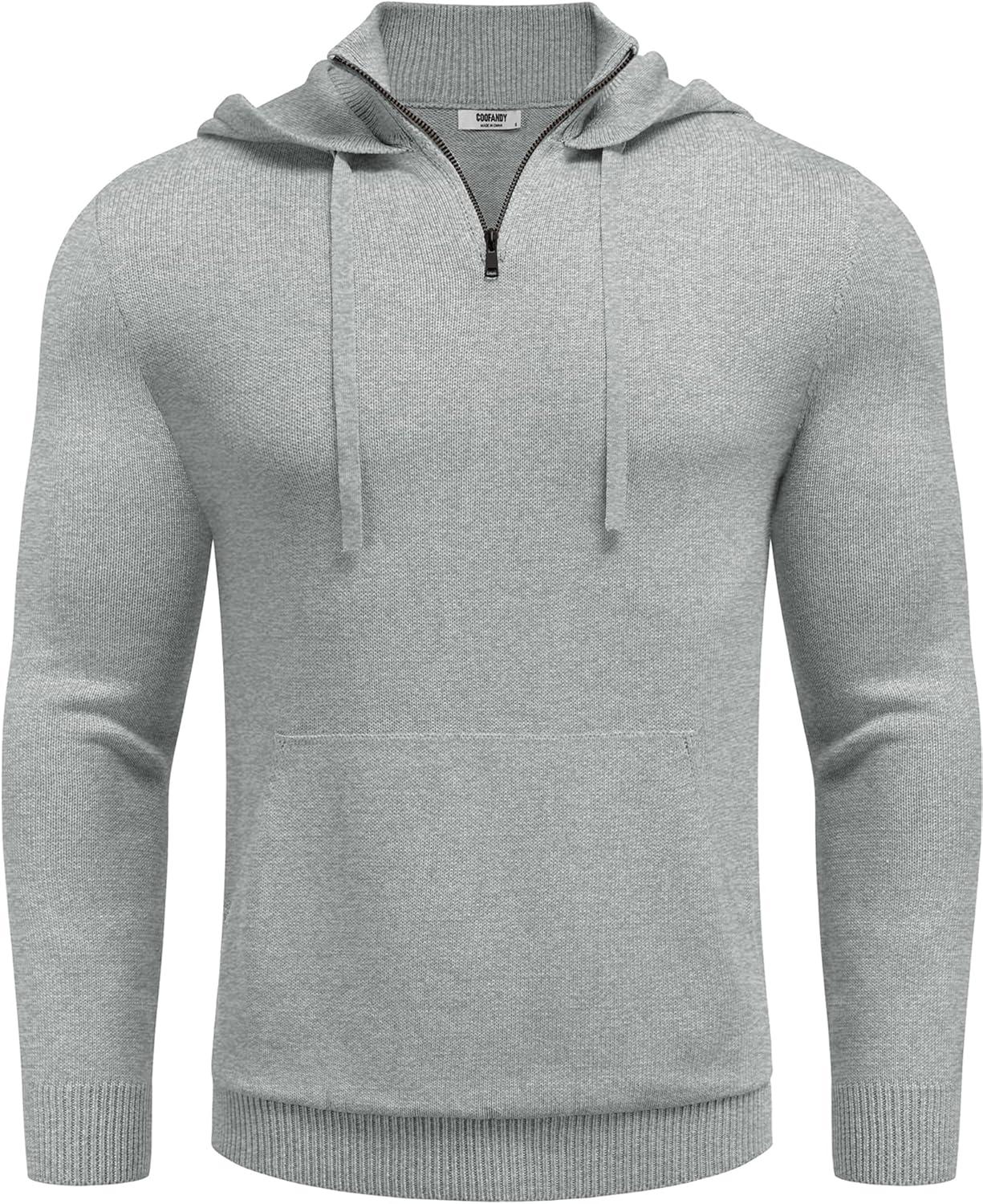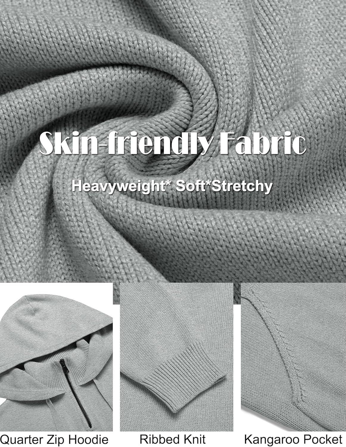 COOFANDY Mens Knitted Hoodie Sweater Long Sleeve Turtleneck Quarter Zip Pullover Sweaters with Pocket(Light Gray)