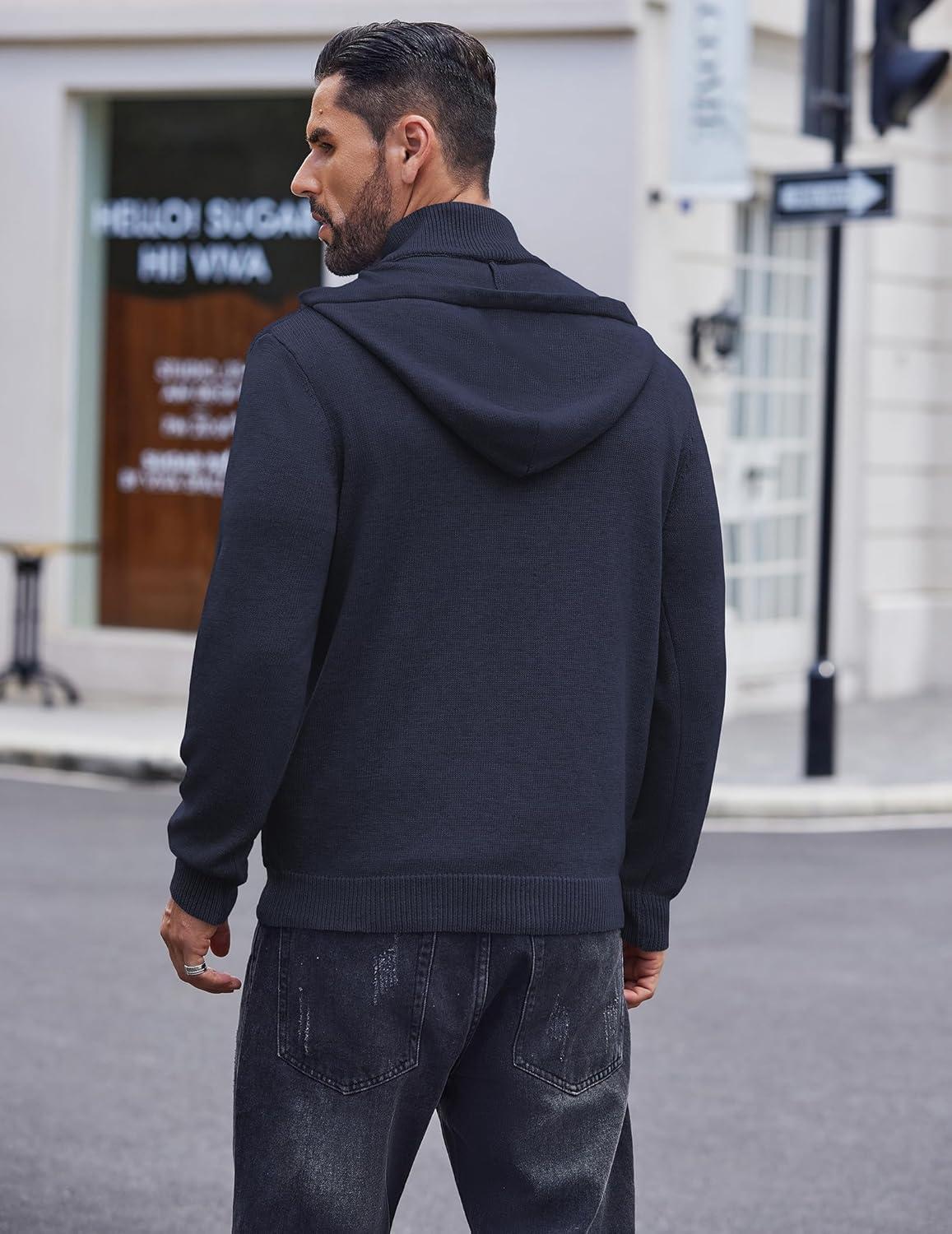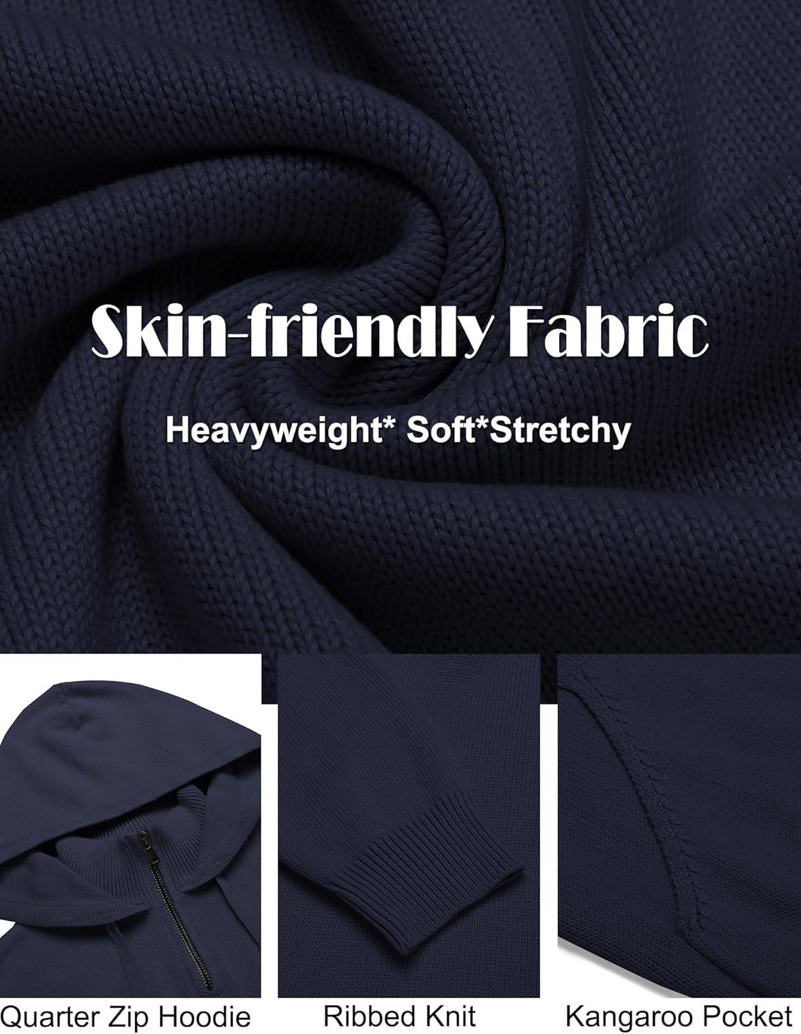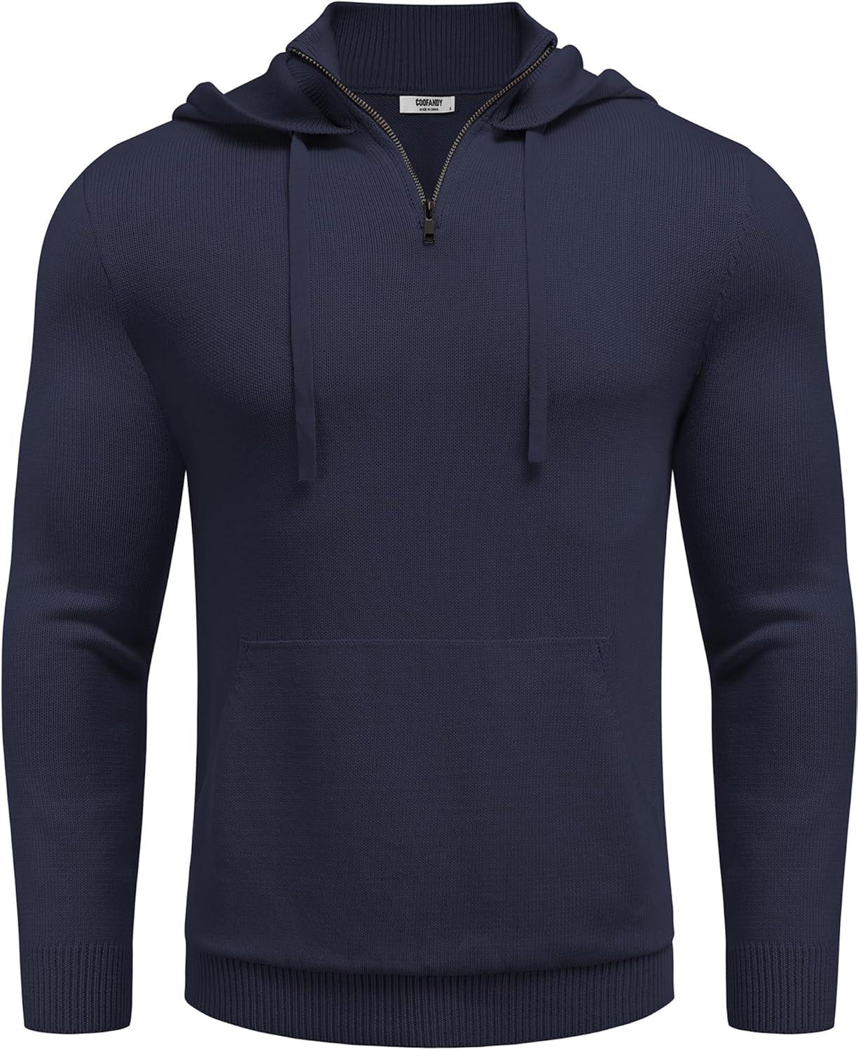 COOFANDY Mens Knitted Hoodie Sweater Long Sleeve Turtleneck Quarter Zip Pullover Sweaters with Pocket(Navy Blue)