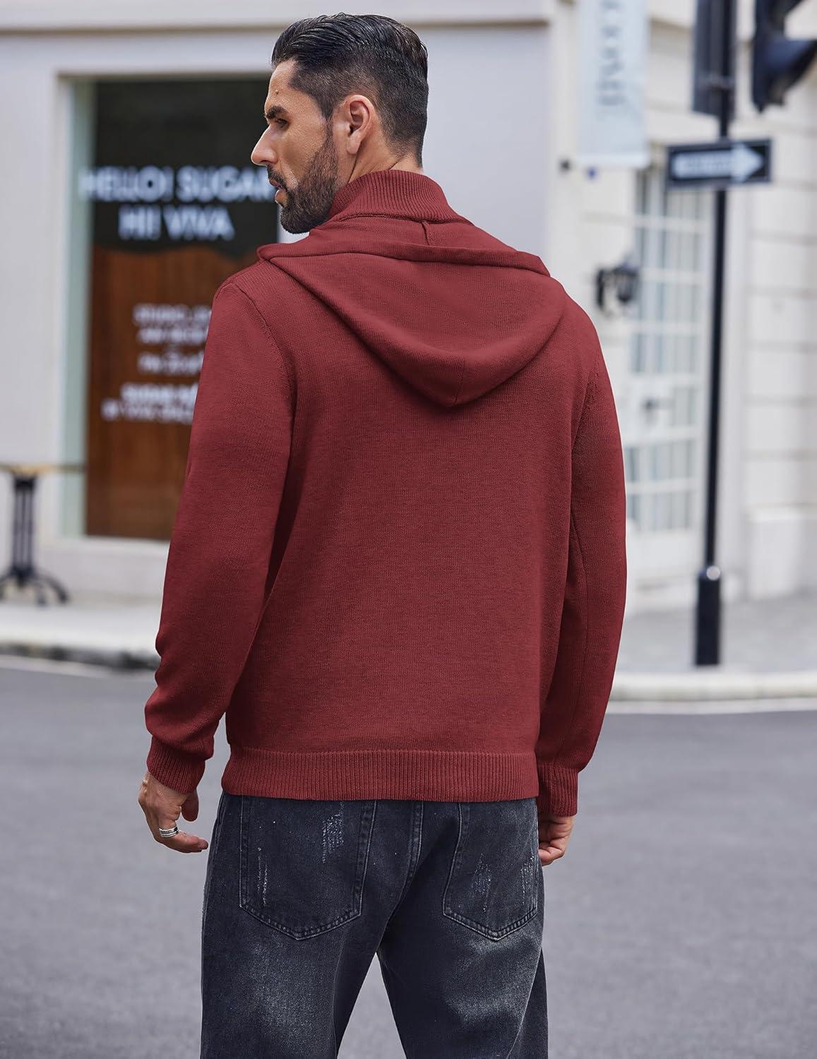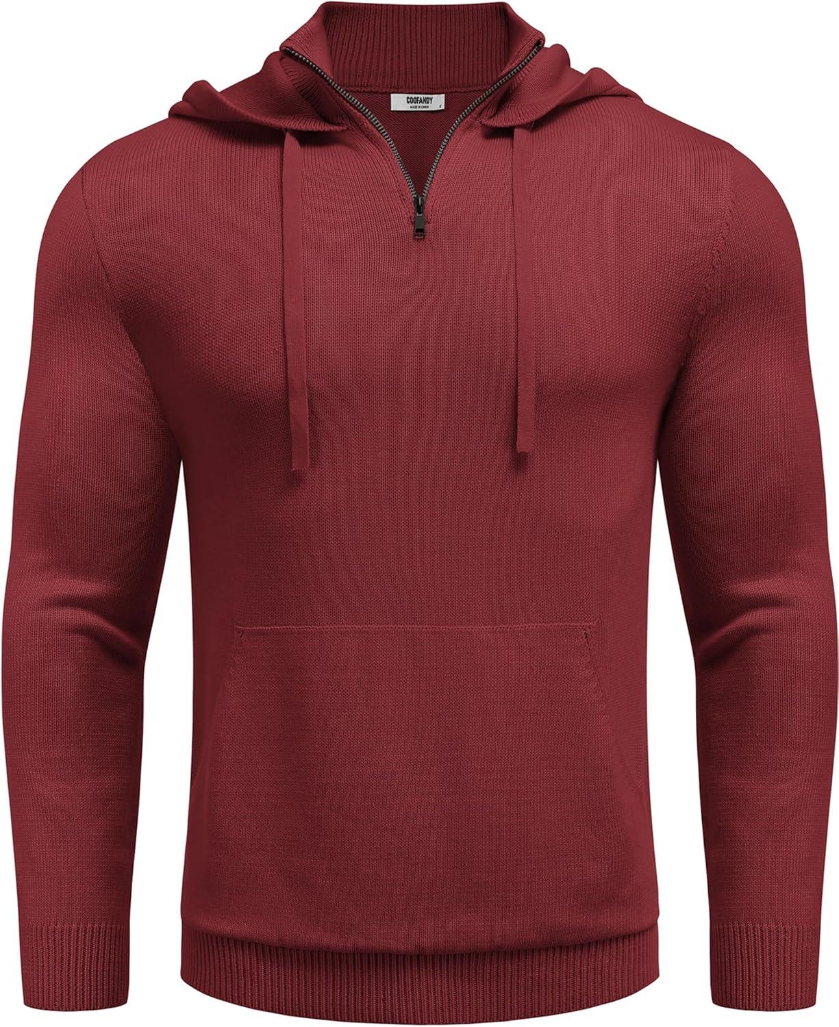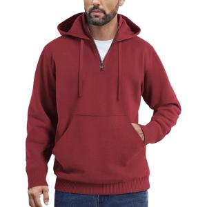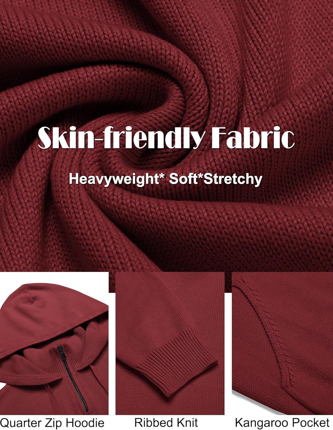 COOFANDY Mens Knitted Hoodie Sweater Long Sleeve Turtleneck Quarter Zip Pullover Sweaters with Pocket(Wine Red)