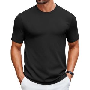 COOFANDY Mens Knit T-Shirts Casual Crewneck Short Sleeve Shirts Summer Tops Basic Pullover Tees(A-black 1pack)