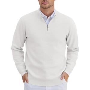 COOFANDY Mens Quarter Zip Pullover Slim Fit Lightweight Knit Pullover Sweaters Casual Polo Sweater(White)