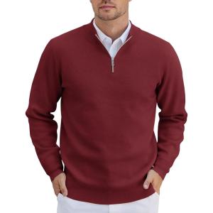 COOFANDY Mens Quarter Zip Pullover Slim Fit Lightweight Knit Pullover Sweaters Casual Polo Sweater(Wine Red)