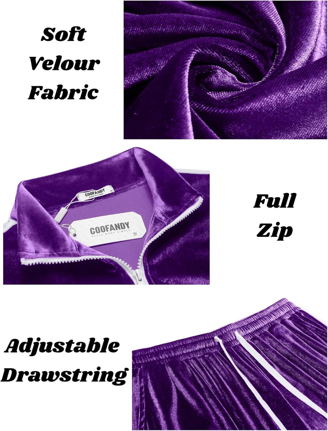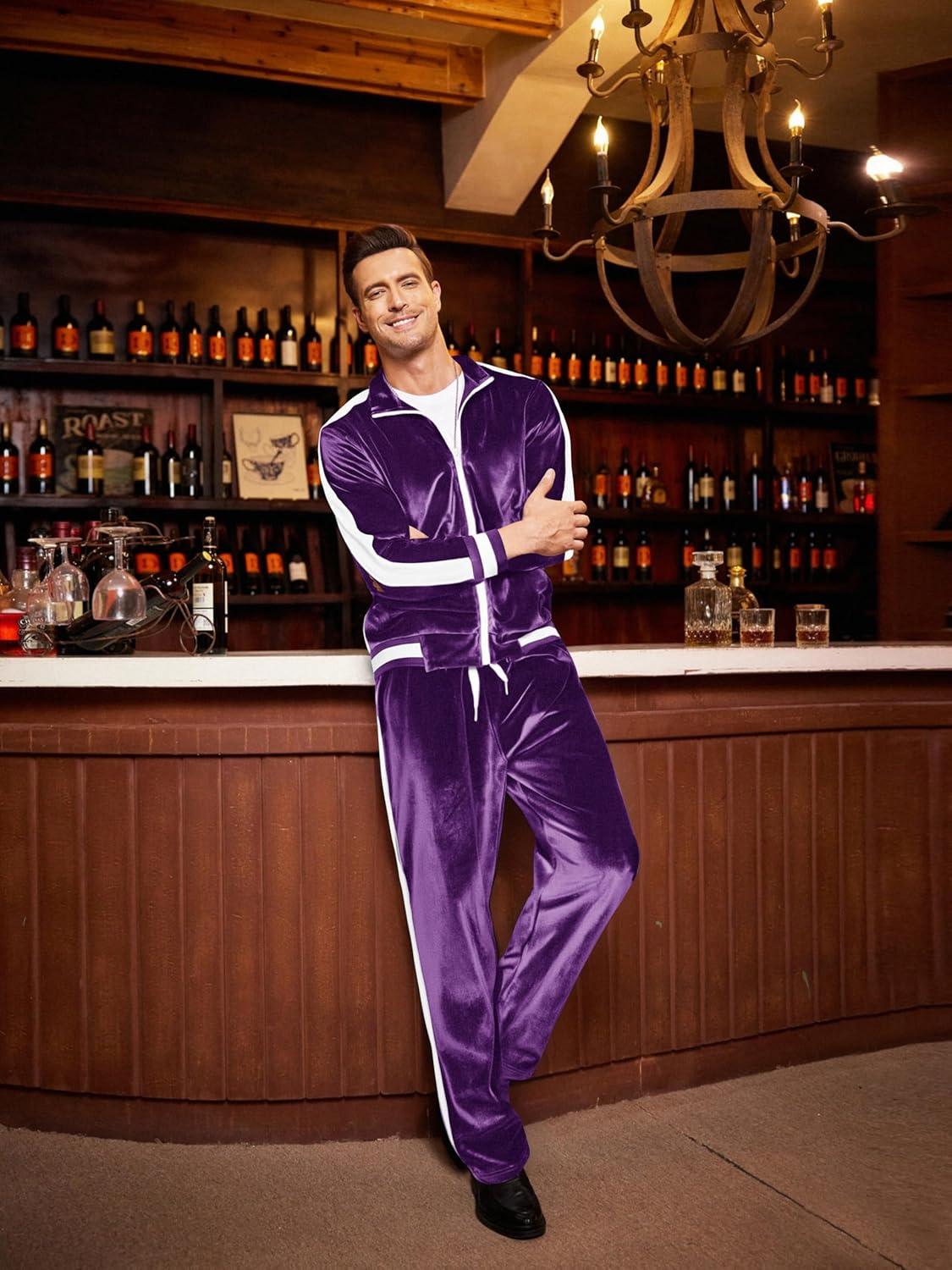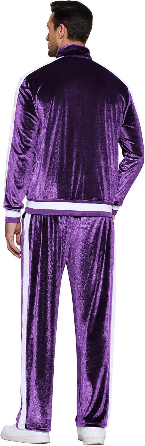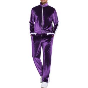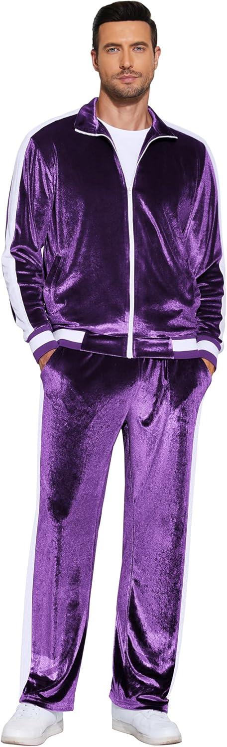 COOFANDY Mens Tracksuit 2 Piece Set Velour Sweatsuit Jogging Suits Full Zip Jacket Pants Outfits(Light Purple)