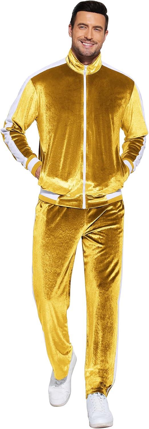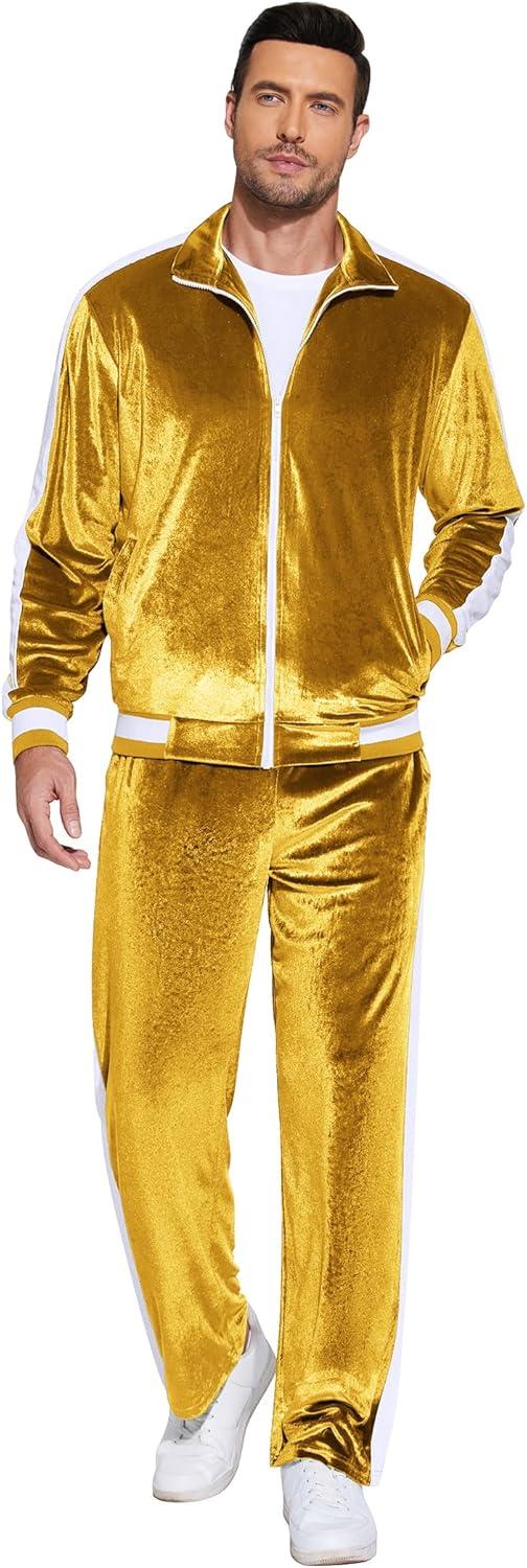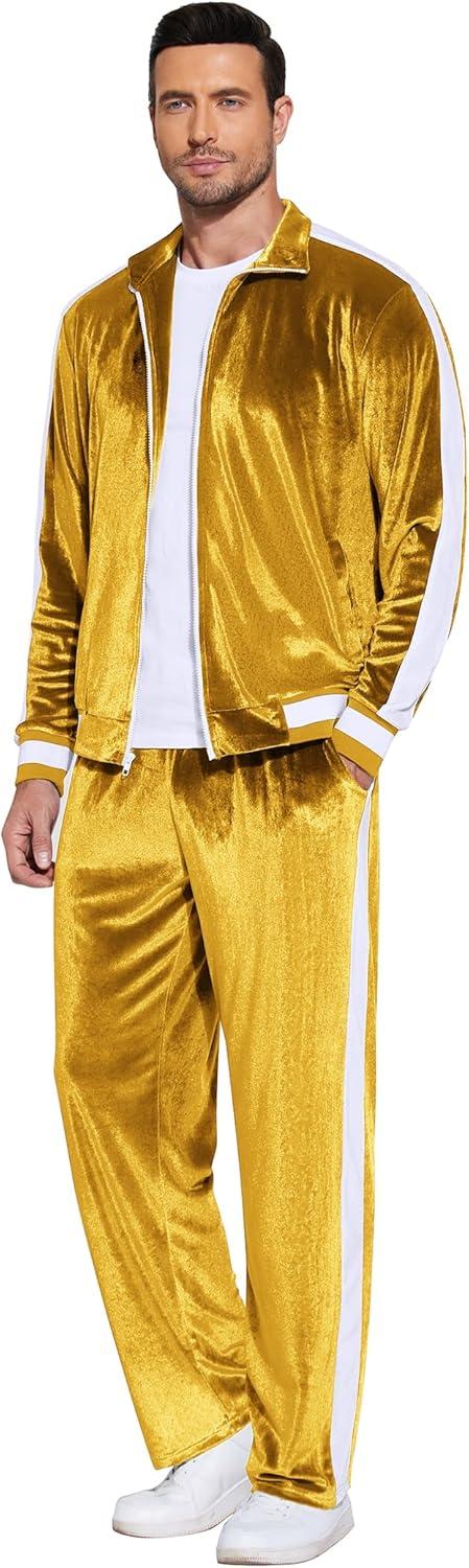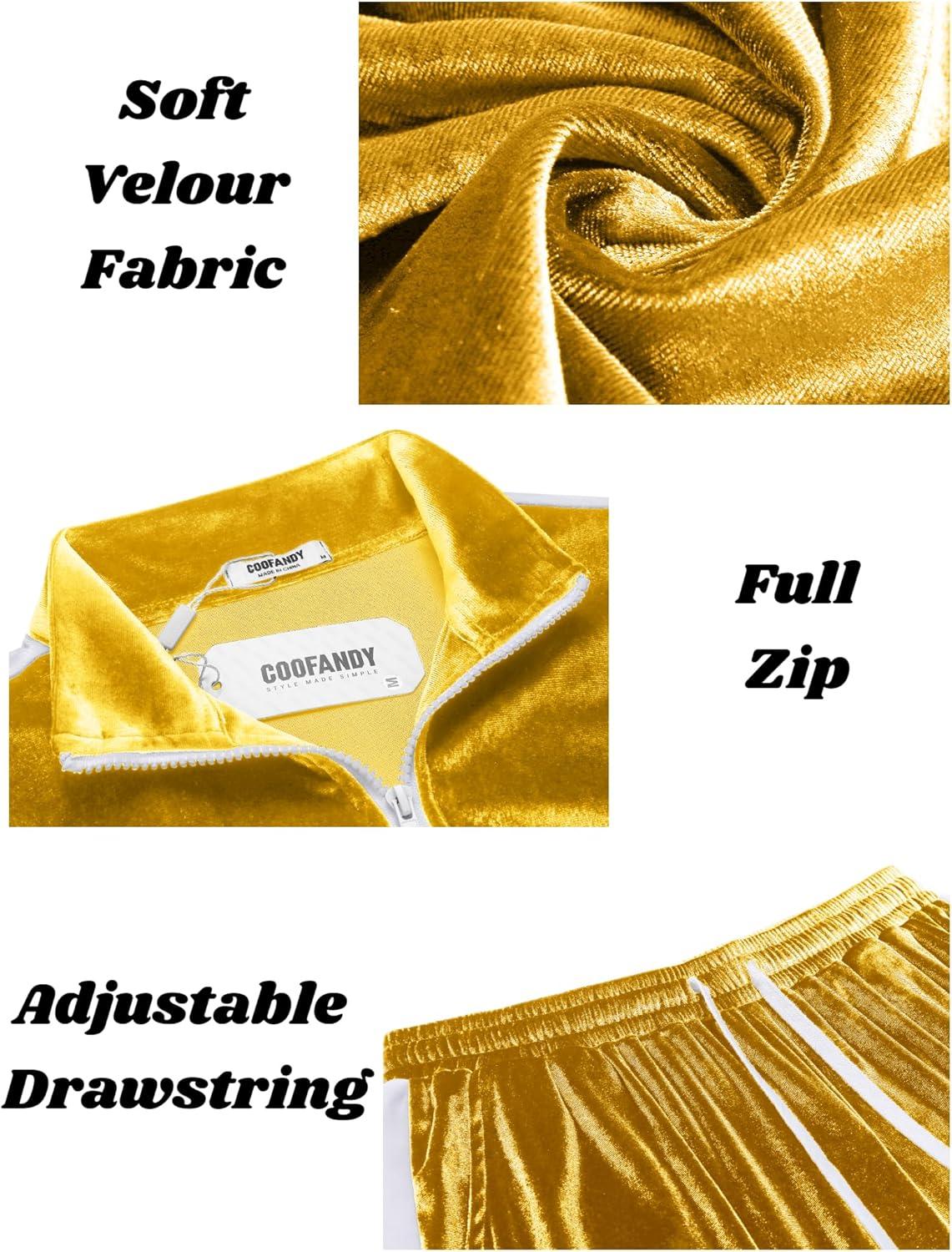 COOFANDY Mens Tracksuit 2 Piece Set Velour Sweatsuit Jogging Suits Full Zip Jacket Pants Outfits(Medium Yellow)
