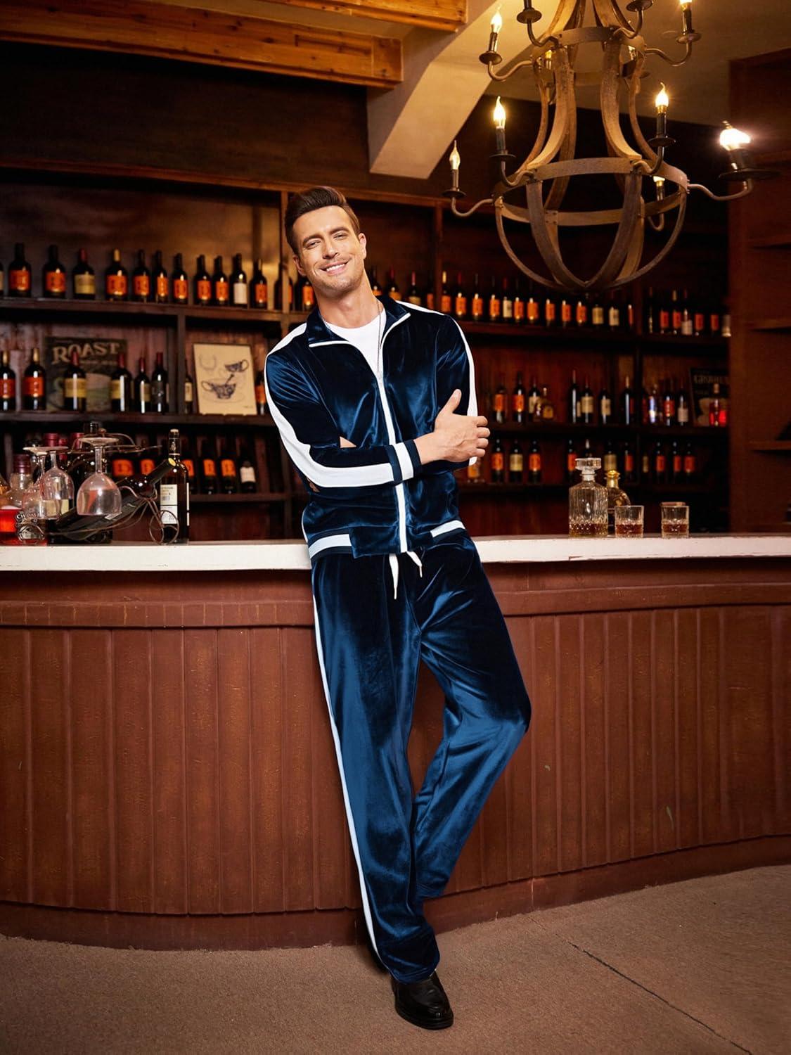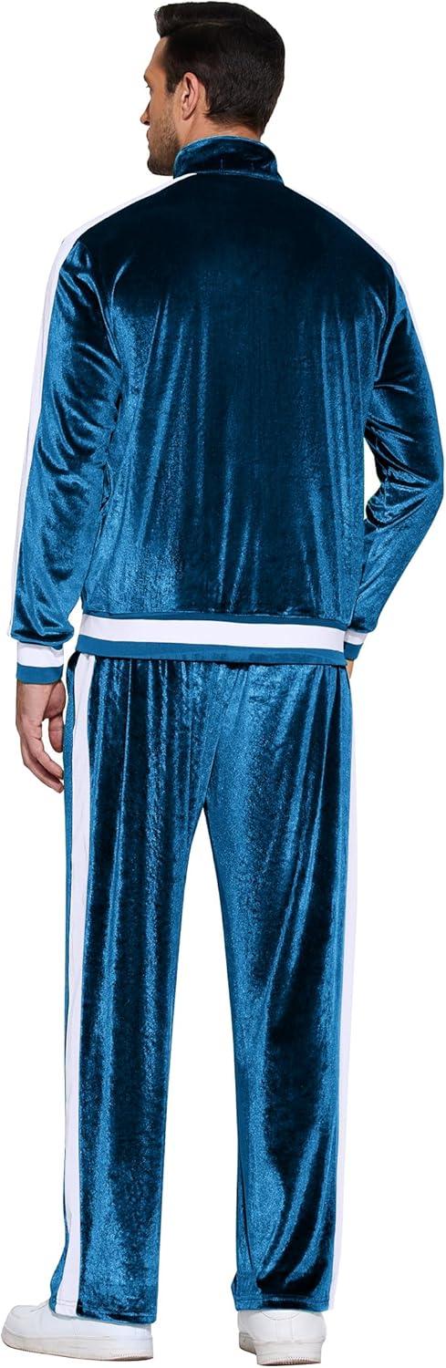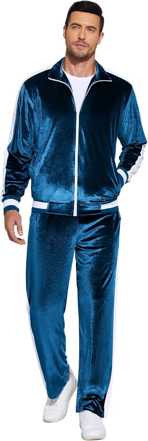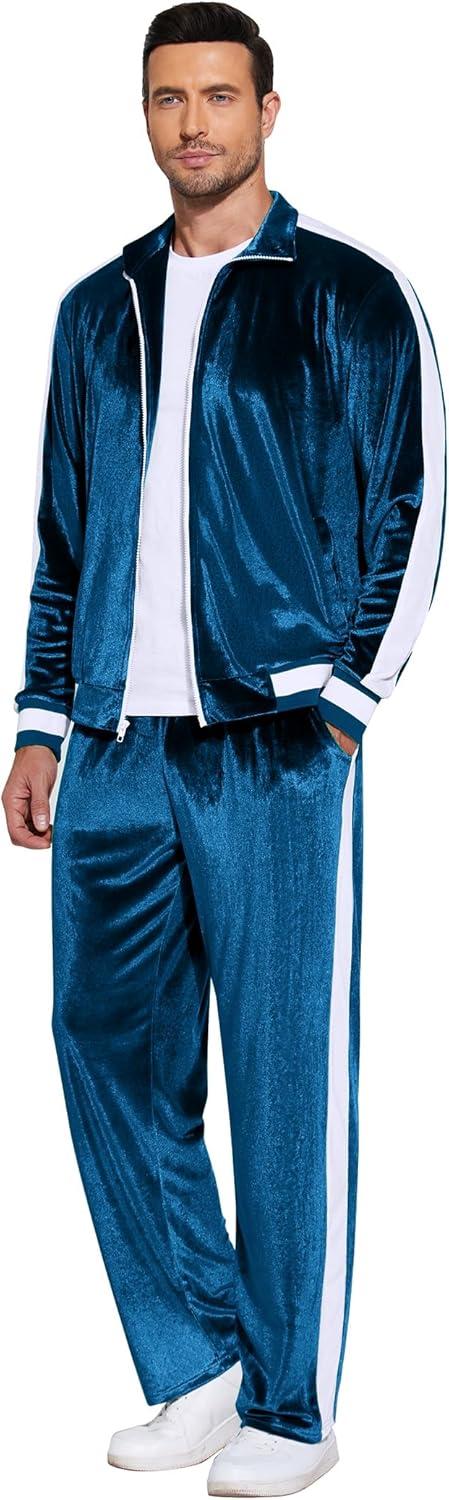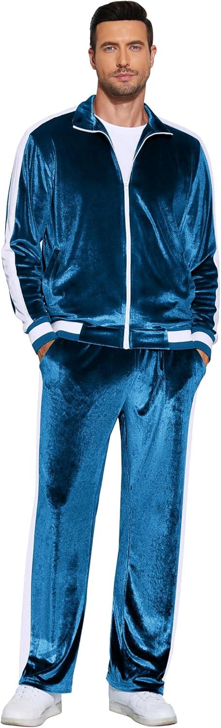COOFANDY Mens Tracksuit 2 Piece Set Velour Sweatsuit Jogging Suits Full Zip Jacket Pants Outfits(Royal Blue)