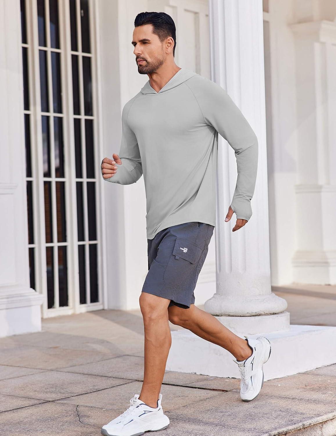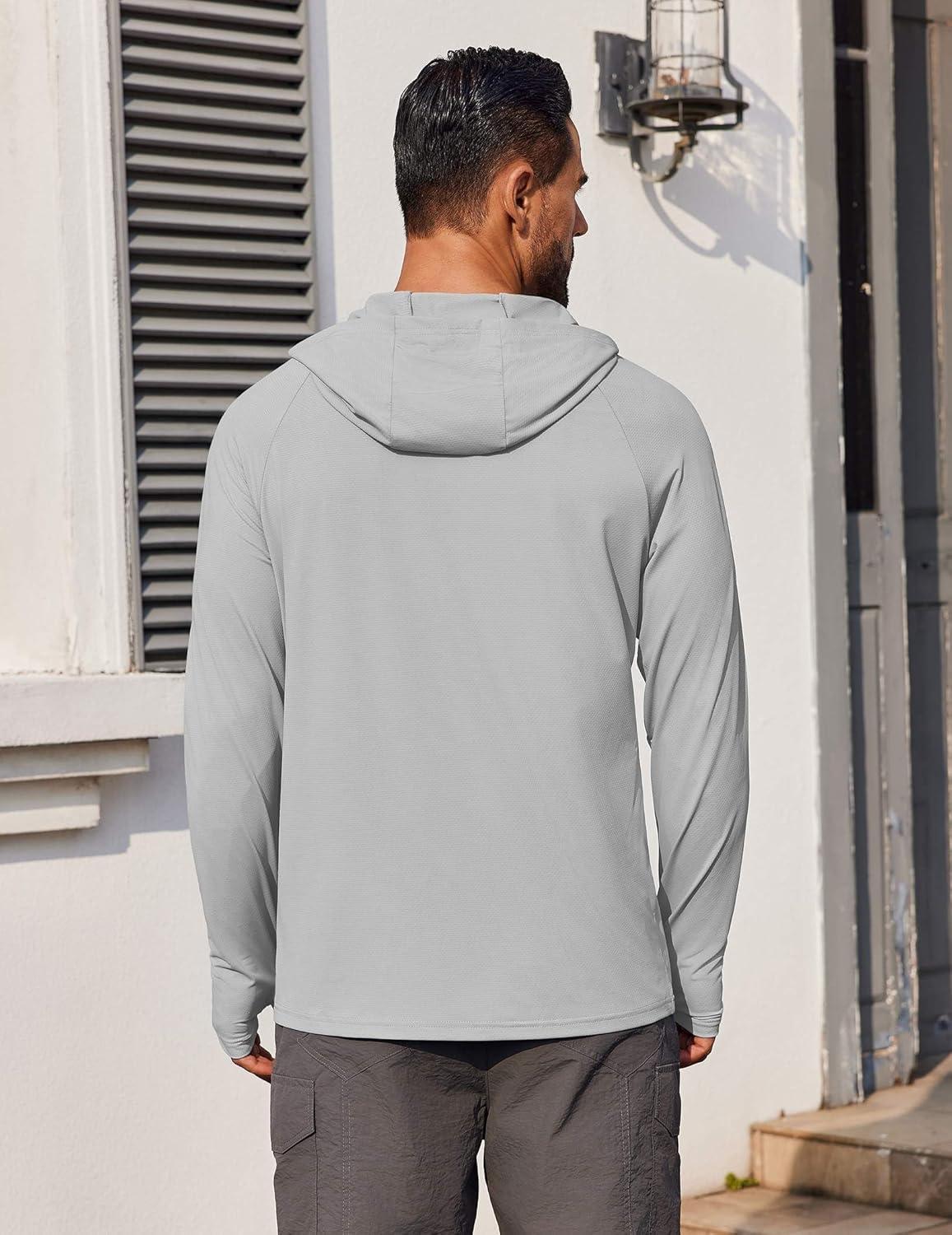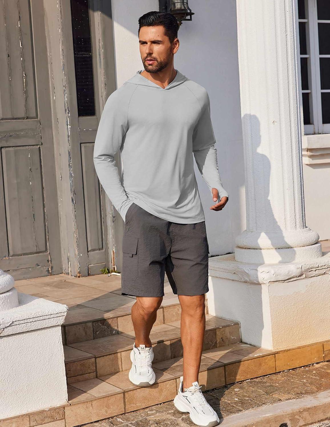 COOFANDY Mens UPF 50+ Hoodie Shirts Long Sleeve Rash Guard Sun Protection Fishing Shirts Lightweight Quick Dry Hoodies(Light Gray)