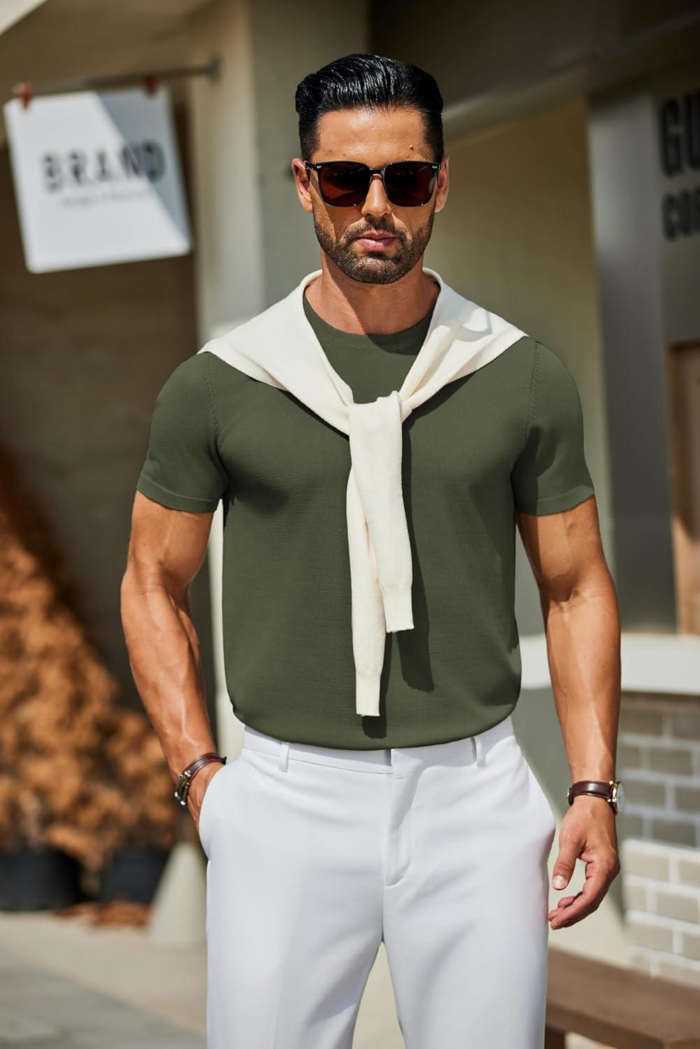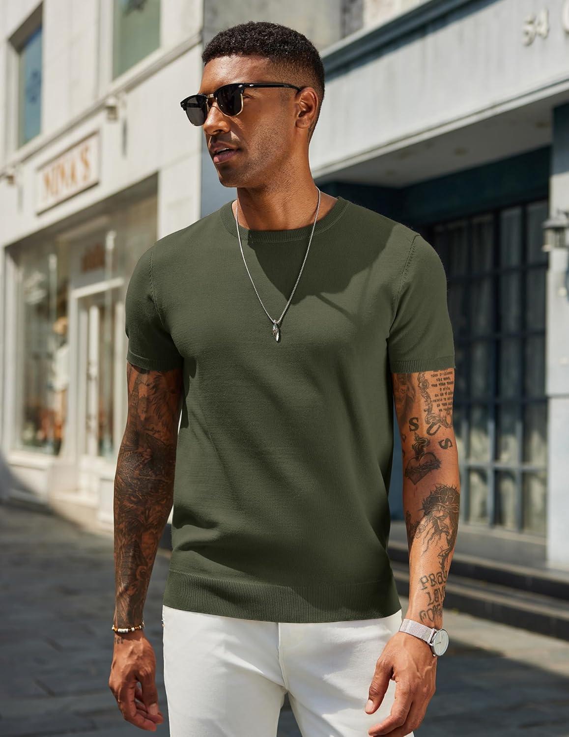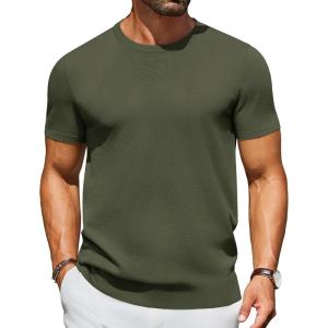 COOFANDY Men’s Crewneck Sweater Short Sleeve Casual Basic Tops Classic Fashion Knit Pullover Tees(Army Green)