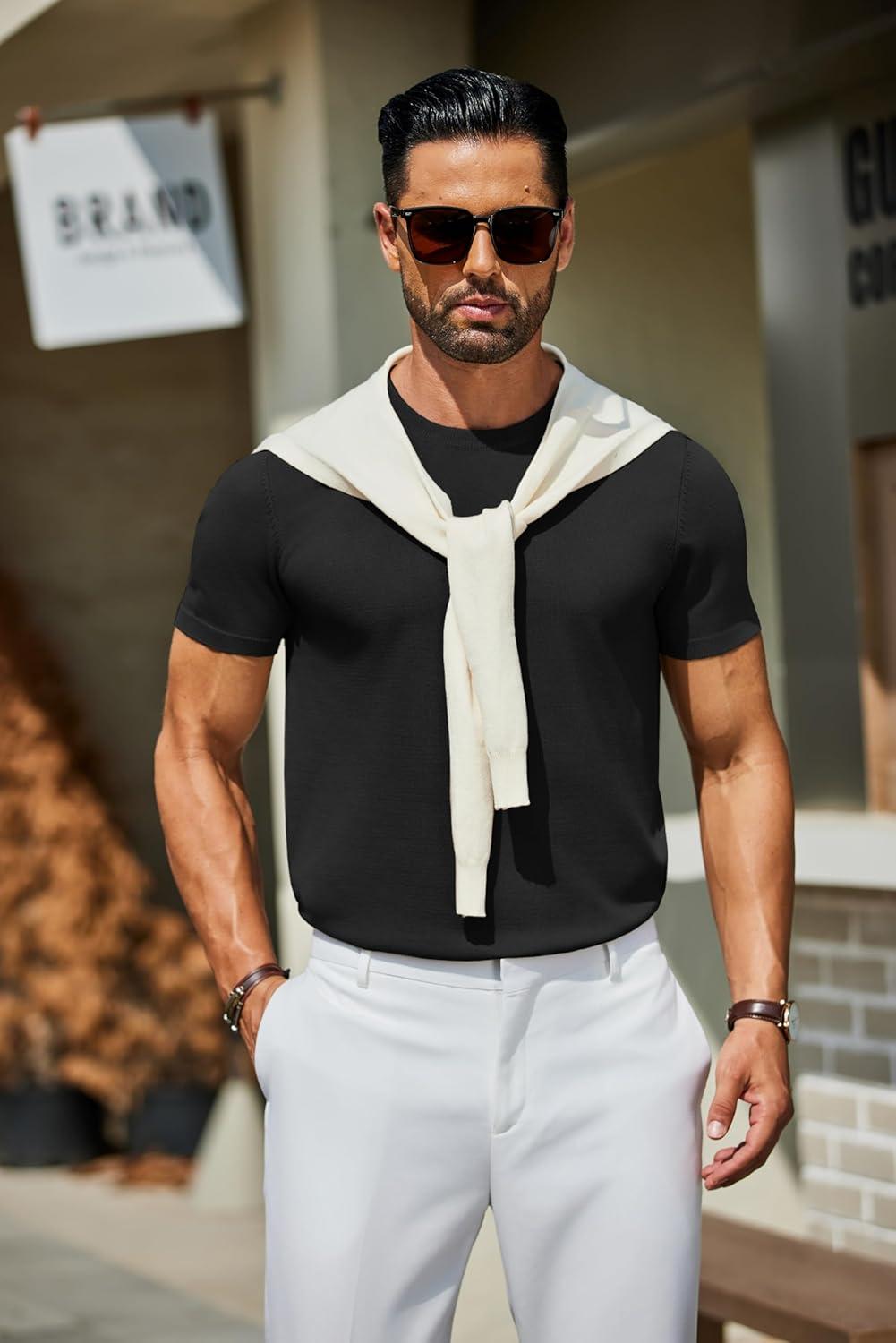 COOFANDY Men’s Crewneck Sweater Short Sleeve Casual Basic Tops Classic Fashion Knit Pullover Tees(Black)