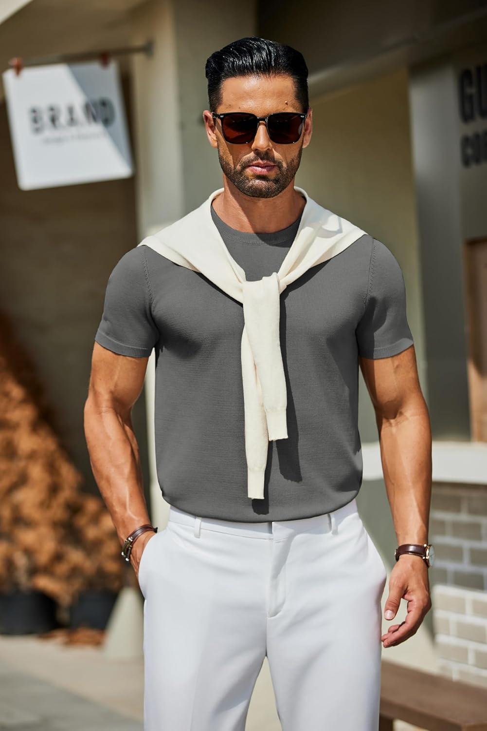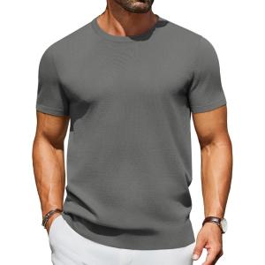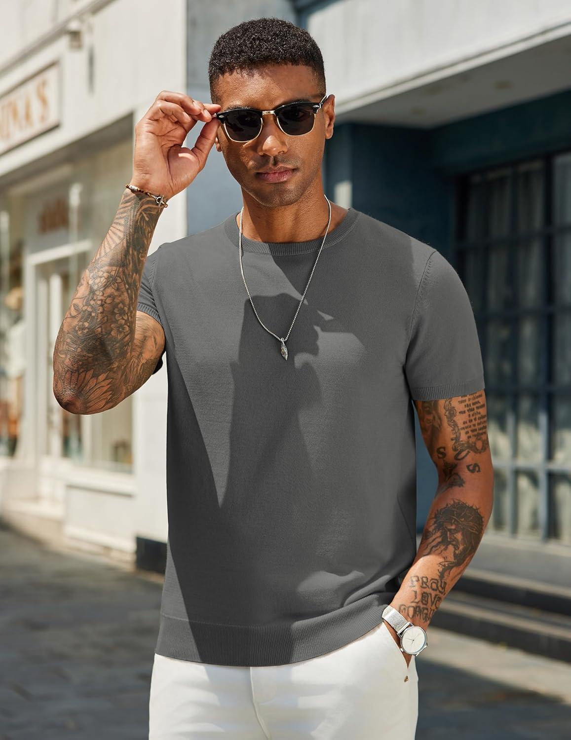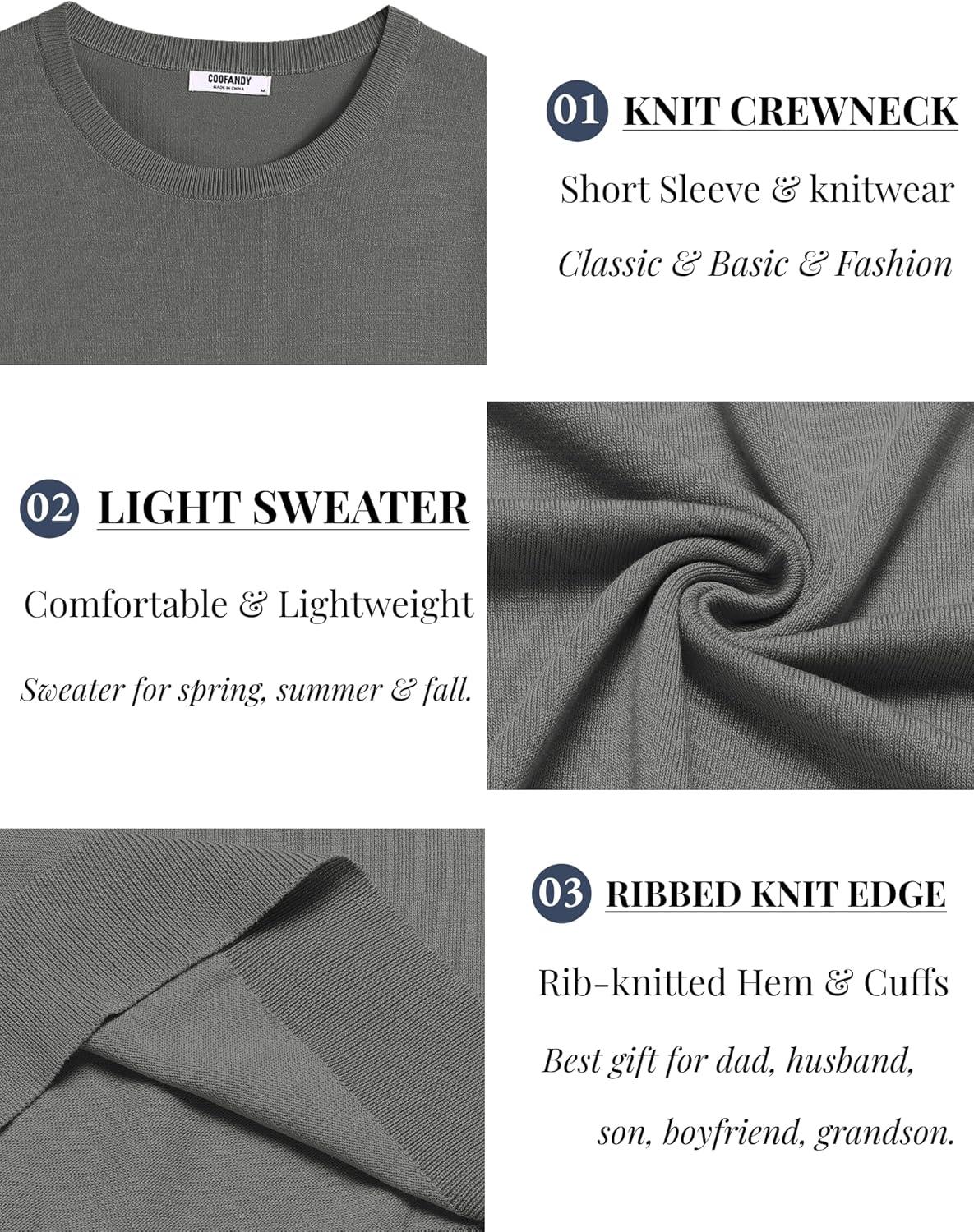 COOFANDY Men’s Crewneck Sweater Short Sleeve Casual Basic Tops Classic Fashion Knit Pullover Tees(Dark Grey)
