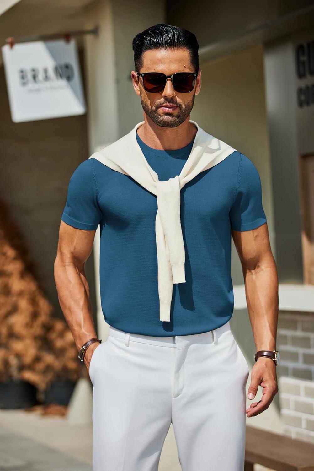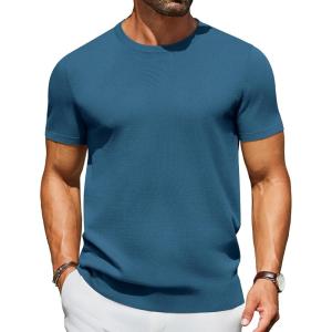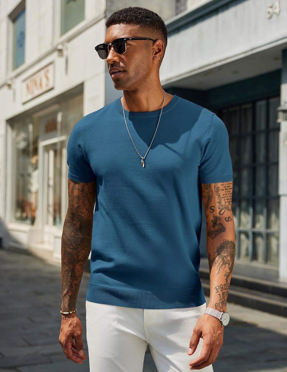 COOFANDY Men’s Crewneck Sweater Short Sleeve Casual Basic Tops Classic Fashion Knit Pullover Tees(Demin Blue)