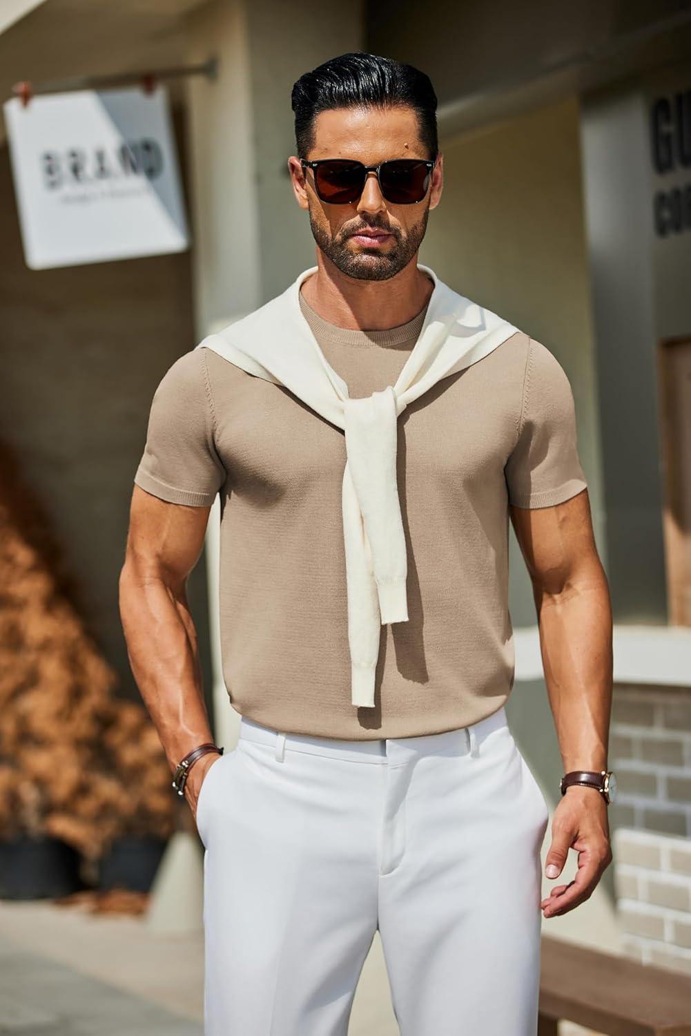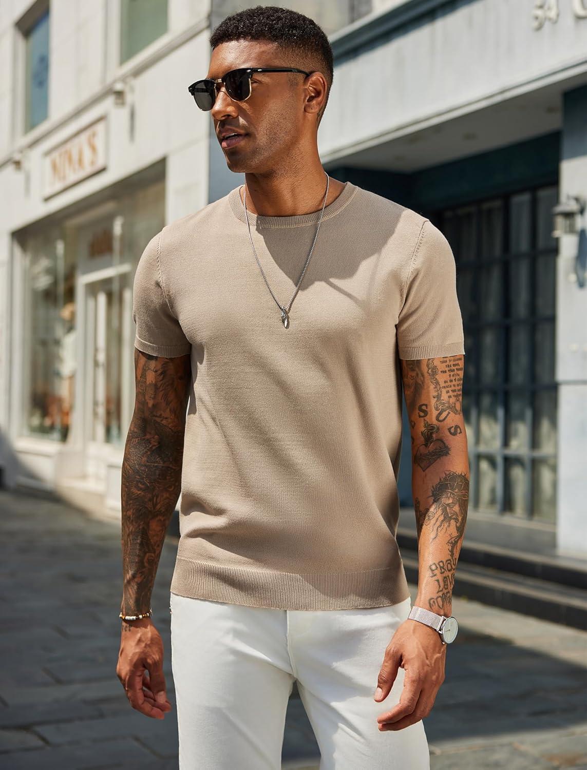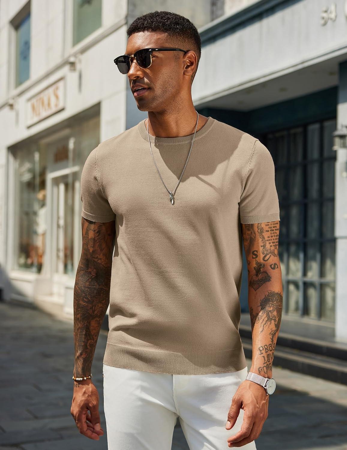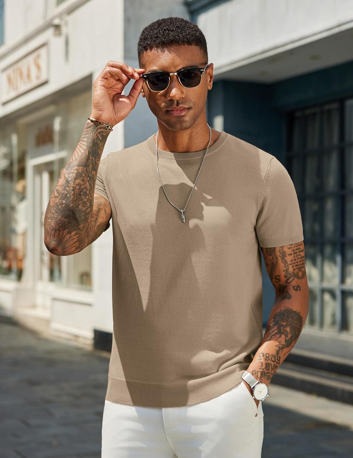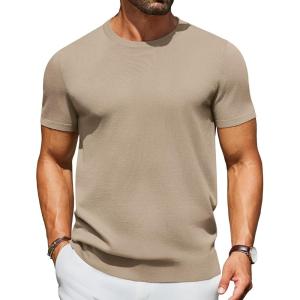 COOFANDY Men’s Crewneck Sweater Short Sleeve Casual Basic Tops Classic Fashion Knit Pullover Tees(Khaki)