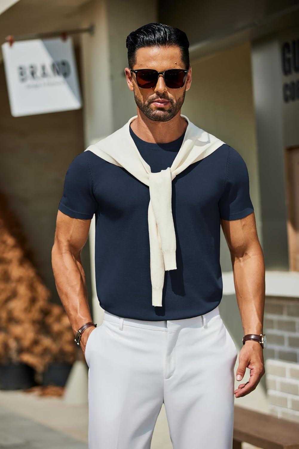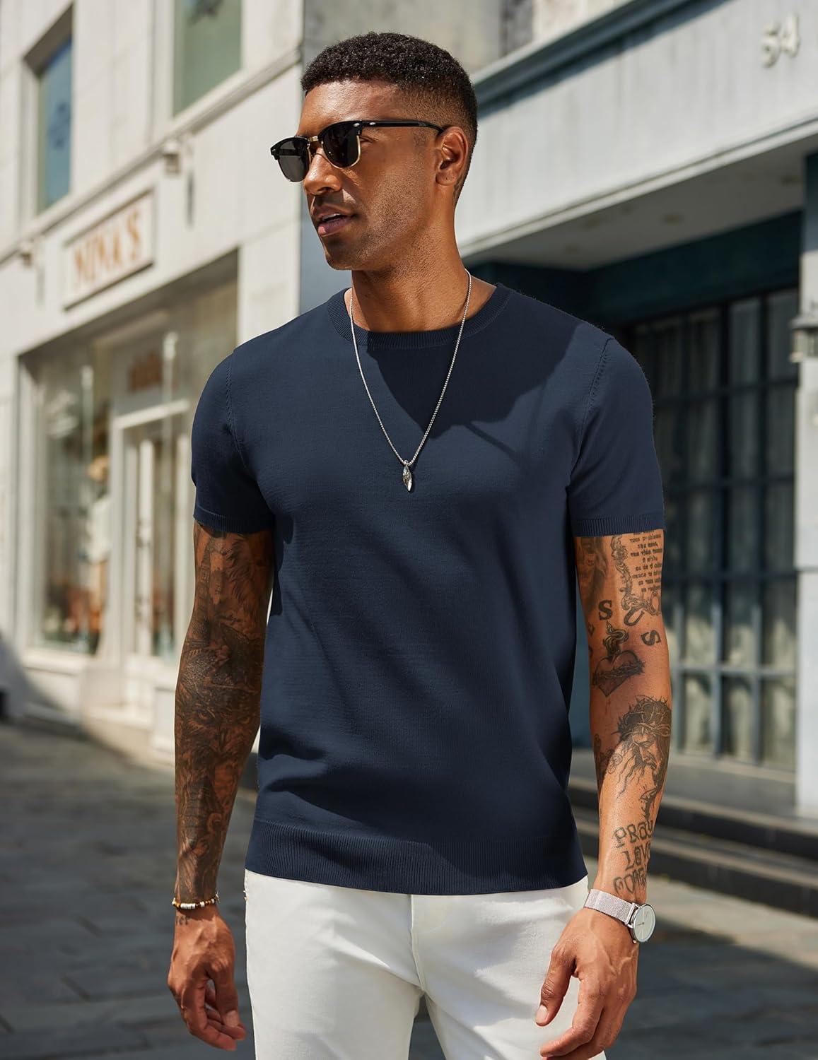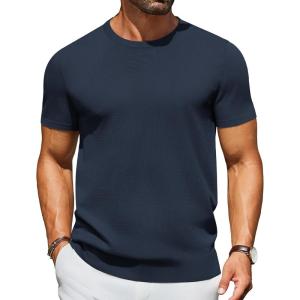 COOFANDY Men’s Crewneck Sweater Short Sleeve Casual Basic Tops Classic Fashion Knit Pullover Tees(Navy Blue)