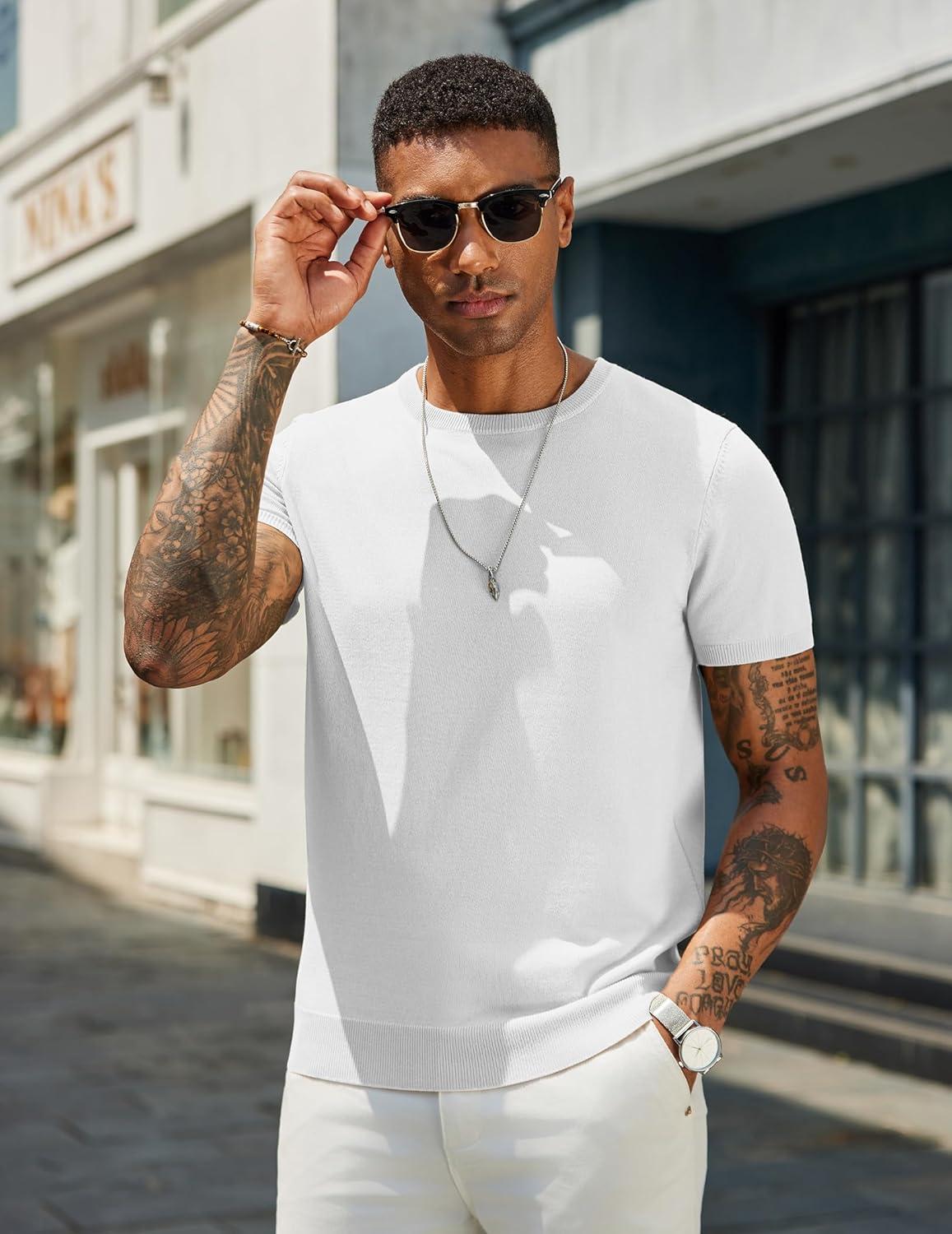 COOFANDY Men’s Crewneck Sweater Short Sleeve Casual Basic Tops Classic Fashion Knit Pullover Tees(White)