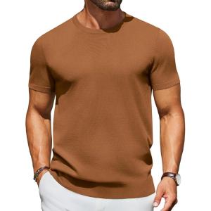 COOFANDY Men’s Crewneck Sweater Short Sleeve Casual Basic Tops Classic Fashion Knit Pullover Tees(Caramel)