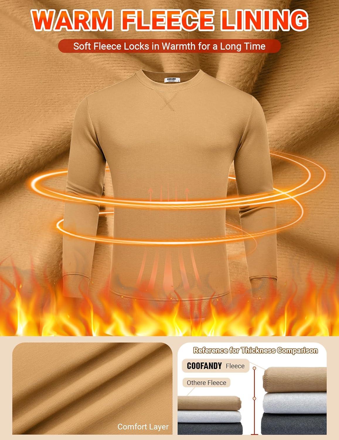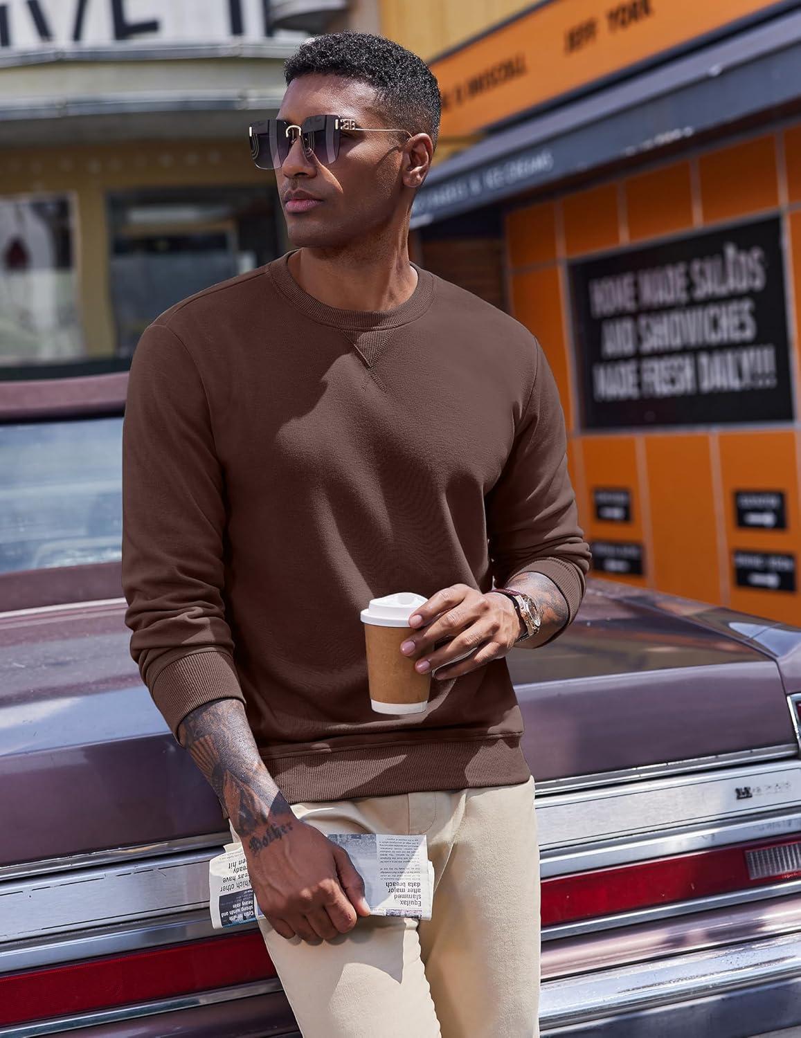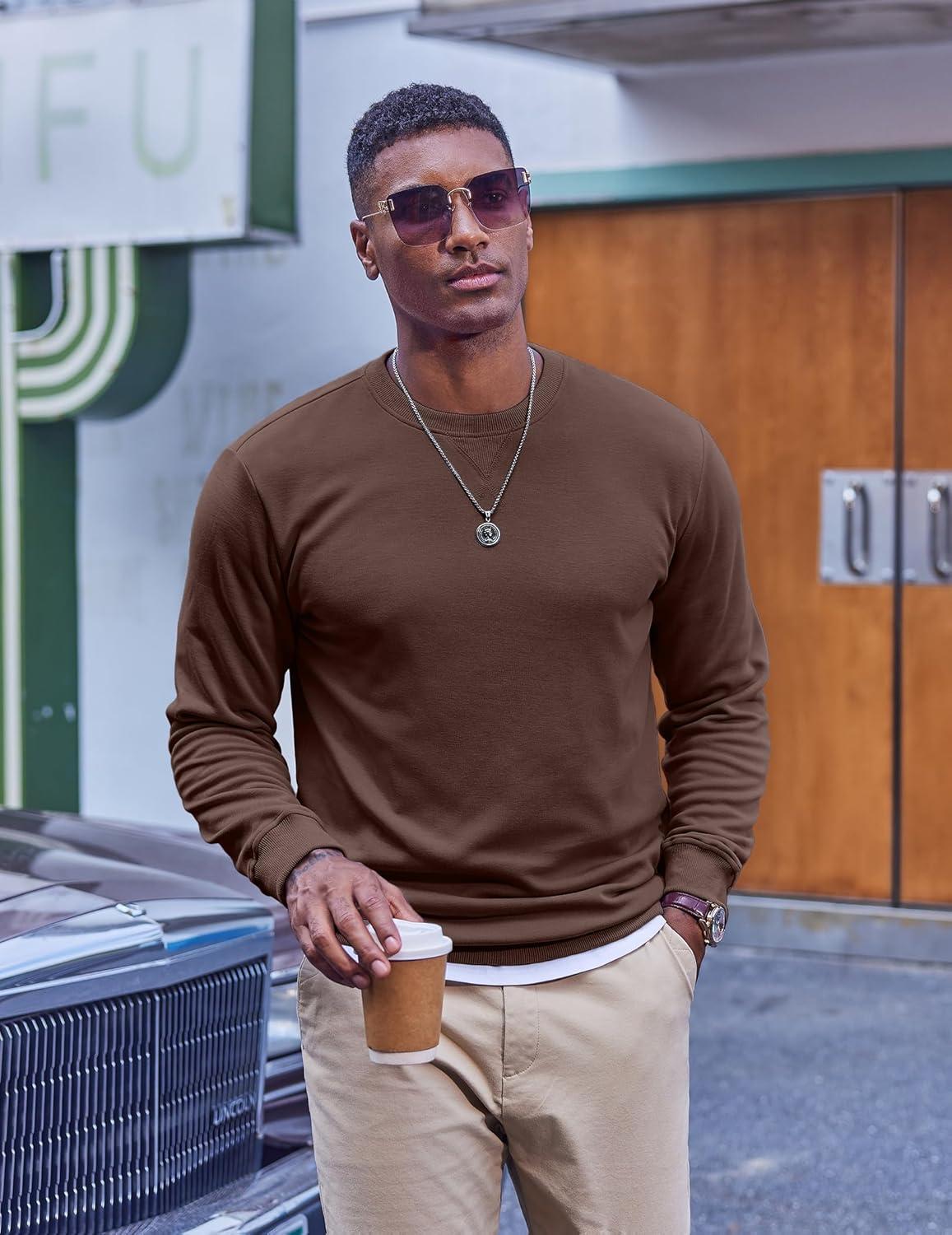 COOFANDY Men’s Fleece Crewneck Sweatshirt Casual Long Sleeve Pullover Fall Winter Warm Sweatshirts Fashion Pullovers(Brown)