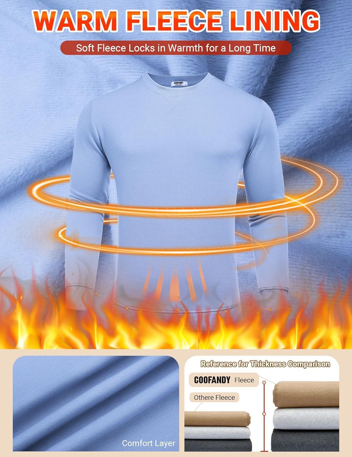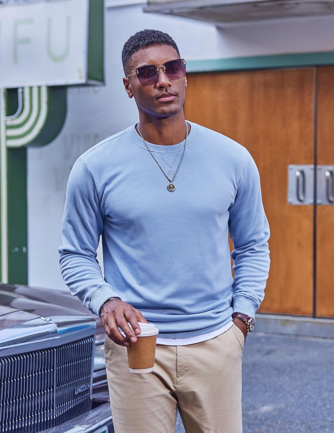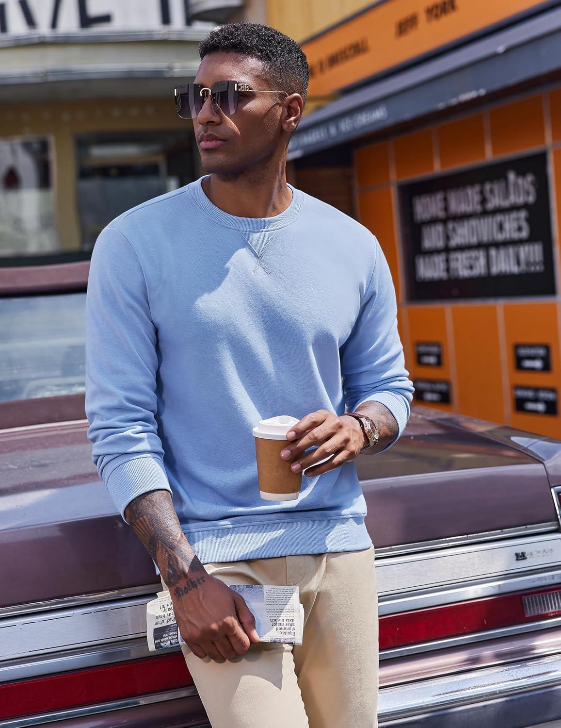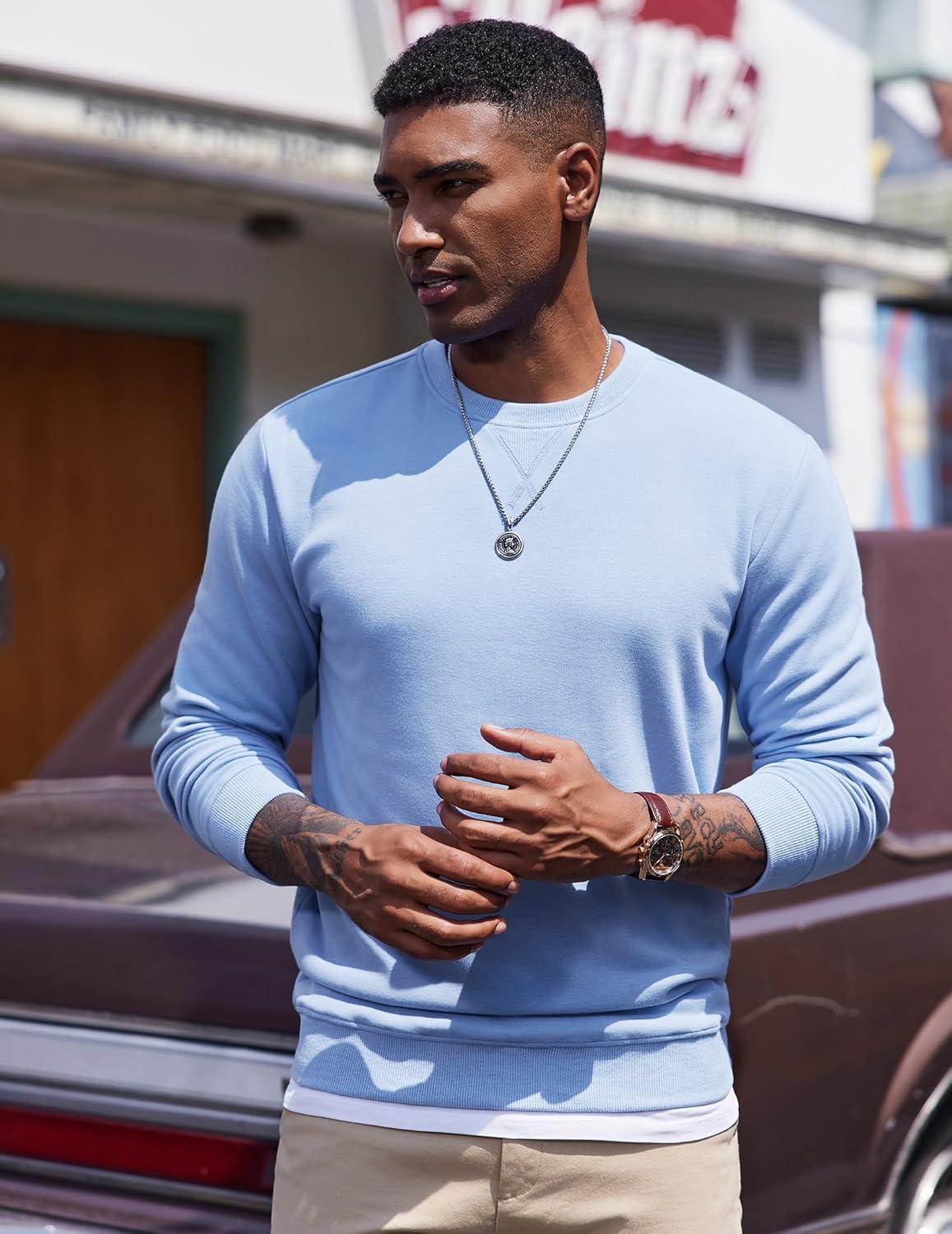 COOFANDY Men’s Fleece Crewneck Sweatshirt Casual Long Sleeve Pullover Fall Winter Warm Sweatshirts Fashion Pullovers(Light Blue)