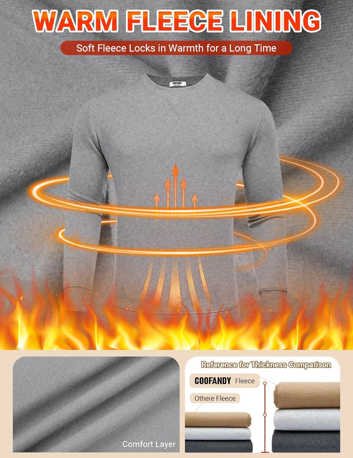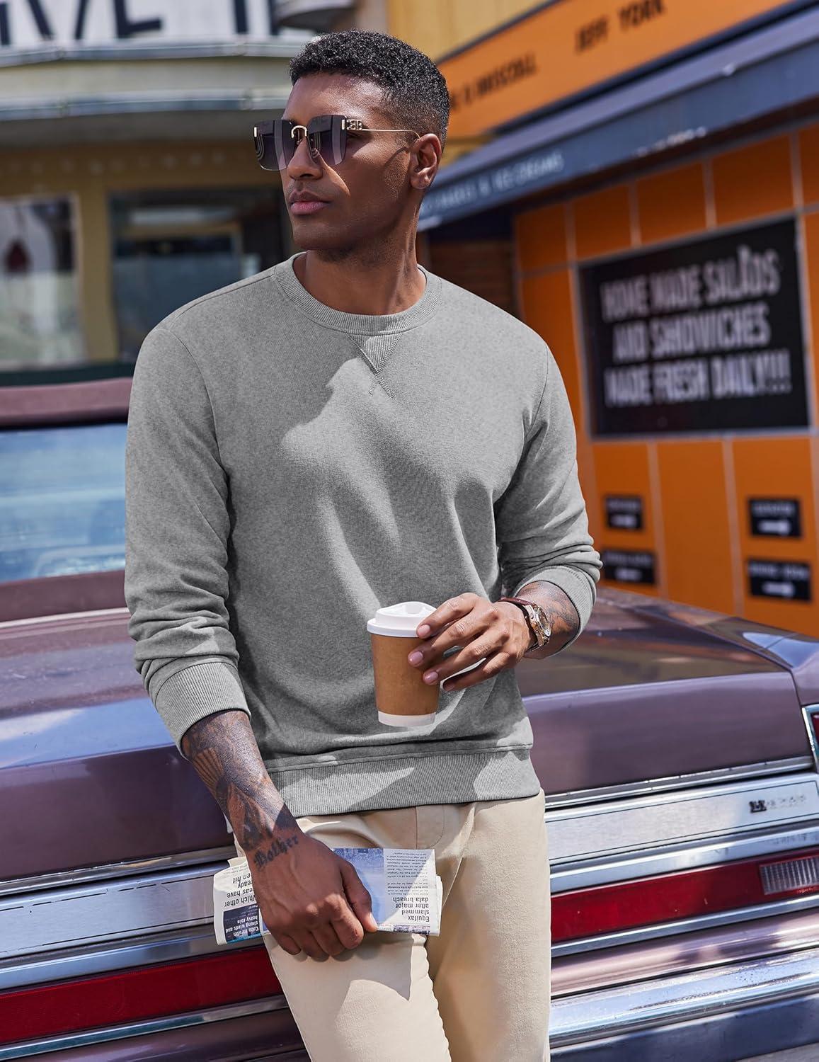 COOFANDY Men’s Fleece Crewneck Sweatshirt Casual Long Sleeve Pullover Fall Winter Warm Sweatshirts Fashion Pullovers(Light Gray)