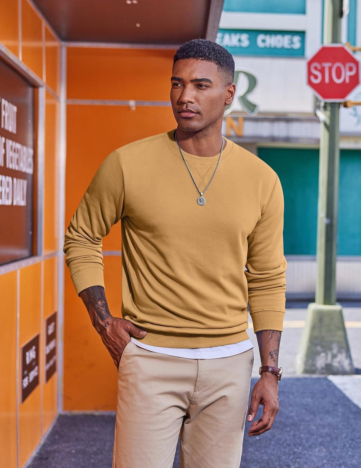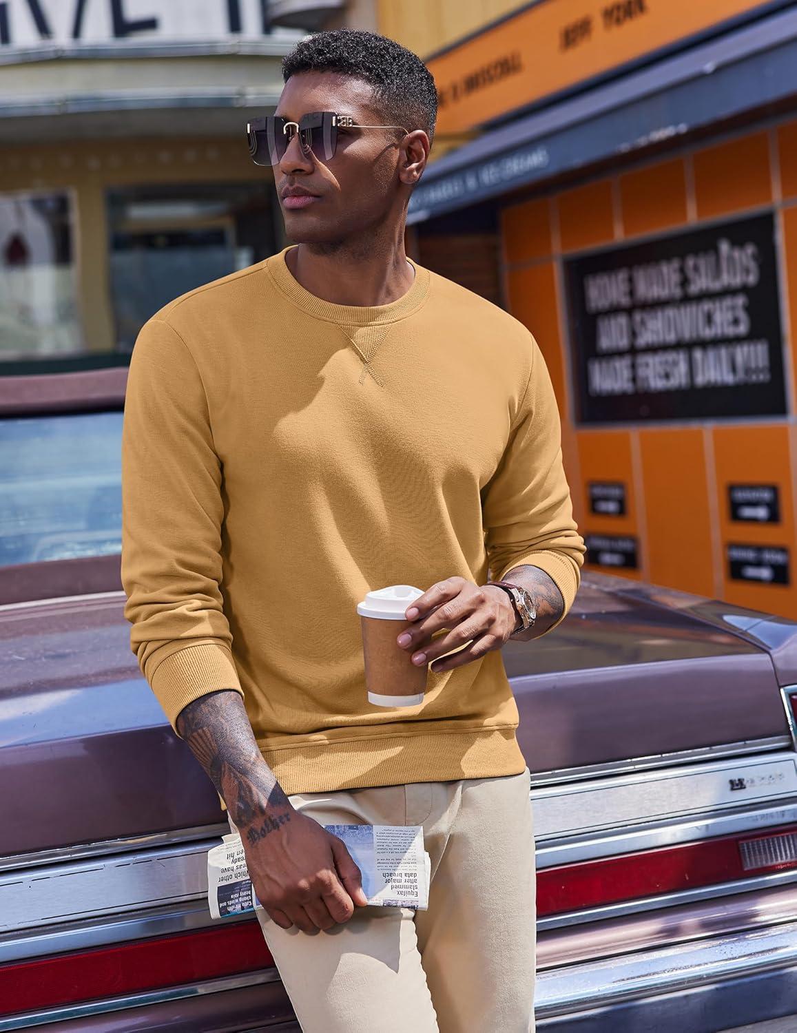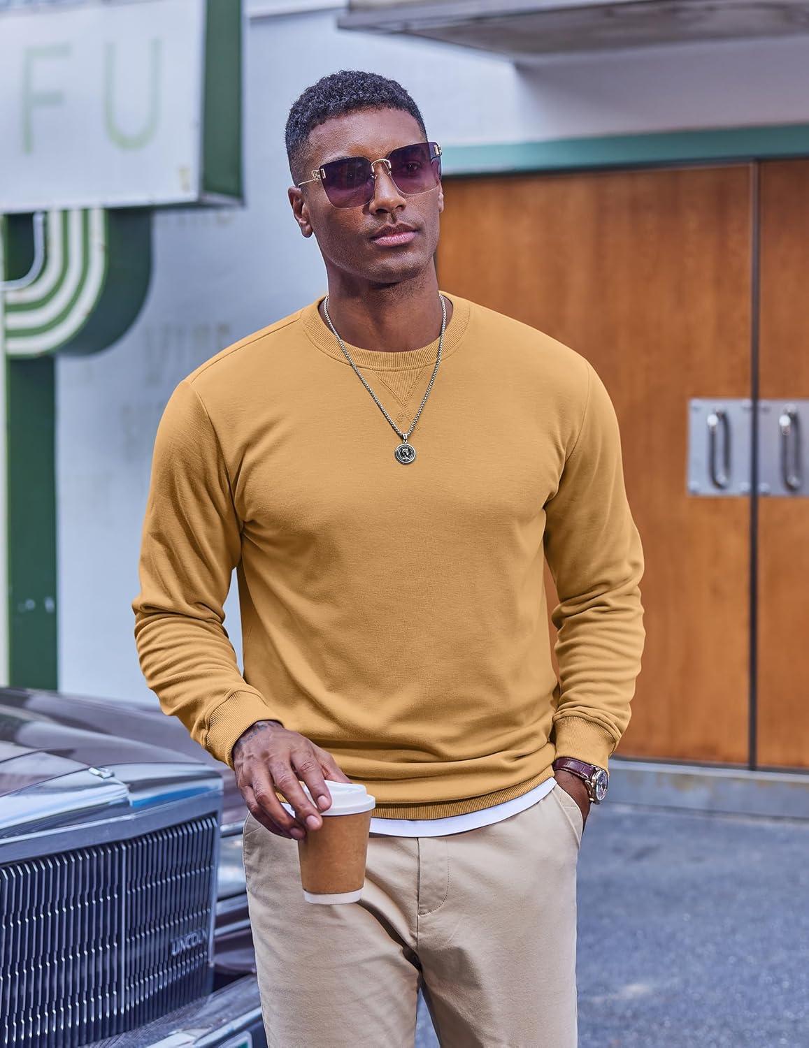 COOFANDY Men’s Fleece Crewneck Sweatshirt Casual Long Sleeve Pullover Fall Winter Warm Sweatshirts Fashion Pullovers(Light Tan)