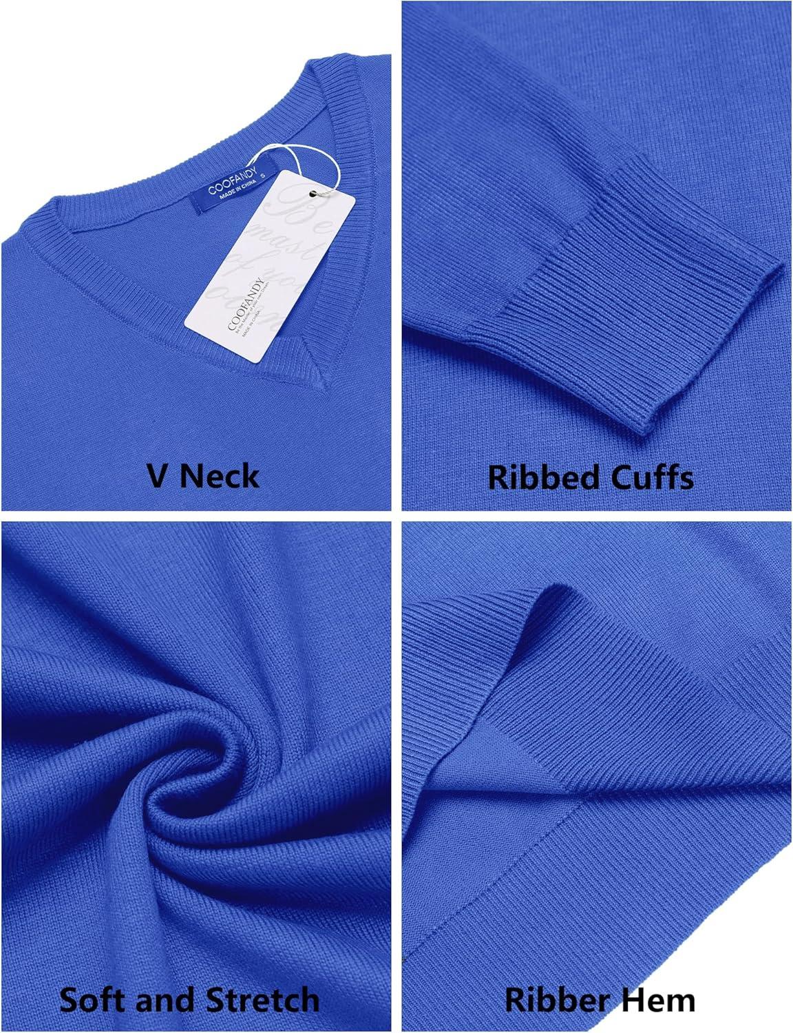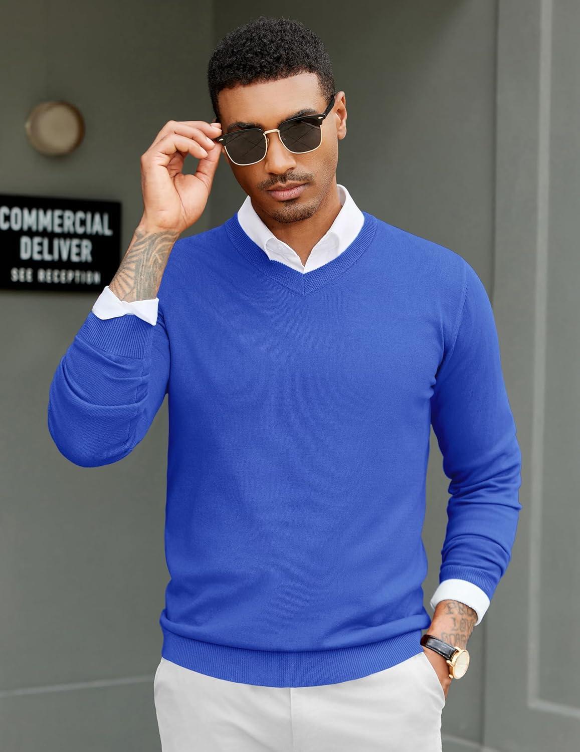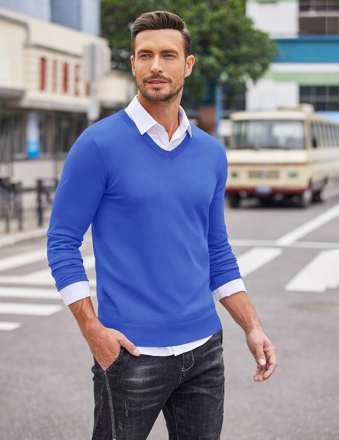 COOFANDY Men Casual V Neck Sweater Ribbed Knit Slim Fit Long Sleeve Pullover Top(Royal Blue)
